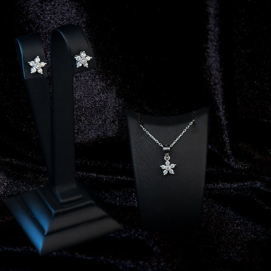 925 Sterling Silver Flower Diamond Shape Set 2 Pieces: Necklace & EarringsRegular price $89.00Sale price $89.00 Regular priceUnit price per