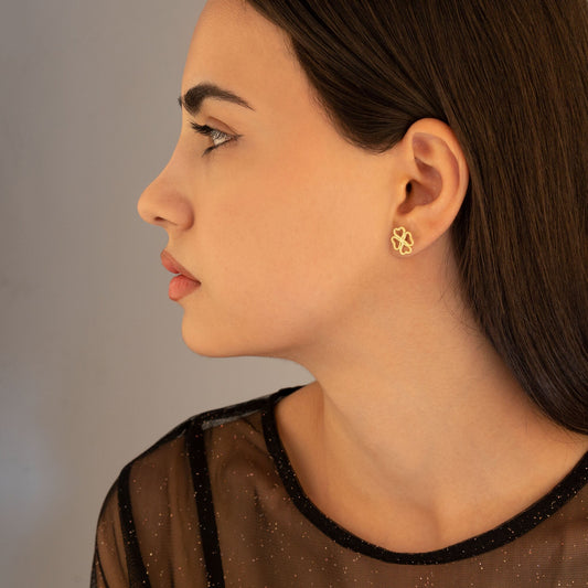 925 Sterling Silver Heart Four Leaf Clover Earring