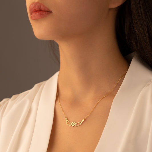 925 Sterling Silver Initial Angel Wings Love Necklace