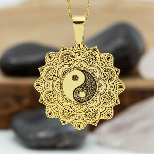 925 Sterling Silver Life Of Flower Mandala with Yin Yang Necklace - Taoism Jewelry