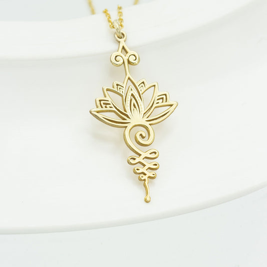 925 Sterling Silver Lotus Unalome Pendant Necklace - Spiritual Yoga Jewelry