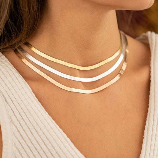 925 Sterling Silver Snake Layered Herringbone Chain NecklaceRegular price $52.00Sale price $52.00 Regular priceUnit price per