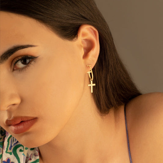 925 Sterling Silver Dangle Cross Hoop EarringsRegular price $26.00Sale price $26.00 Regular priceUnit price per