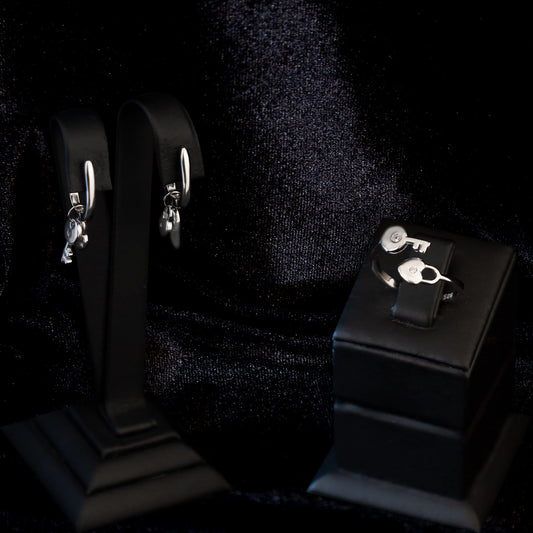 925 Sterling Silver Keyed Heart Locked Shape Set 2 Pieces: Ring & Earrings
