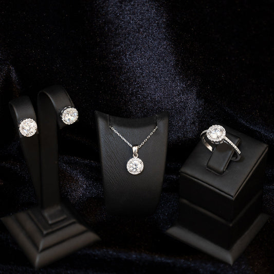 925 Sterling Silver Diamond Model Solitaire Shape Set 3 Pieces: Necklace, Ring & Earrings