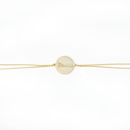 925 Sterling Silver Circle Name Tag Duo Chain Bracelet