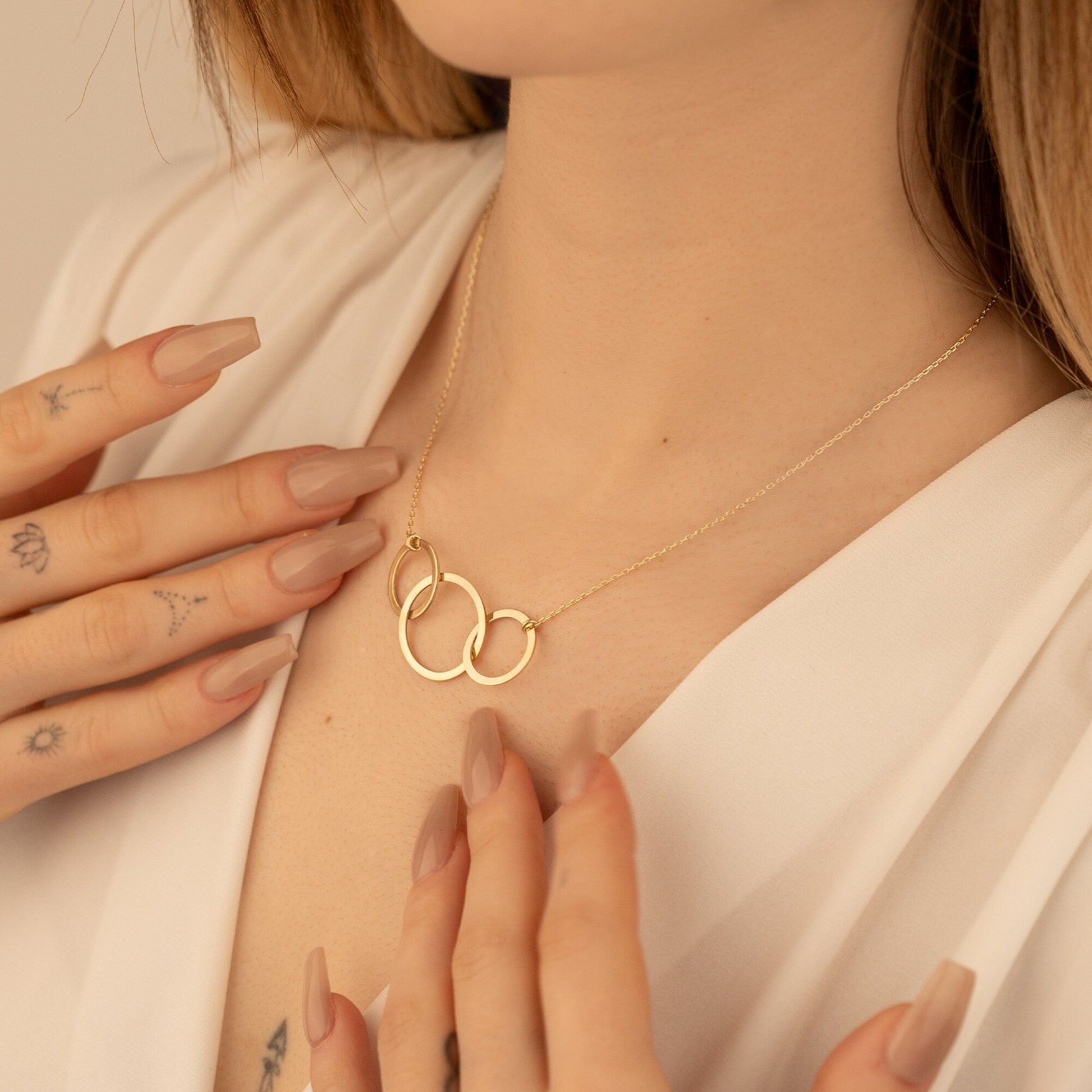 925 Sterling Silver Three Rings Infinity Dangle Charms Necklace