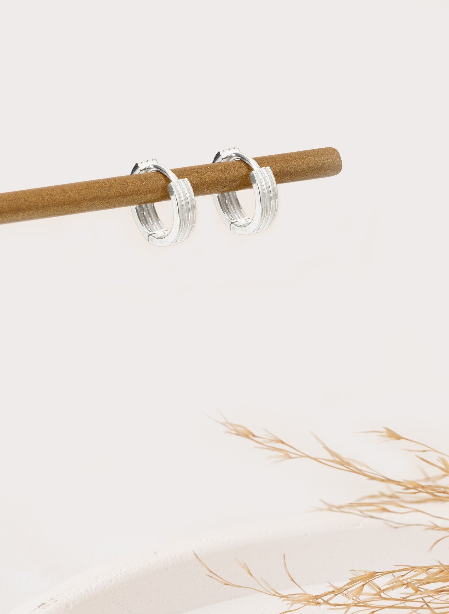 Crafted with 925 sterling silver, these grooved circle hoop earrings are the perfect Mother's Day gift for the minimalist in your life. The round huggie design adds a touch of elegance to any outfit. Elevate your style with these dangle hoop earrings.