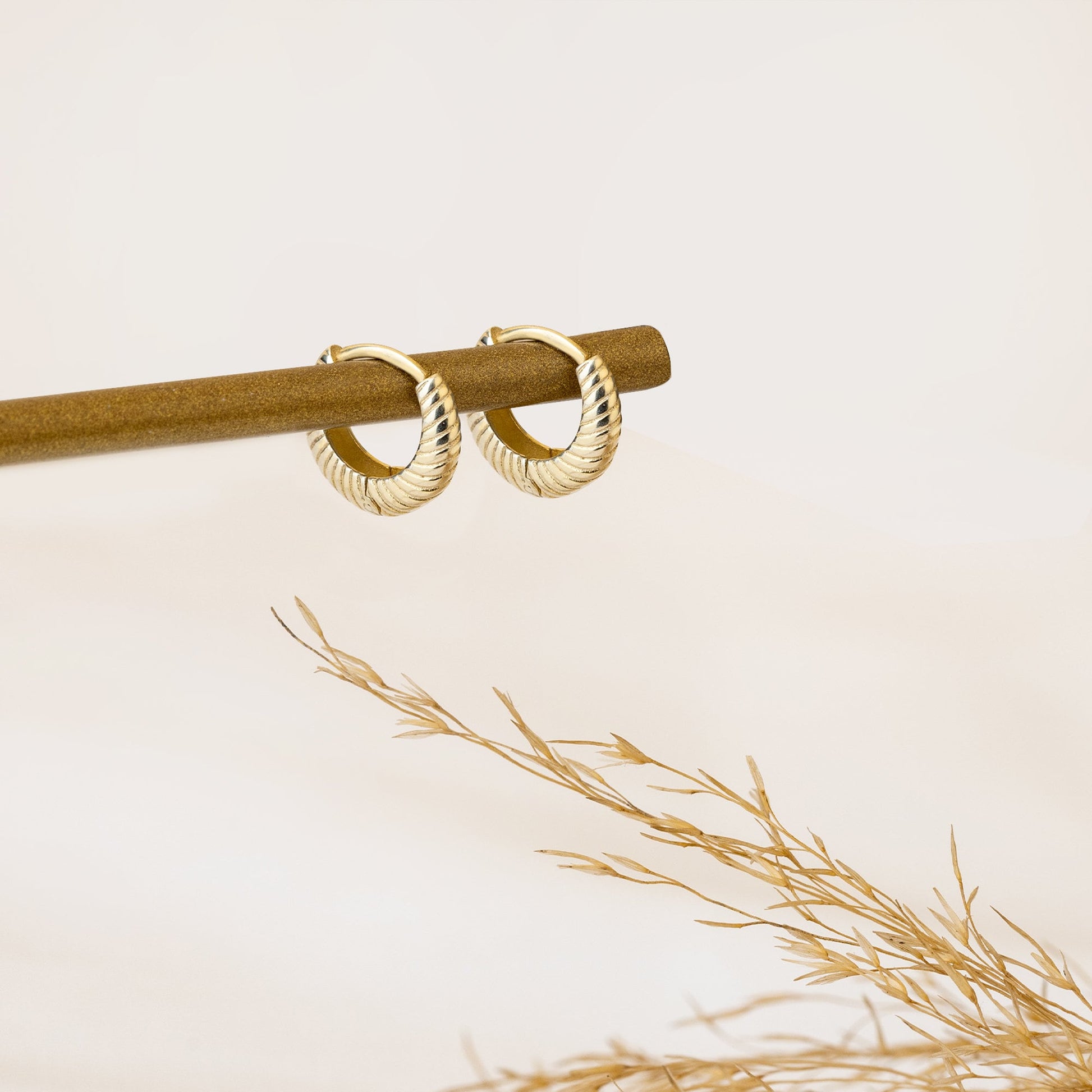 925 Sterling Silver Serrated Retro Huggie Hoop Earrings