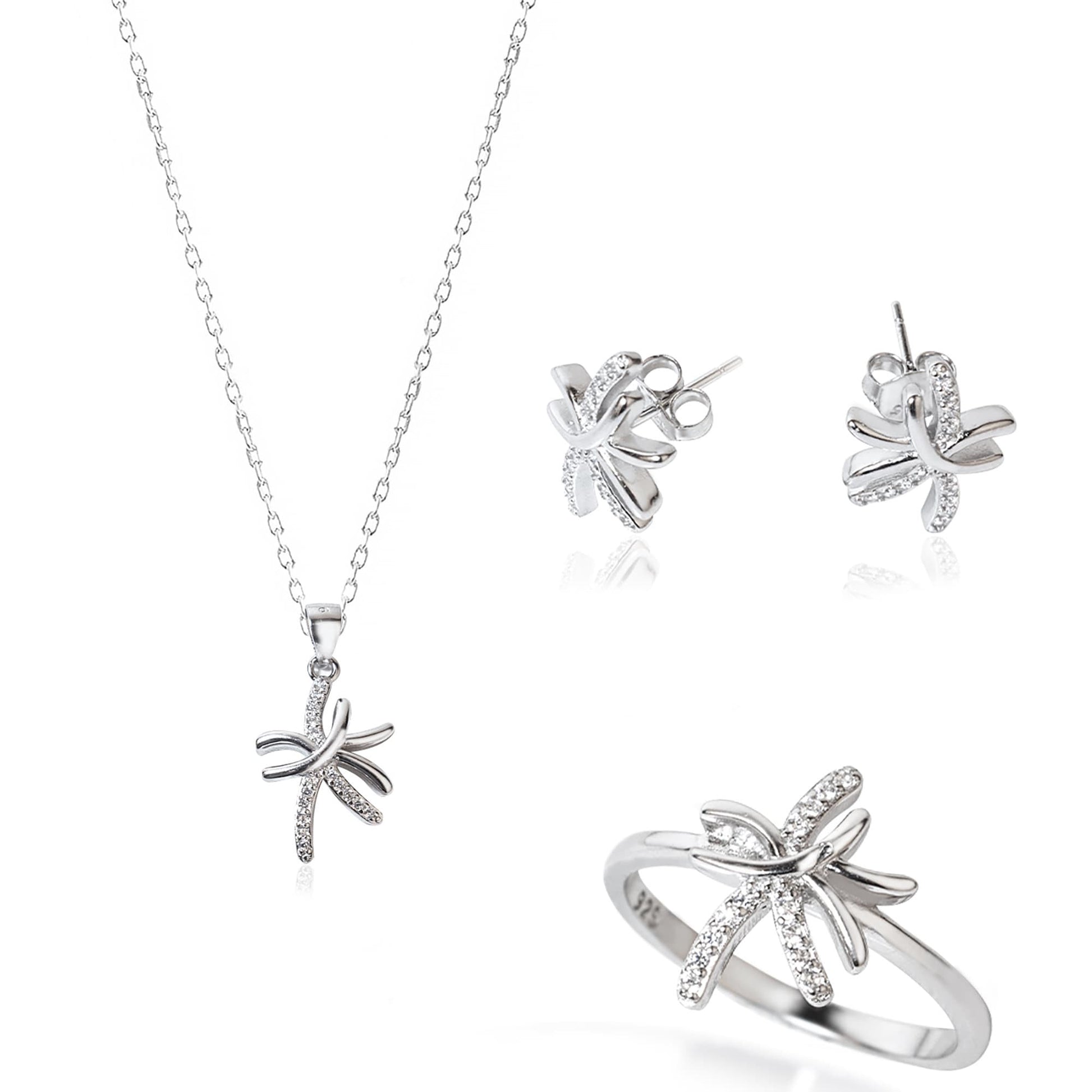 925 Sterling Silver Asymmetric Shape Jewelry Set 3 Pieces: Necklace, Ring & Earrings