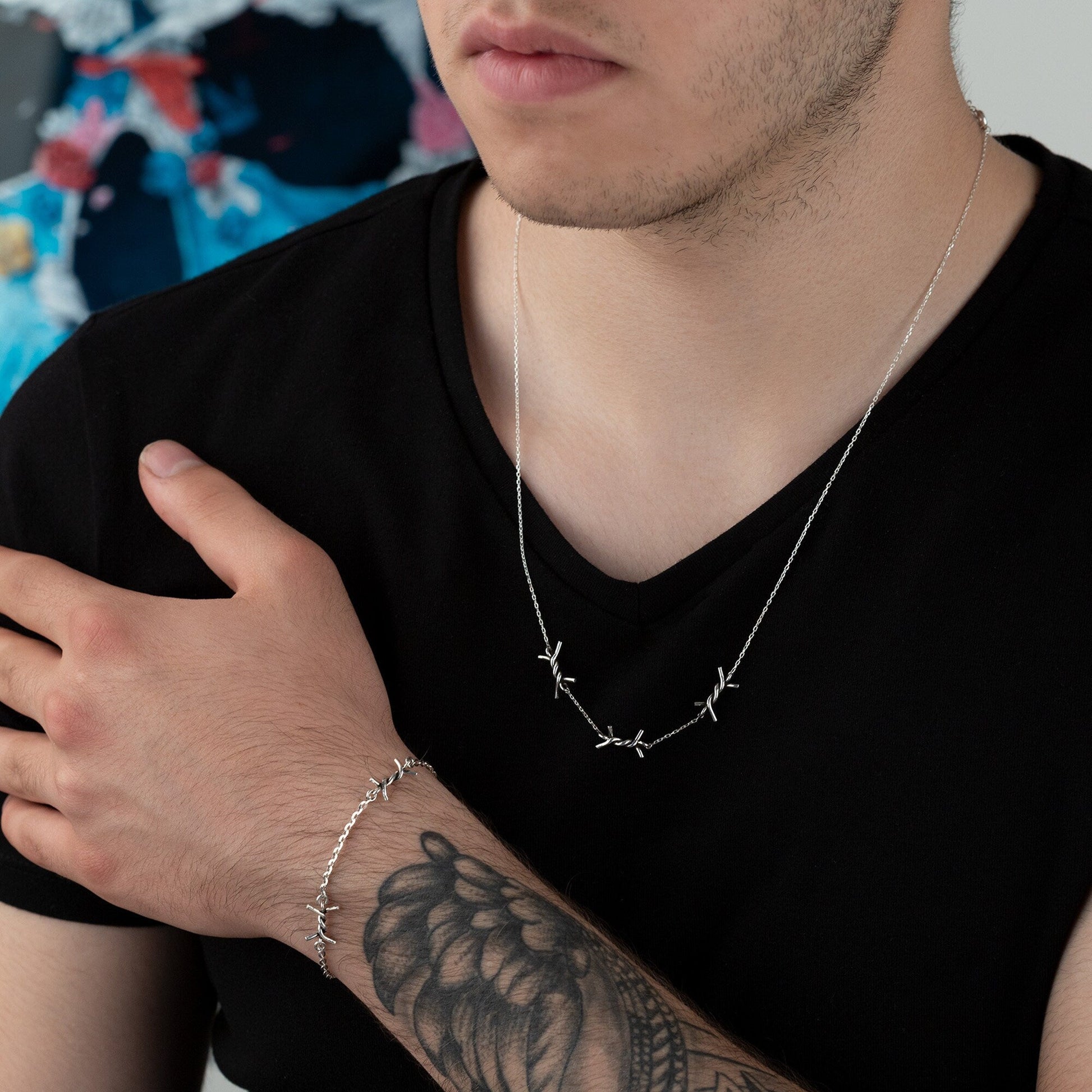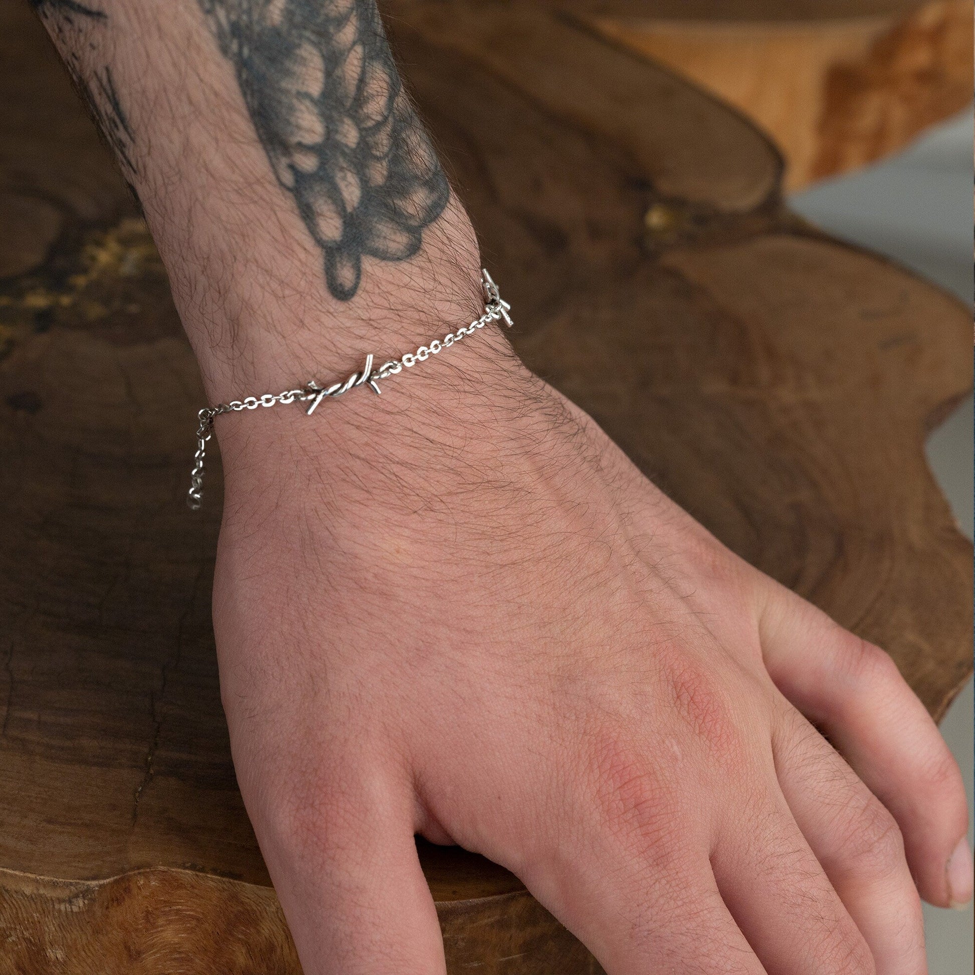 The 925 Sterling Silver Barbed Wire Spike Bracelet is a testament to the fusion of edgy design and elegance. Crafted from premium sterling silver, this bracelet's distinctive barbed wire motif exudes a daring aesthetic while maintaining a touch of sophistication. Its spikes, reminiscent of the resilience and strength found in nature's own defenses, make a powerful statement. This piece is not just an accessory; it's a conversation starter that complements any attire, embodying the wearer's bold spirit and refined taste. Whether it's for a night out or as a signature day-to-day item, this bracelet is sure to elevate one's style quotient.