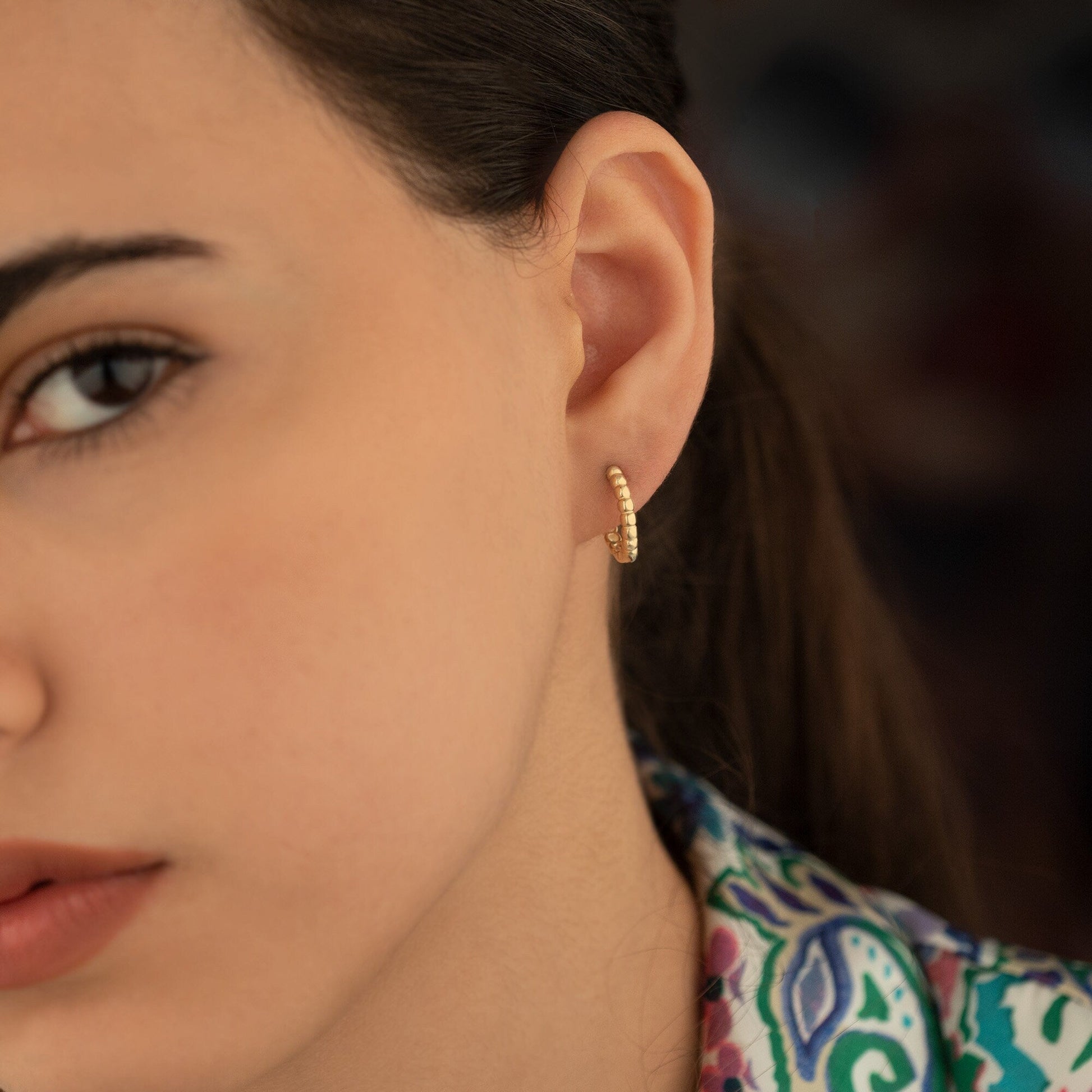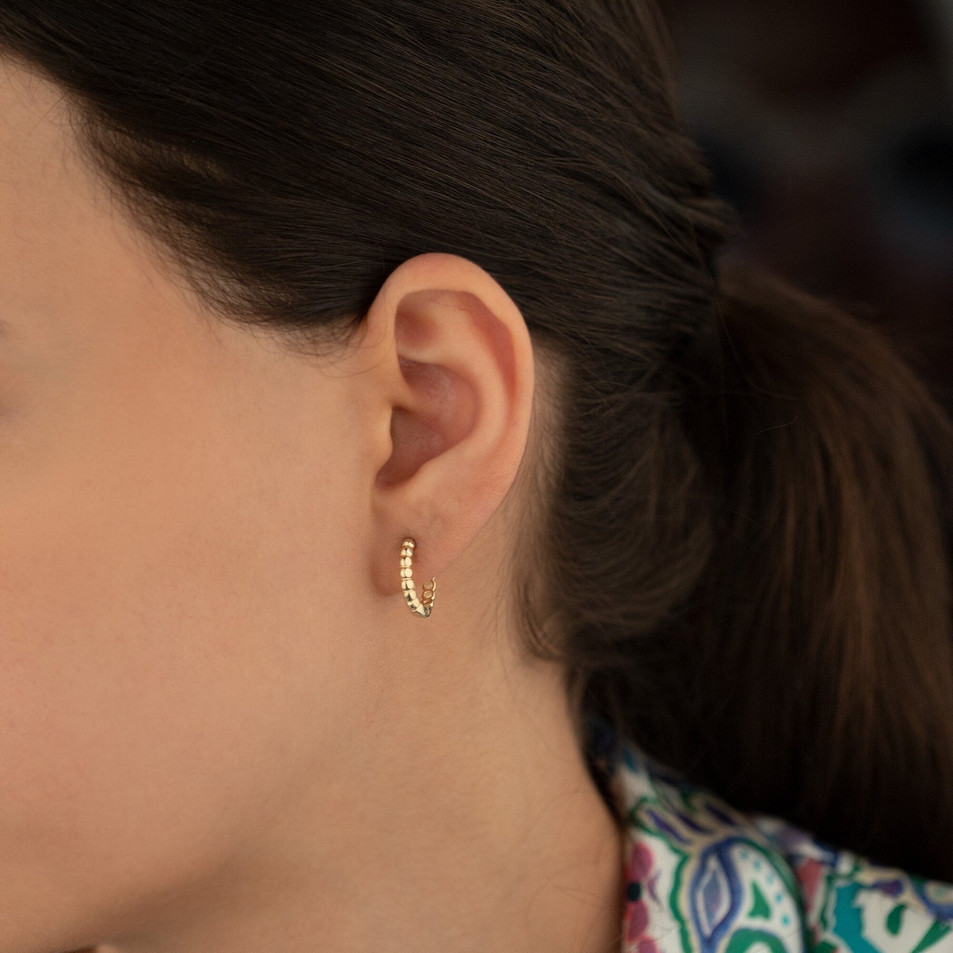 Beaded Hoop Huggie Earrings - Dainty Huggie Hoop Earring - Classic Earrings - Simple Earrings - Gift for Her - Gift for Him