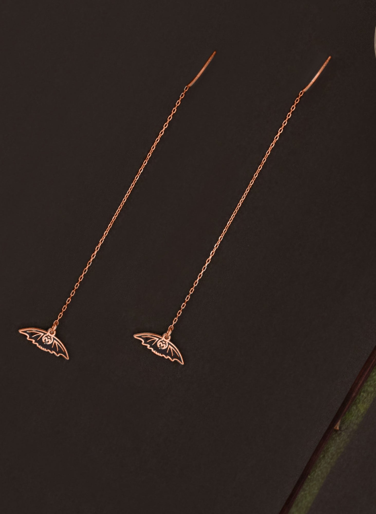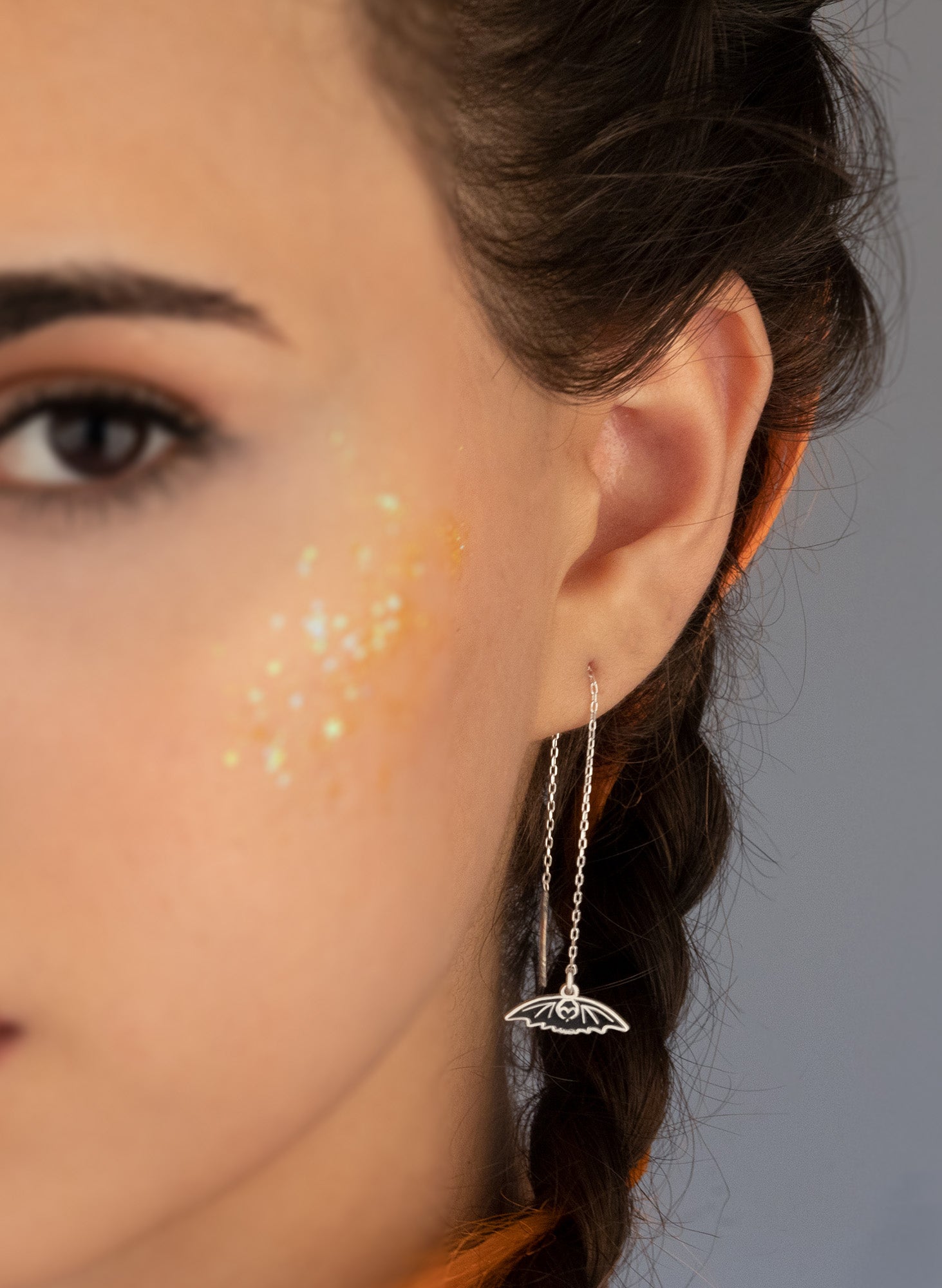 Unleash your spooky style with our Threader Tiny Black Bat Earrings - the perfect Halloween accessory! Made with 925 sterling silver, these threader earrings feature tiny black bat charms that add a touch of mischief to any outfit. It's the ultimate gift for any Halloween lover and will bring a touch of whimsy to their wardrobe.