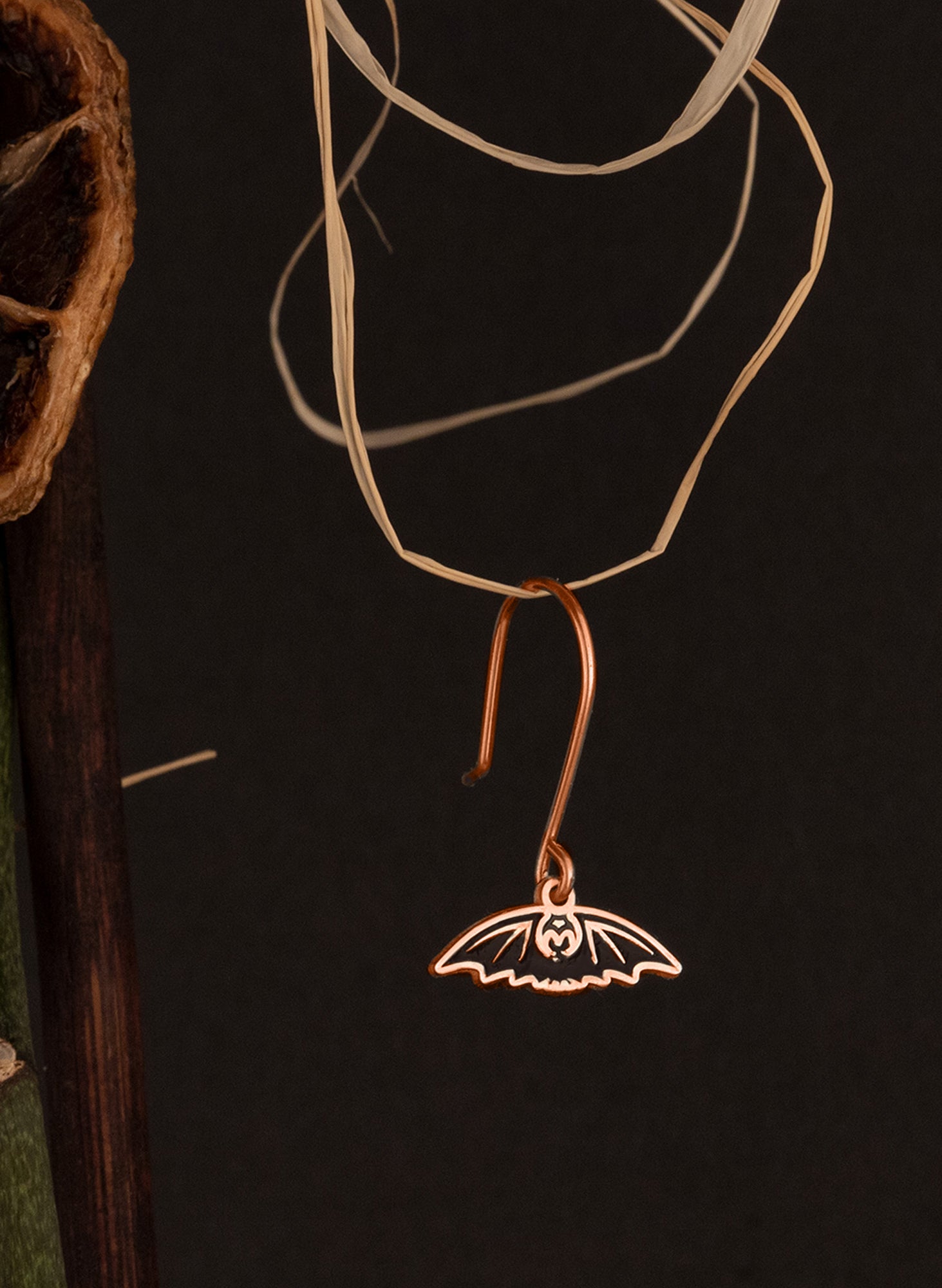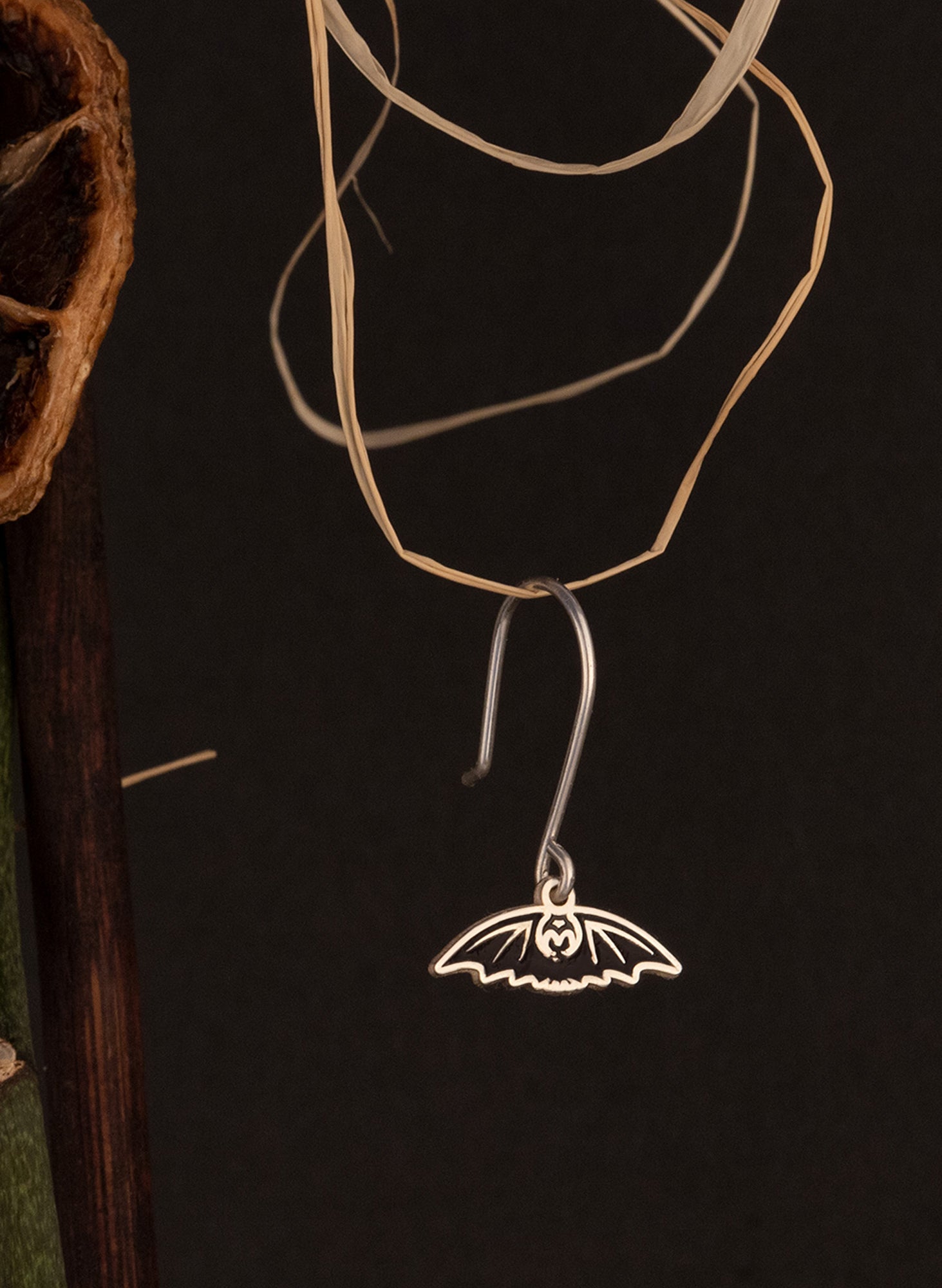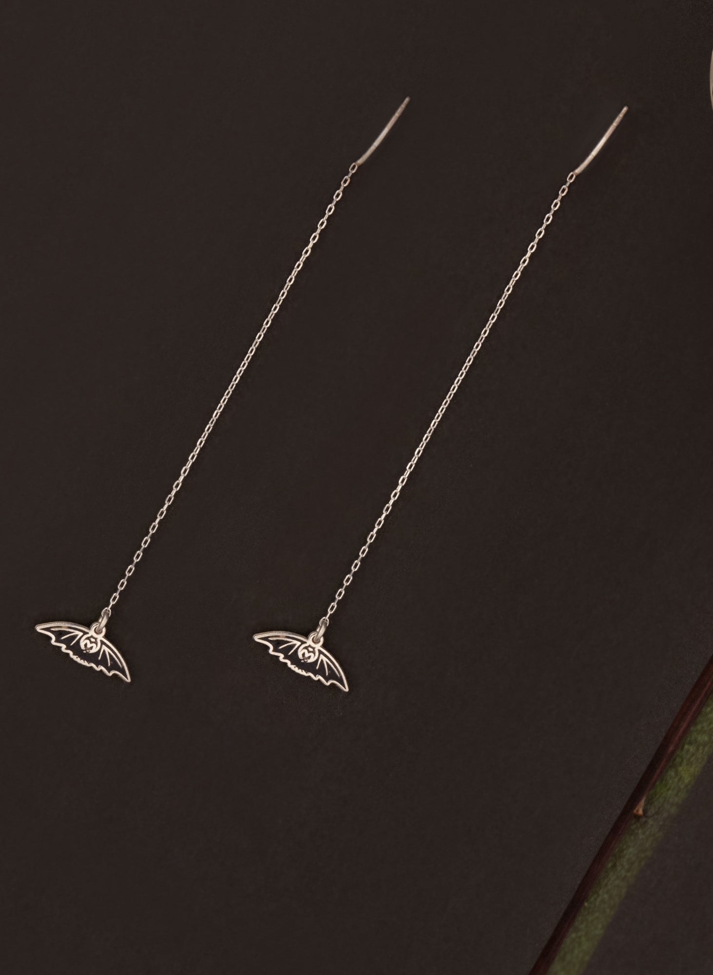 Dangle and Threader Tiny Black Bat Earring - Halloween Gift
