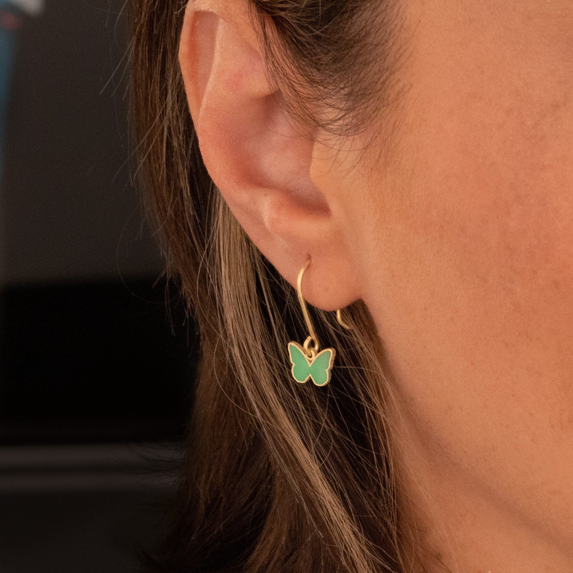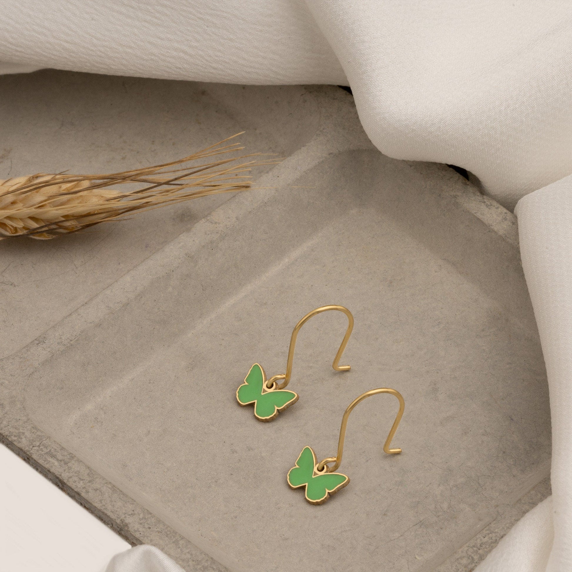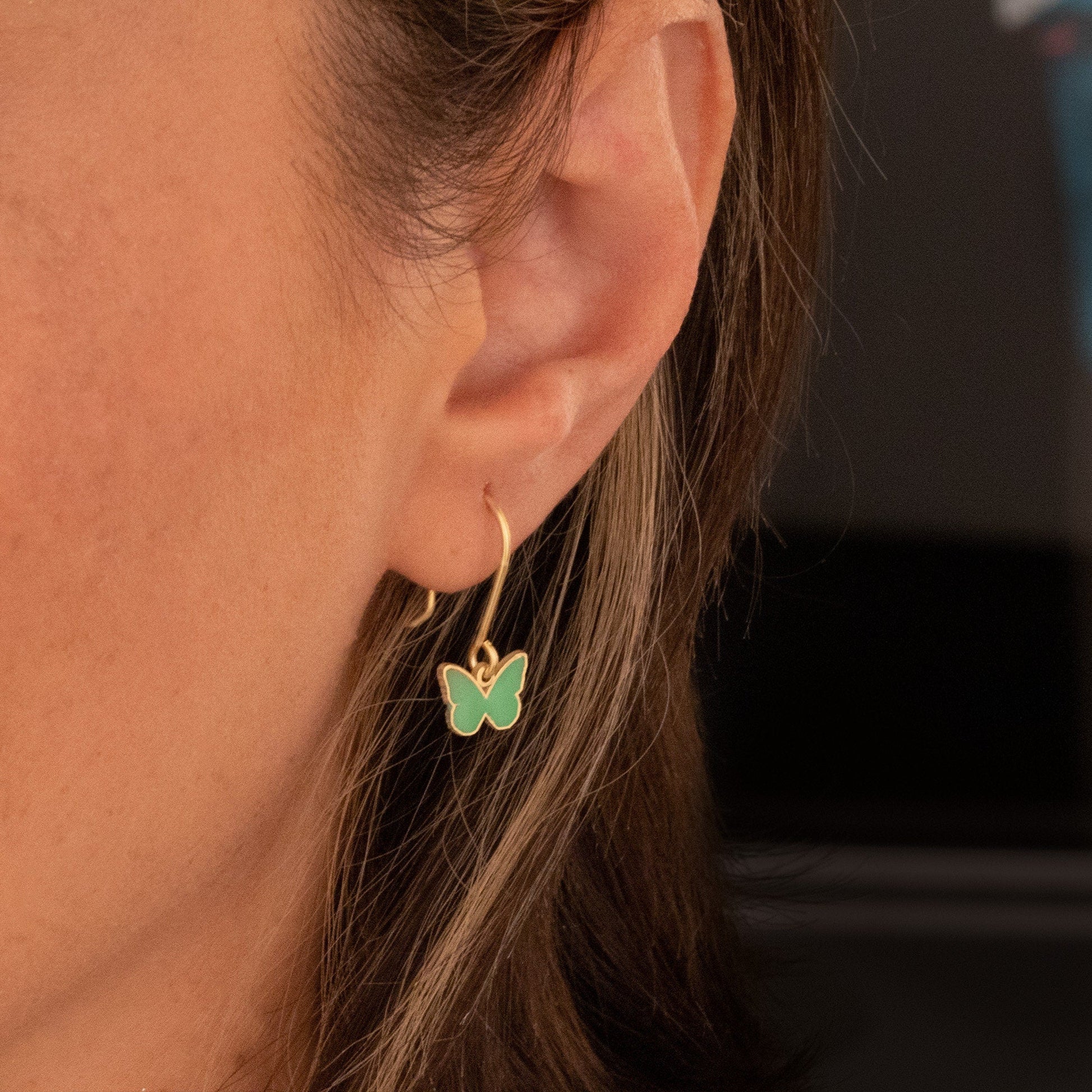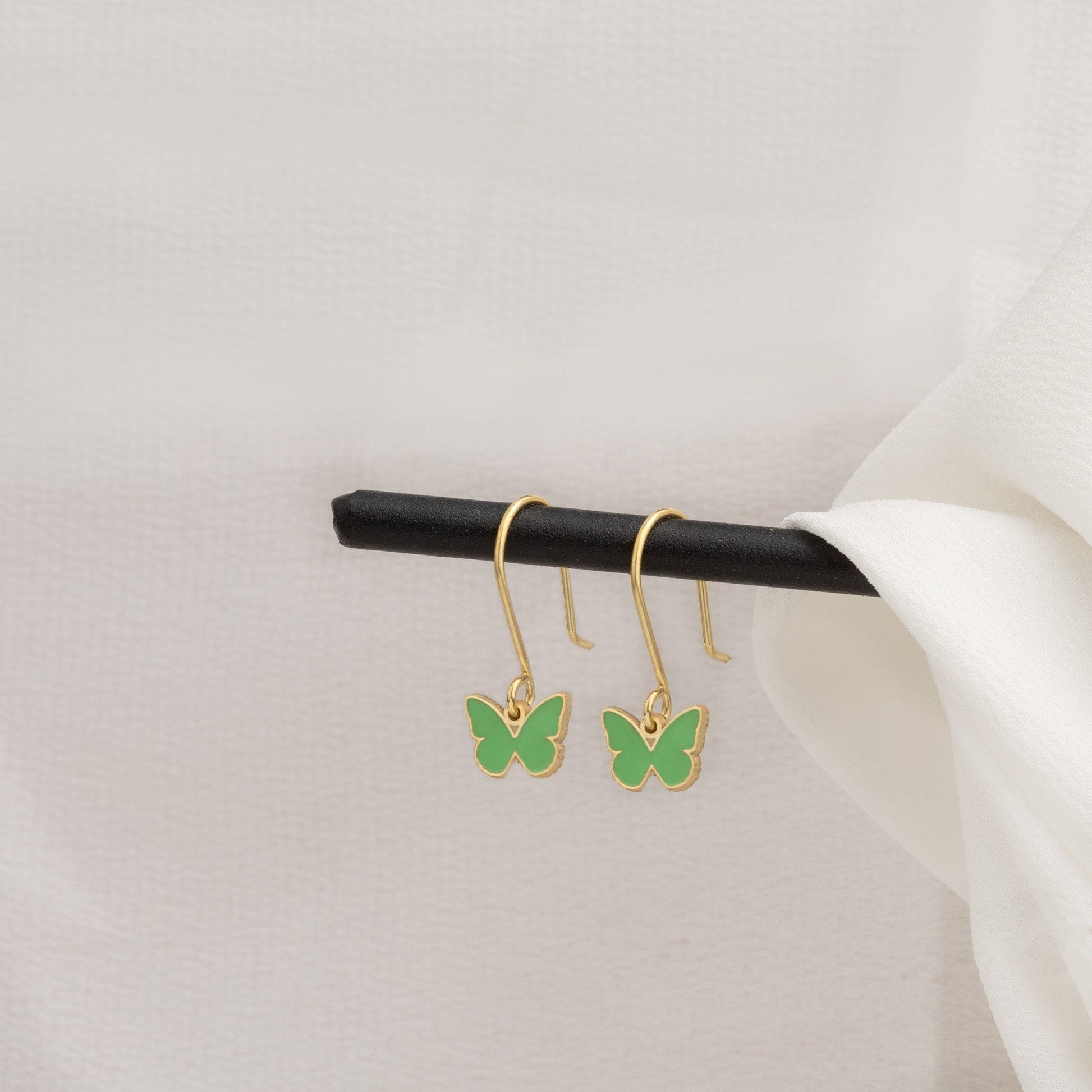 Butterfly Earring - Enamel Butterfly Earrings - Green Butterfly Earrings - Minimalist Earring - Bug Jewelry - Beautiful Earrings - Gift for Her