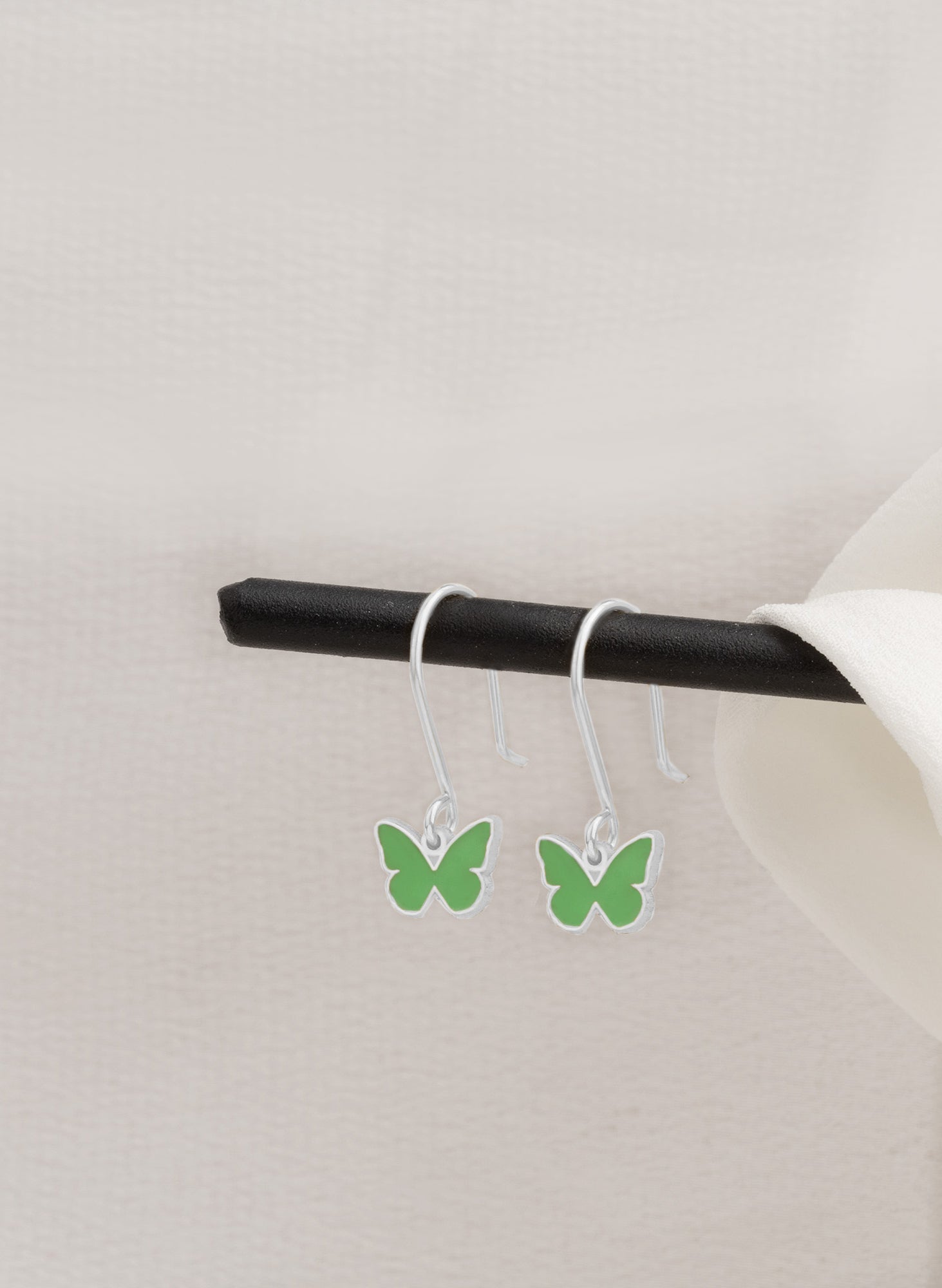 925 Sterling Silver Green Enamel Butterfly Earrings
