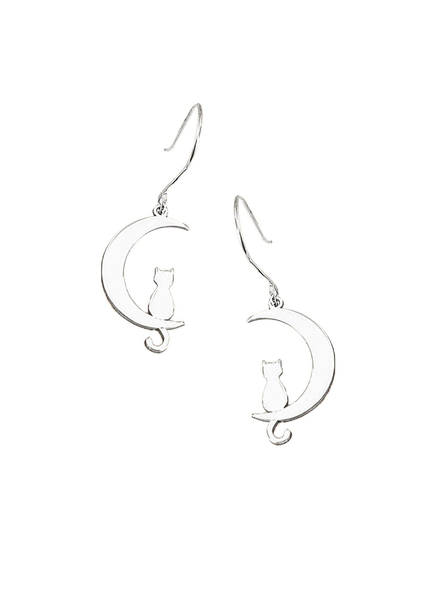 925 Sterling Silver Cat Moon Dangle & Drop Earrings