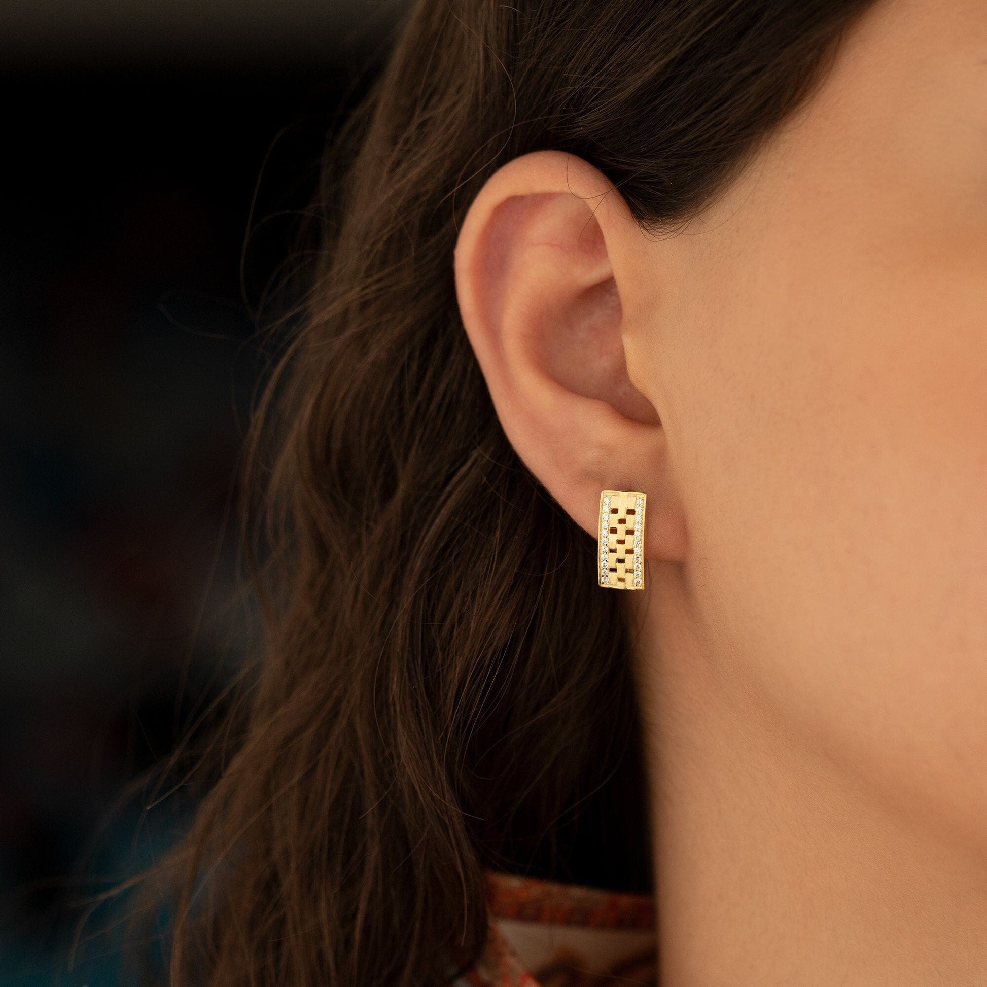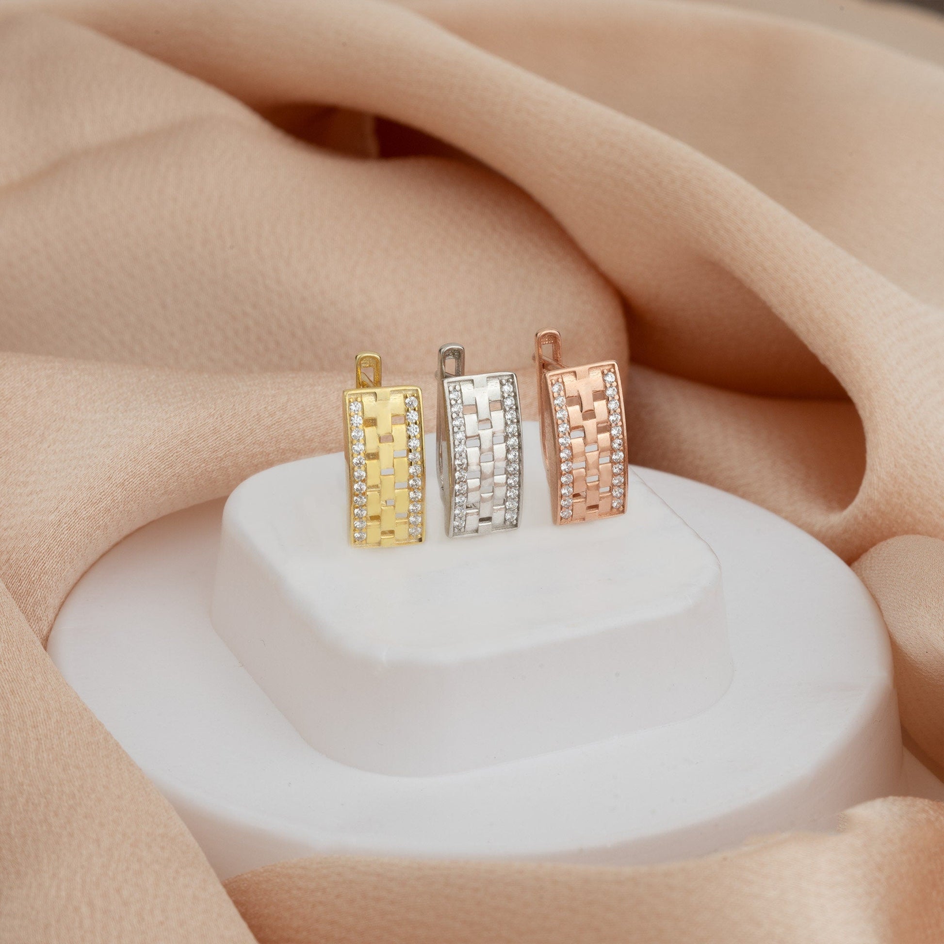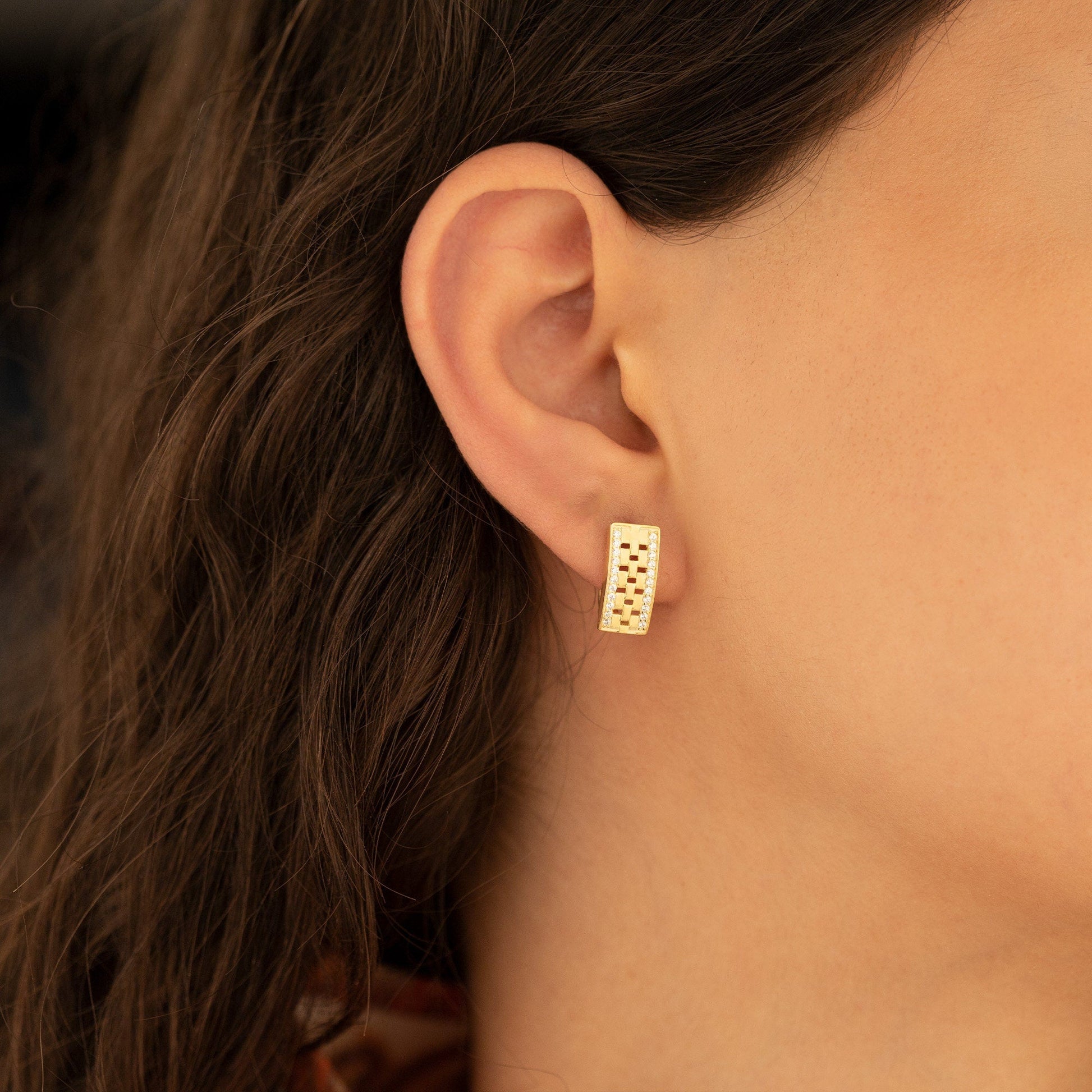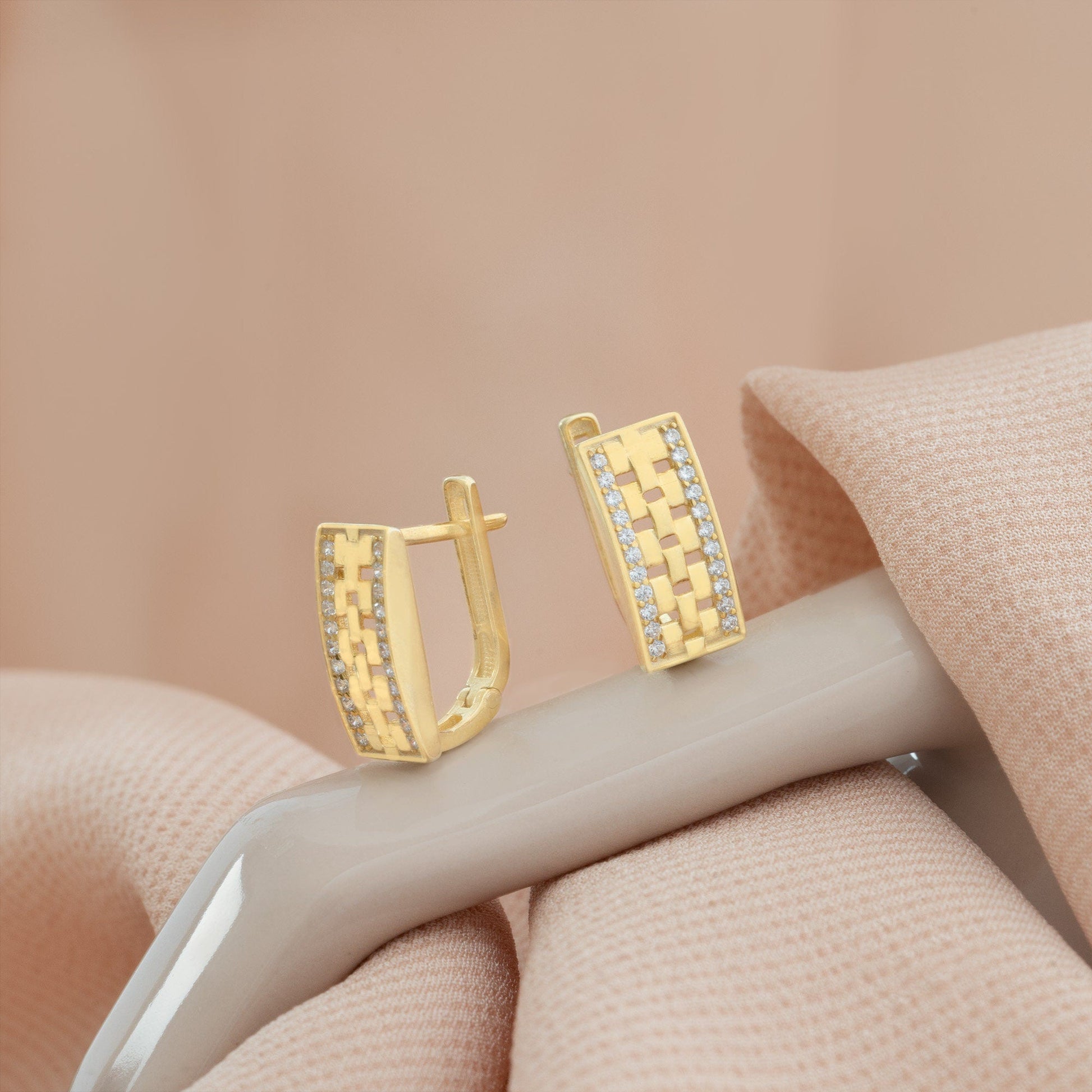 Chain Shaped Rectangular Earrings - Diamond Earrings - Modern Eearrings - Shield Earrings - Dianty Earrings - Gift for Her