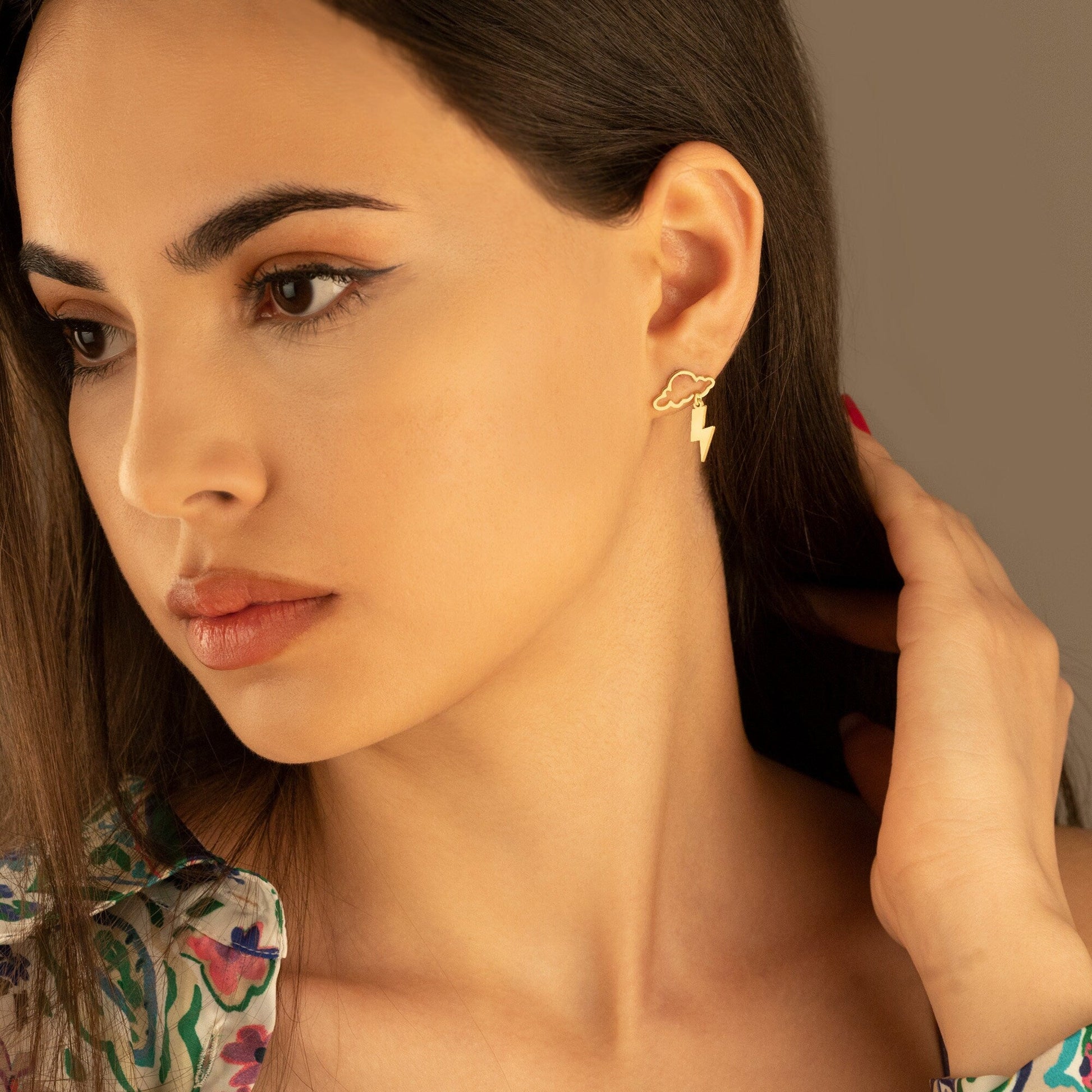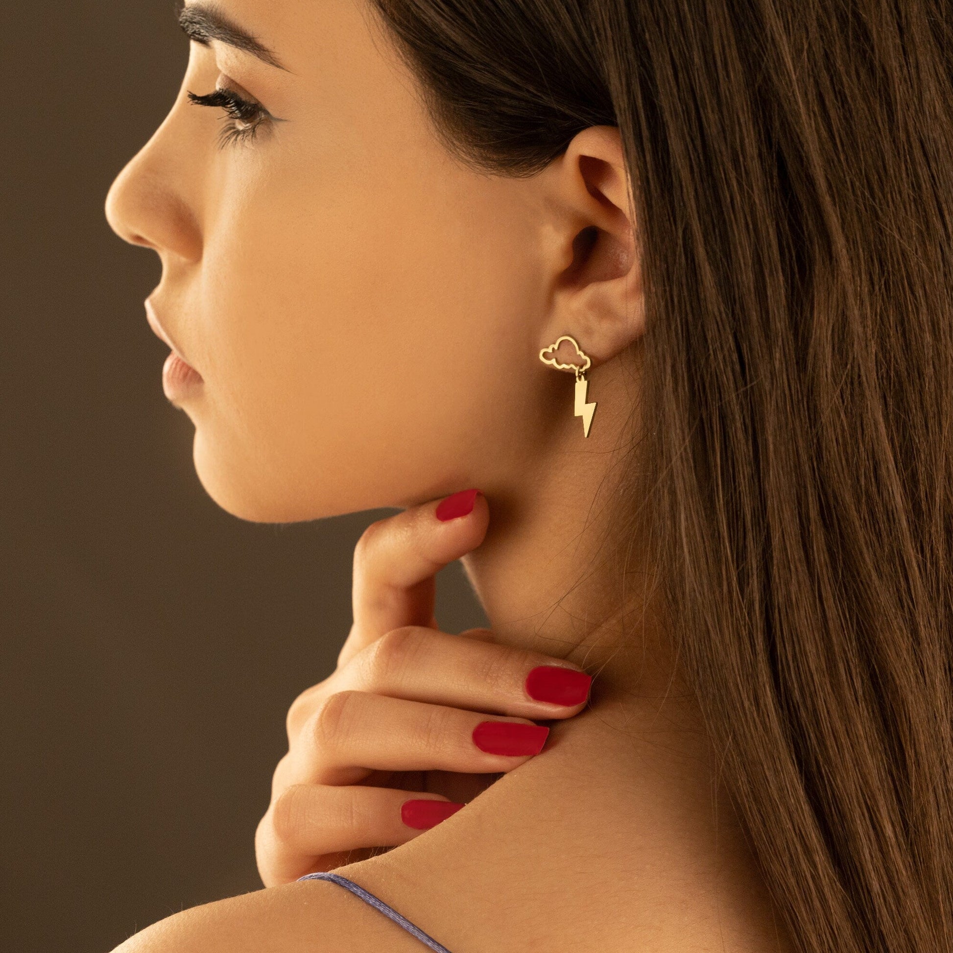 Cloud and Lightning Dangle & Drop Earrings - Halloween Earrings - Mother's Day Gift - Lightning Charm Earring - Thunder Earring - Gift for Mother - Gift for Her - Best Friend Gift - Birthday Gift