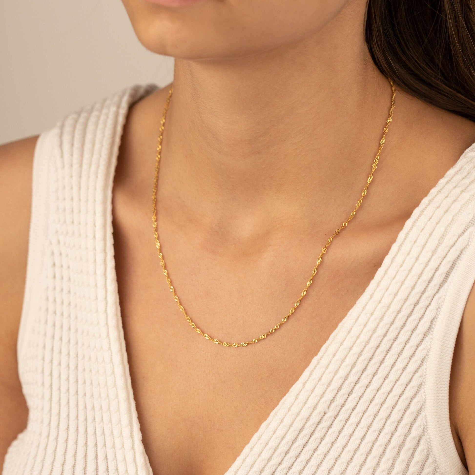 Delicate Gold Twist Chain Necklace - Christmas Gift - 2.0mm Chain - Rope Chain Necklace - Singapore Twist Chain - Gift For Her - Gift for Him - Necklace for Women