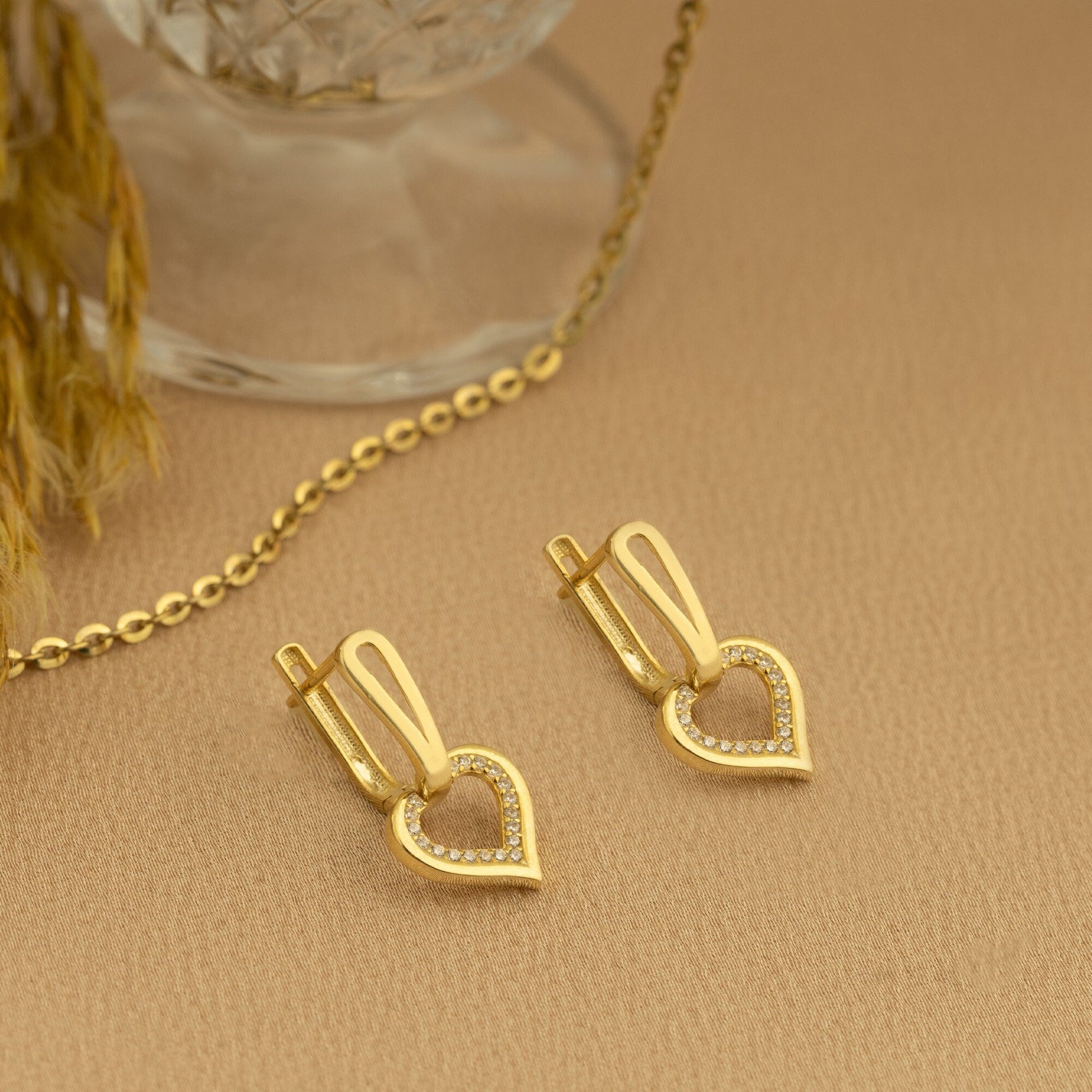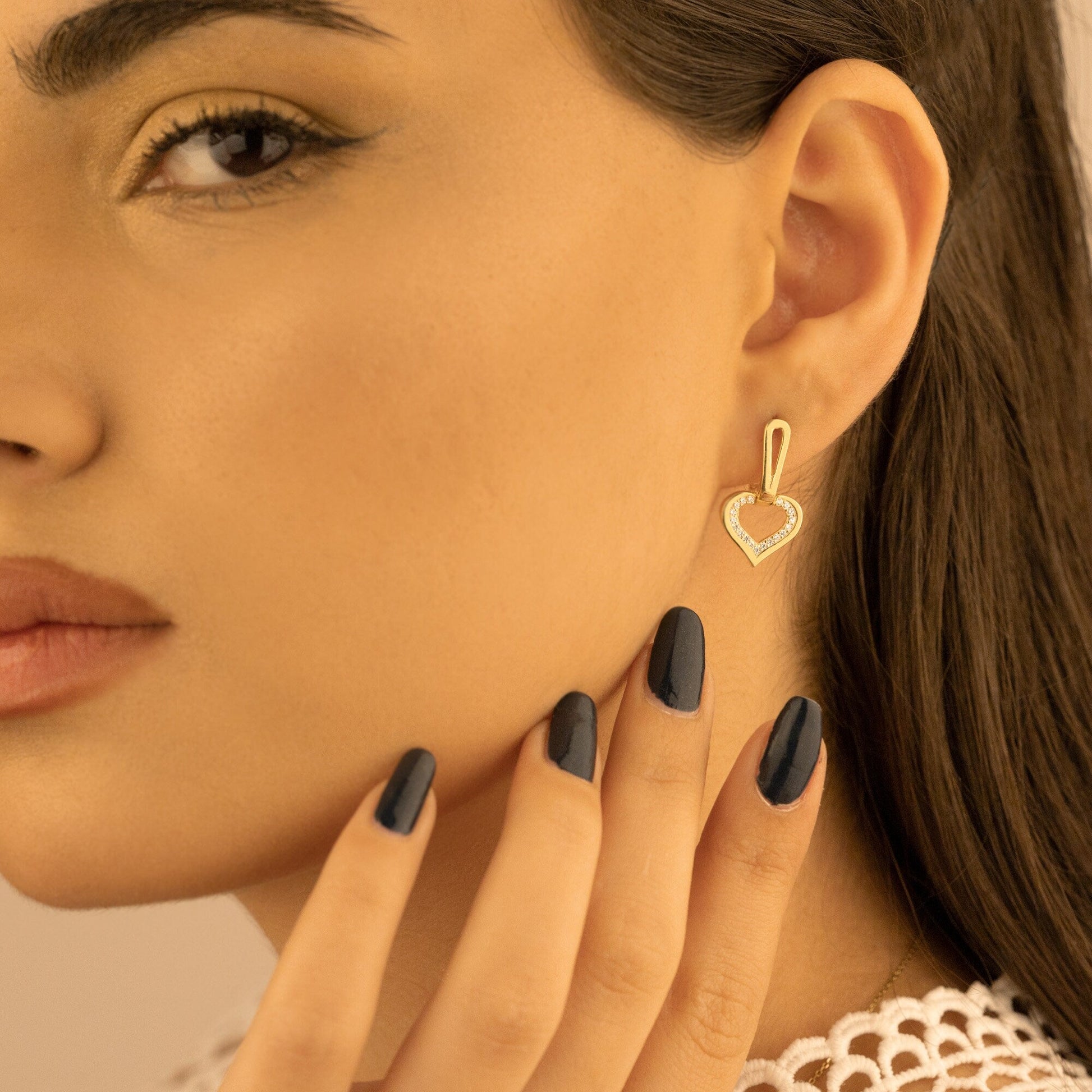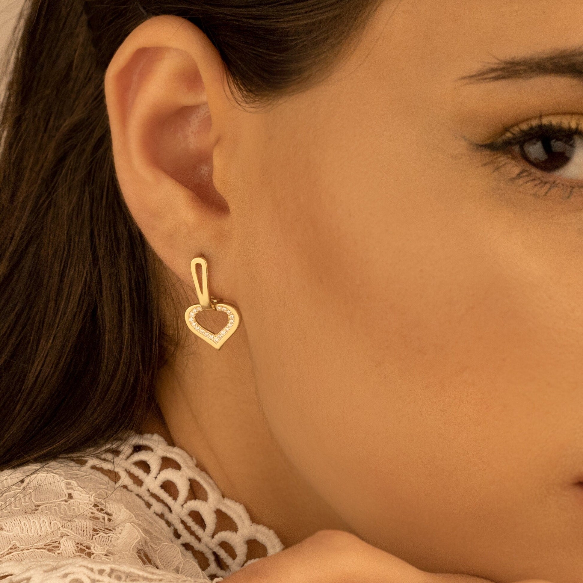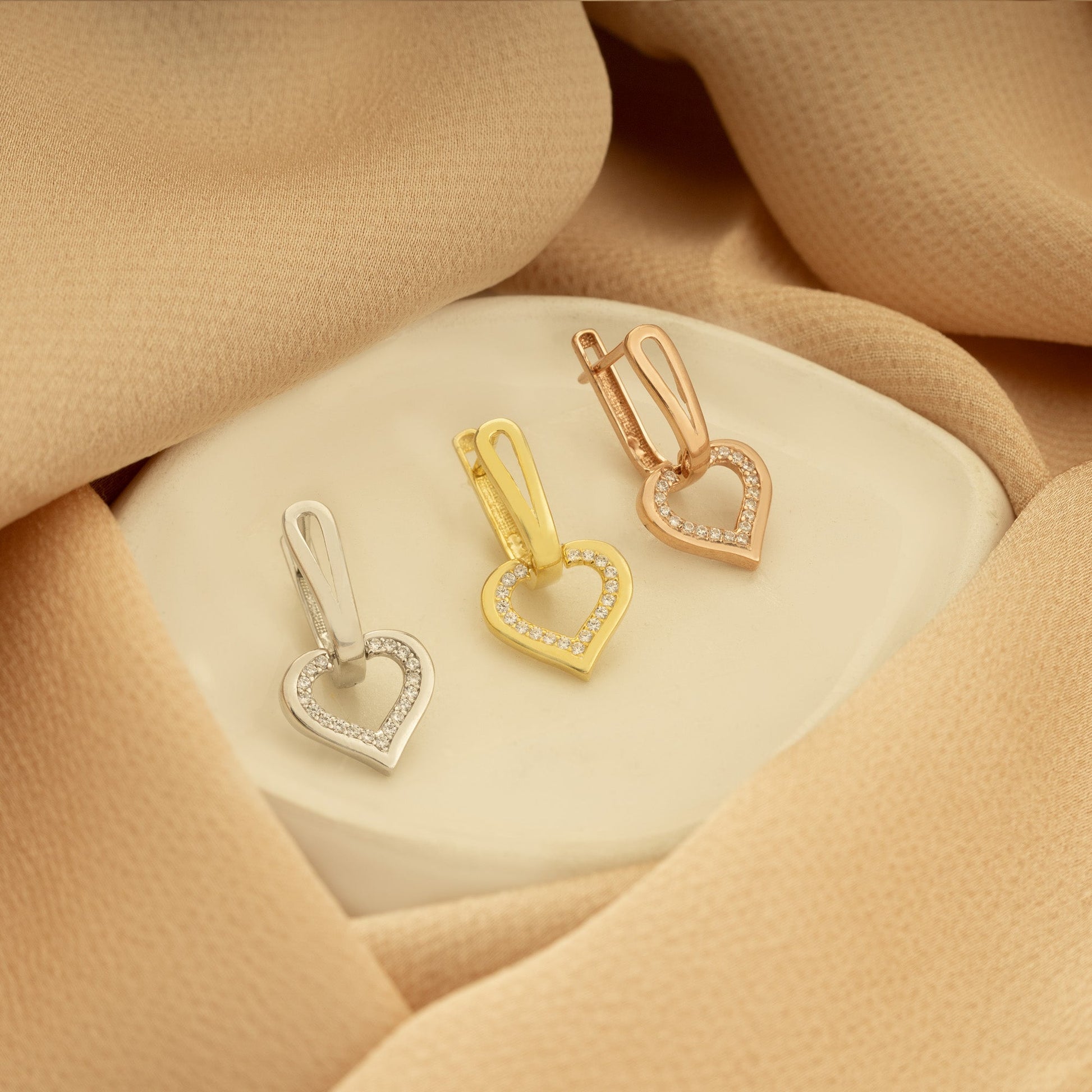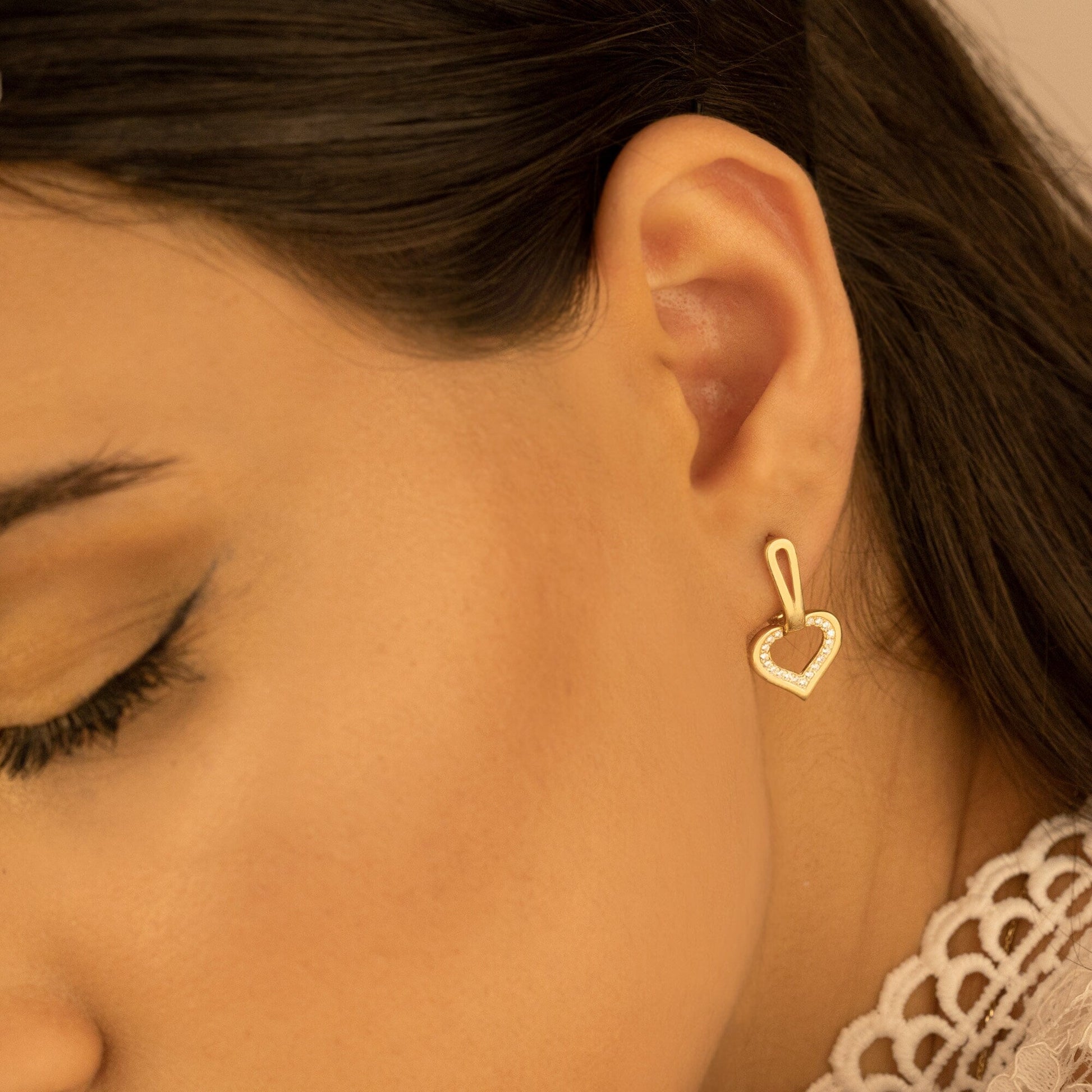Diamond Heart Dangle Hoop Earrings - Diamond Heart Earring - Love Jewelry - Dainty Earrings - Dangle Hoop Earrings - Gift for Her - Anniversary Gift