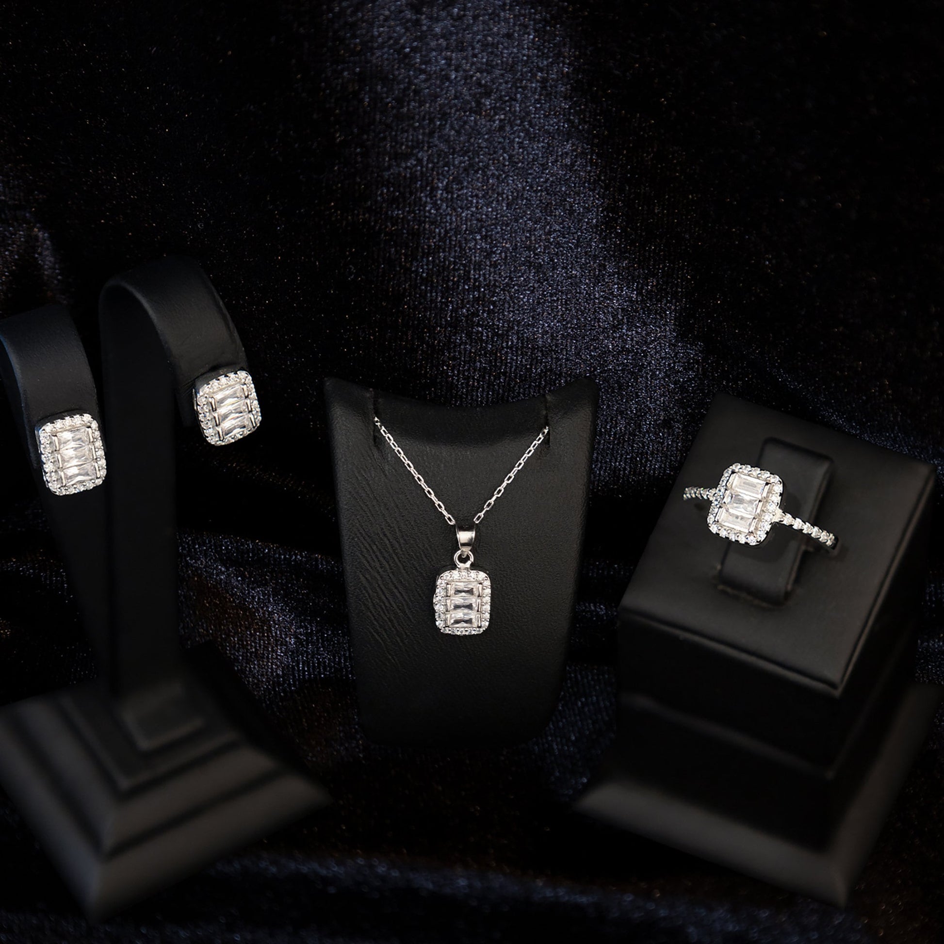 Diamond Jewelry Set 3 pieces: Necklace, Ring & Earrings - Valentine's Day Gift - 925 Sterling Silver Jewelry Set - Gift for Her - Handmade Pendant - Gift for Wife