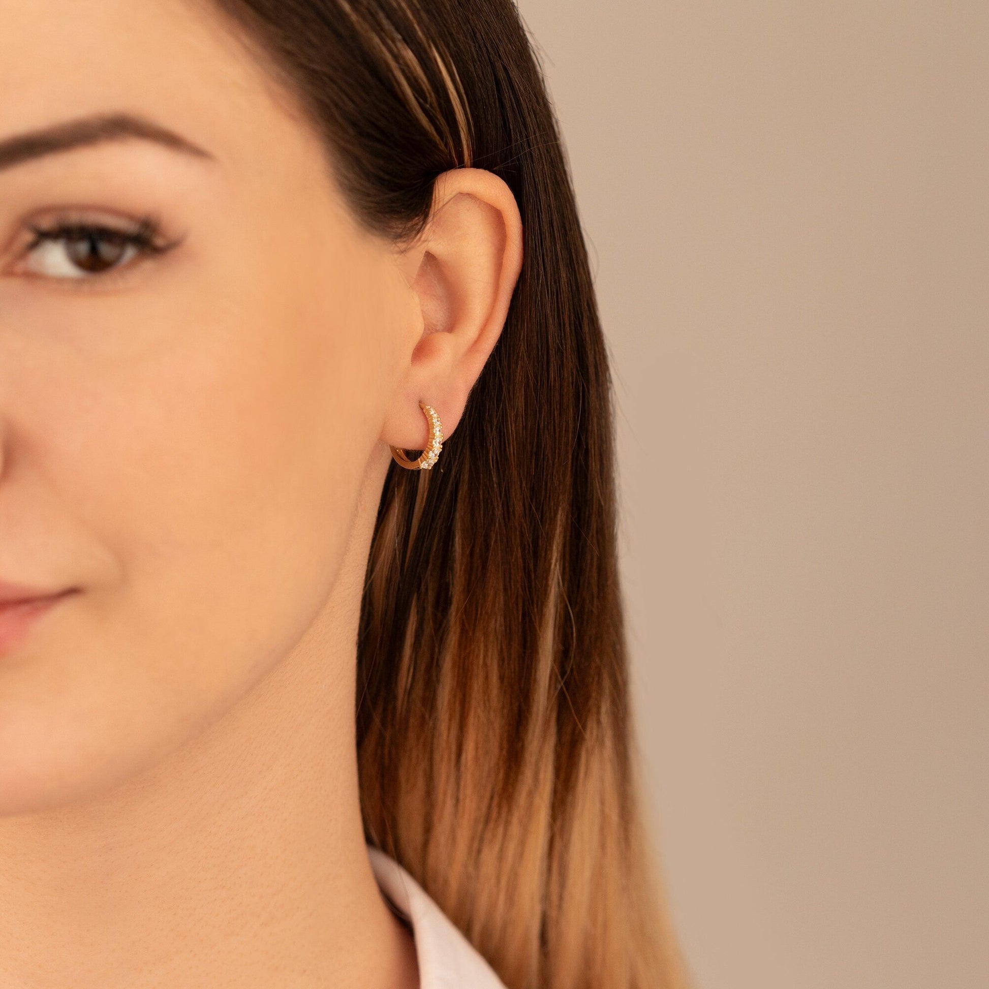 Discover the perfect gift for Mother's Day with our stunning 925 Sterling Silver Diamond Pave Huggie Earrings. Expertly crafted with CZ stones, these huggie earrings exude elegance and style. Made with high quality 925 sterling silver, these diamond hoop earrings are a timeless addition to any jewelry collection.
