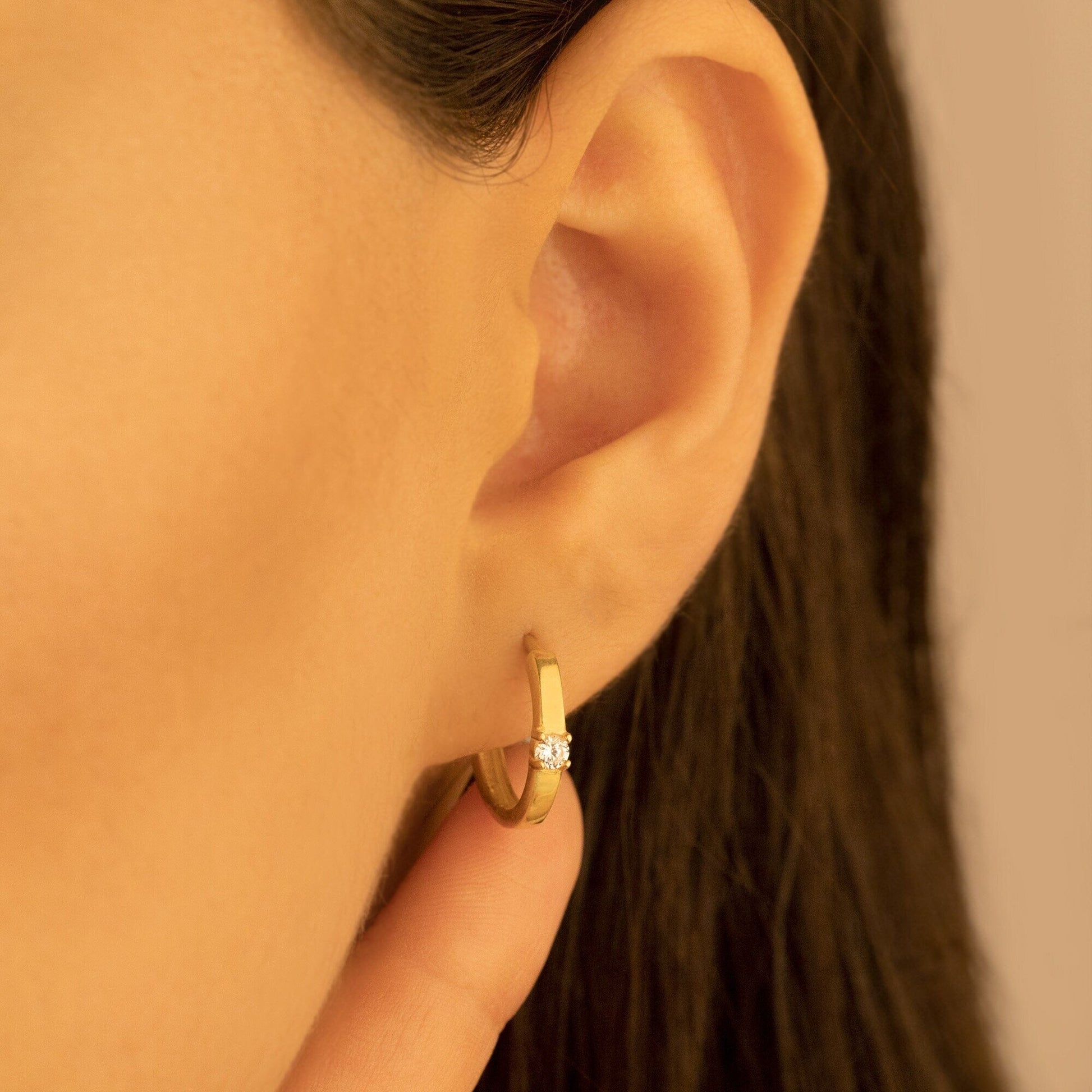 Description: The Diamond Ring Hoop Earrings radiate a refined charm and grace. Fashioned from premium 925 sterling silver, renowned for its luster and resilience, these hoops are embellished with strategically set diamonds that sparkle brilliantly, ideal for enhancing any outfit from day to night. The diamonds lend an air of opulence, complemented by a reliable fastening that promises a secure fit. Suited for grand events or daily sophistication, these earrings are an enduring staple for any collection.