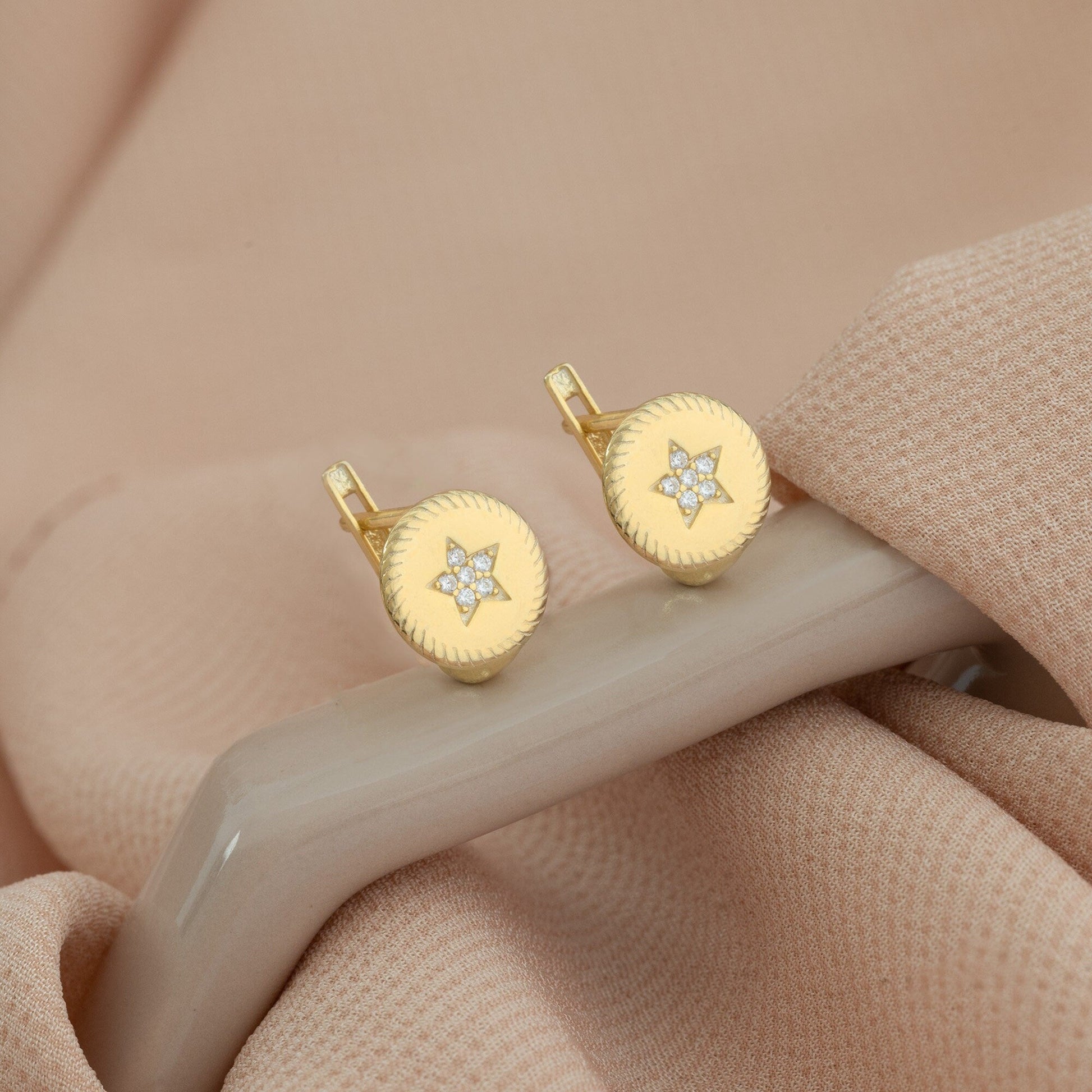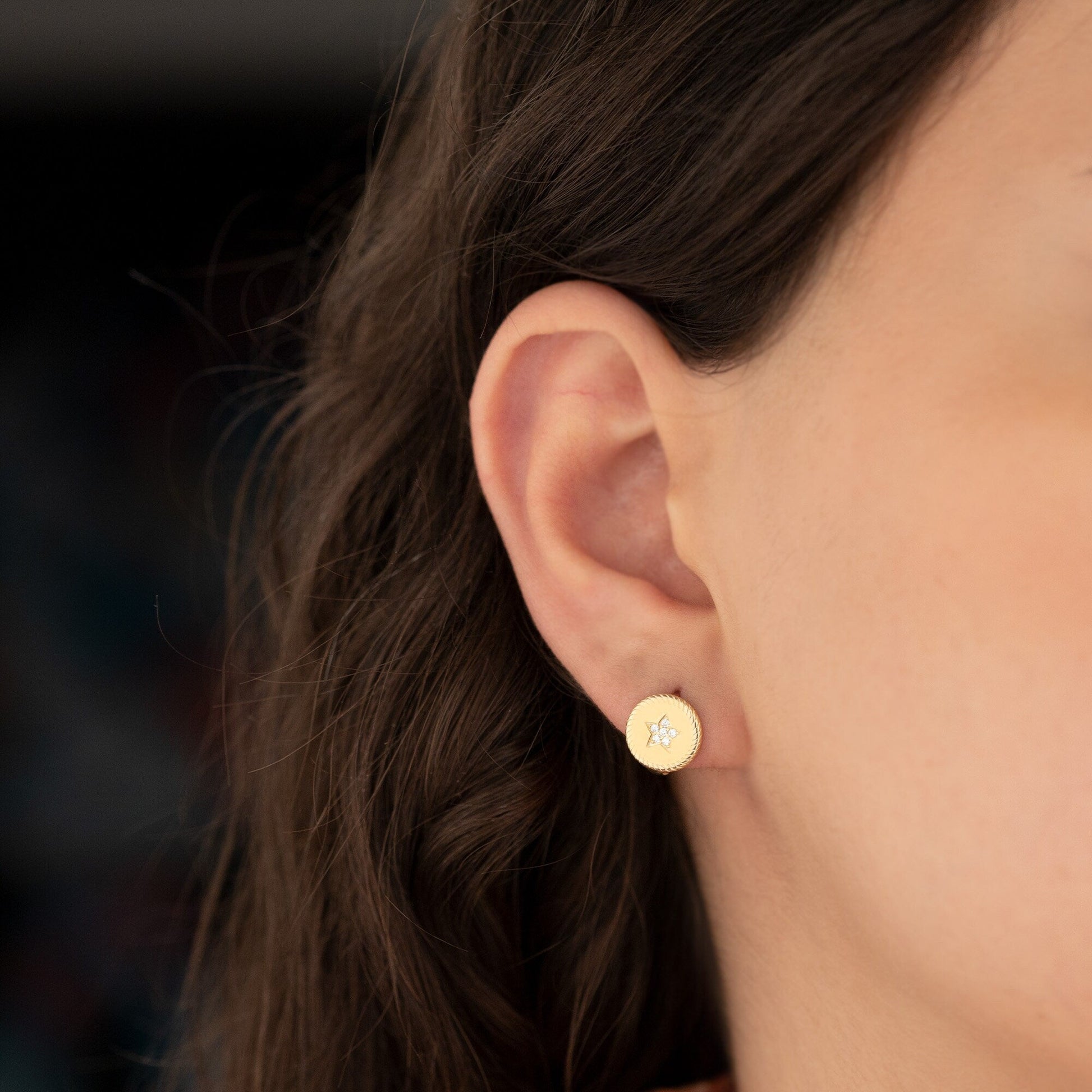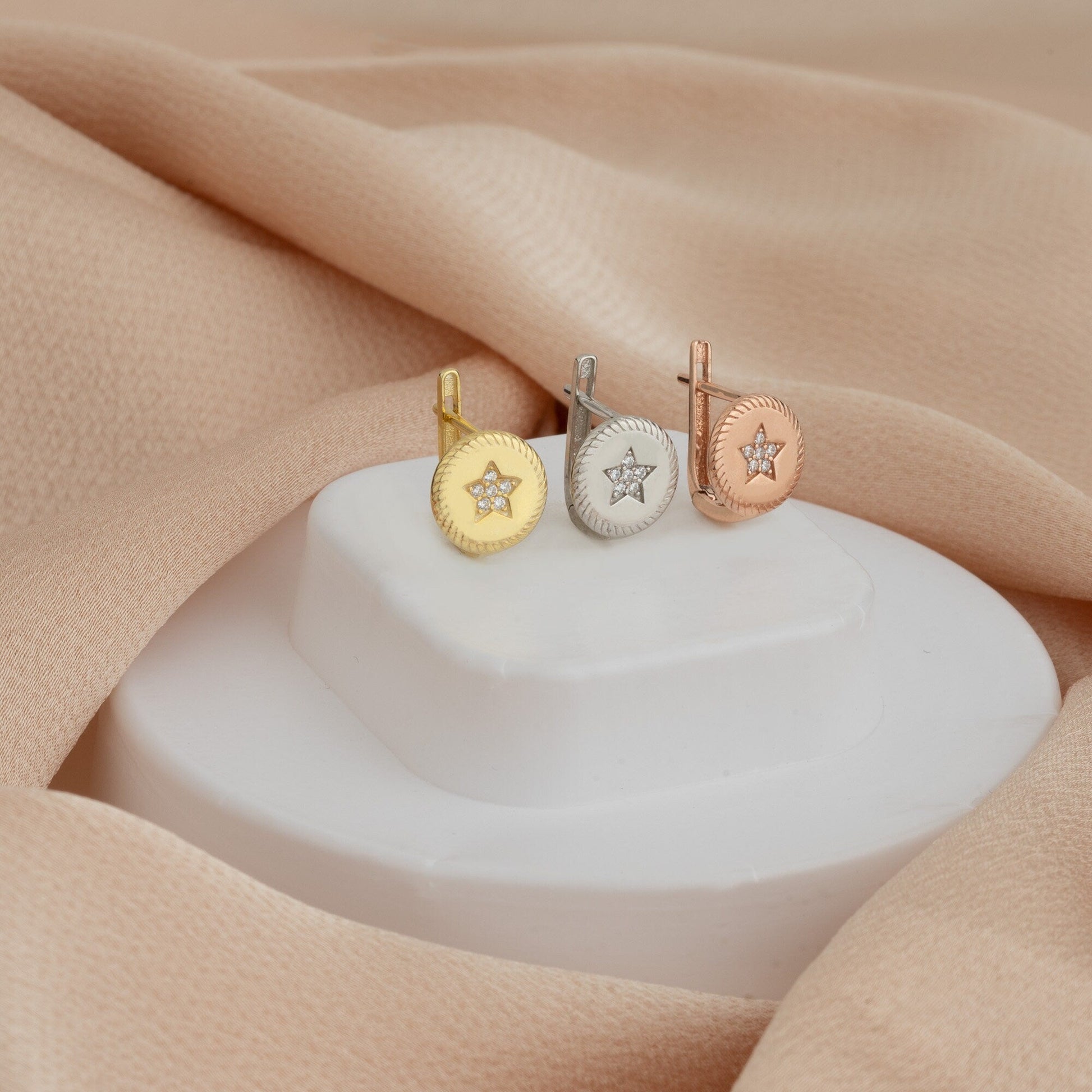 Diamond Star Round Earrings - Diamond Earrings - Celestial Earring - Dainty Earrings - Star Earrings - Earring for Women - Gift for Her