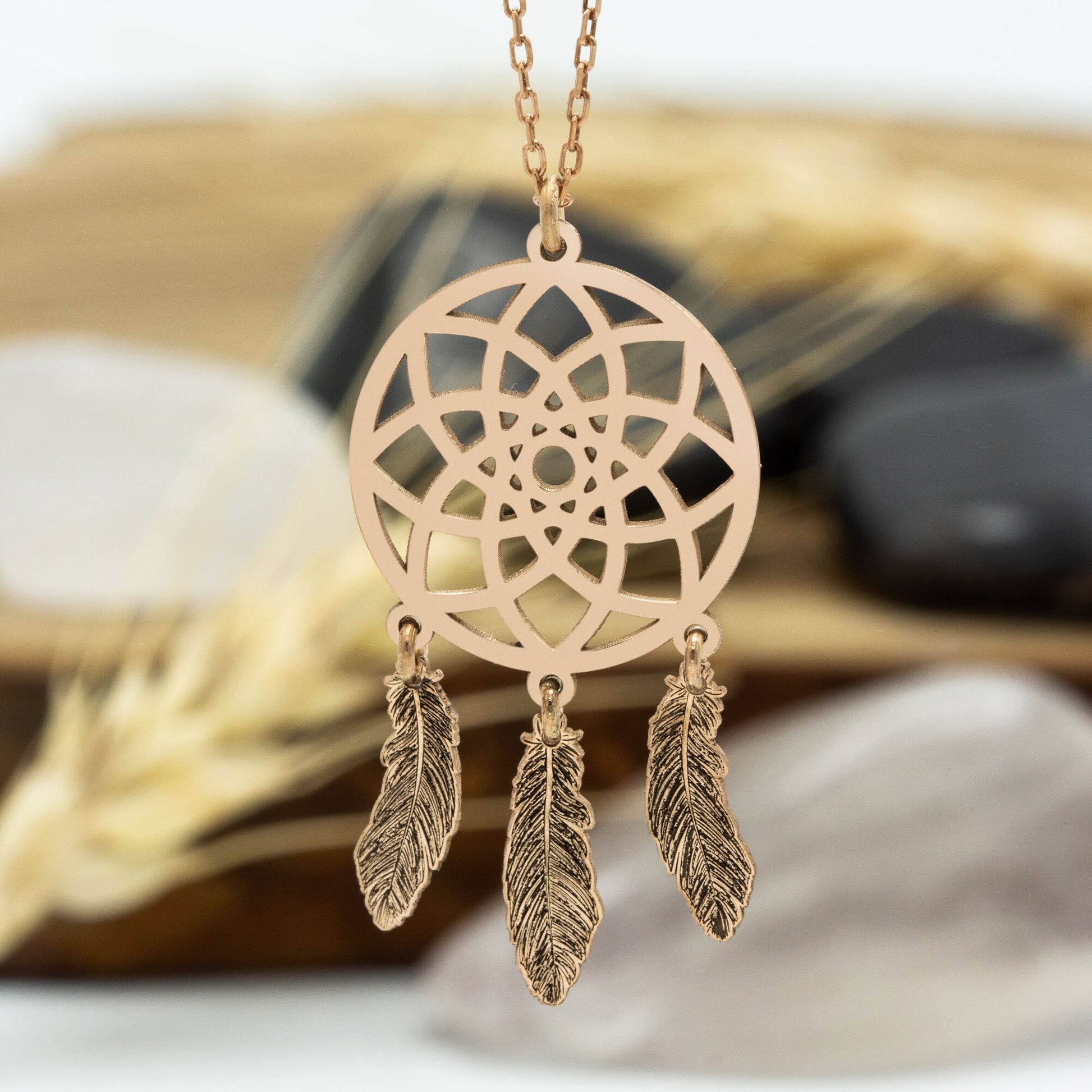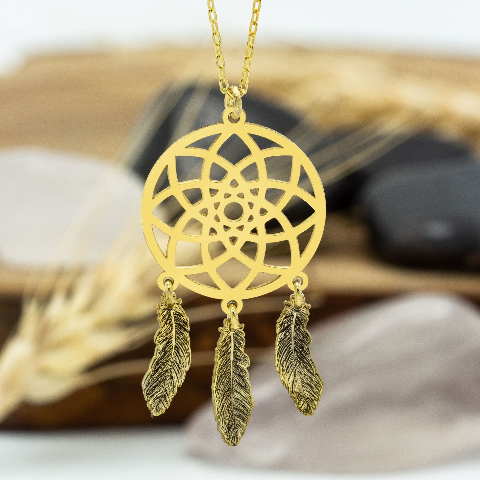 Dream Catcher Necklace Necklace - 925 Sterling Silver Necklace - Luck Necklace - Dream Catcher Jewelry - Gold Jewelry