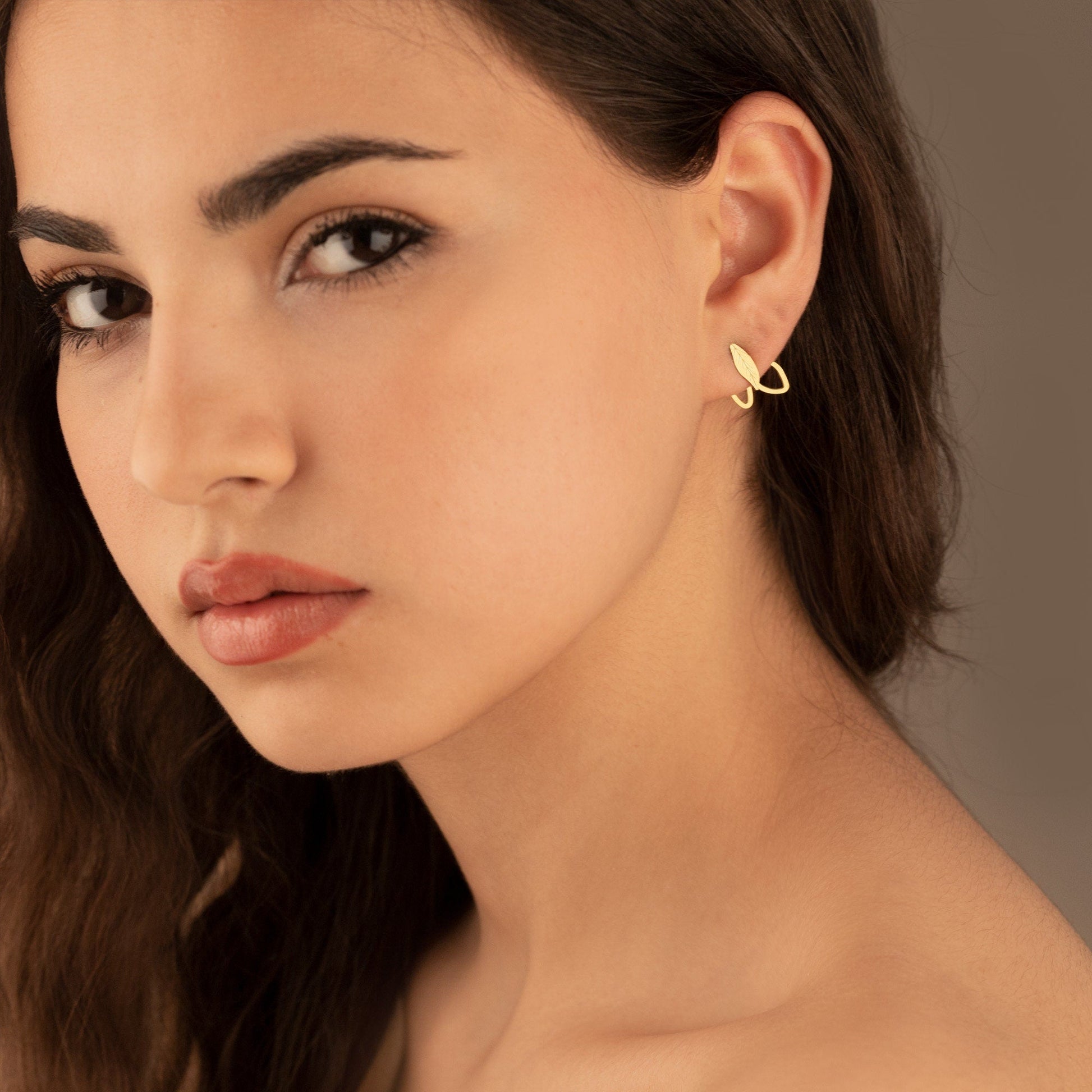 Ear Jacket Double Leaf Earrings - Leaf Earring - Dainty Ear Jacket - Double Earrings - Geometric Earrings - Modern Earrings - Modern Jewelry - Best Friend Gift - Gift for Her - Birthday Gift