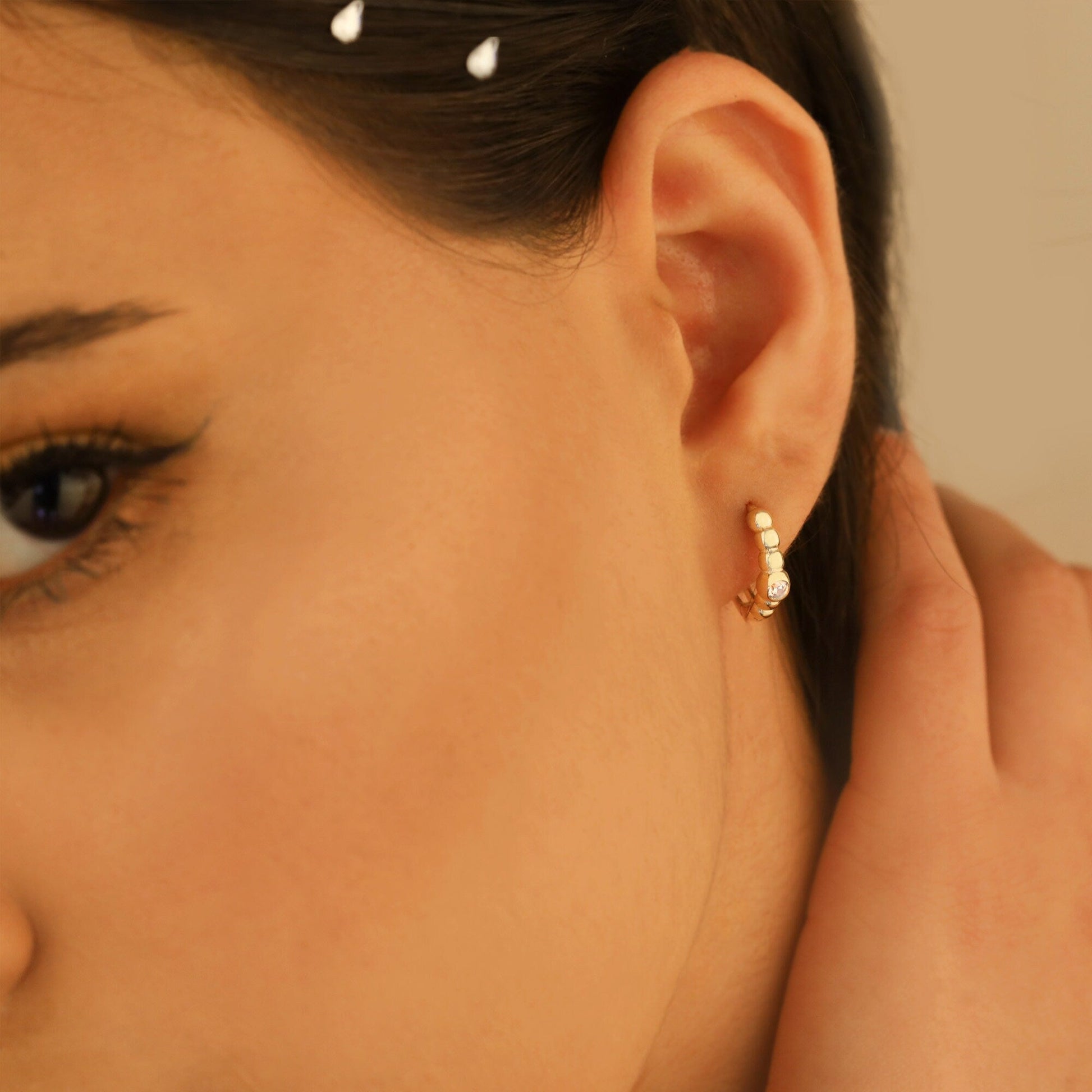Embossed Diamond Ring Earrings - Mother's Day Gift - Diamond Ring Shape Earring - Dainty Earrings - Hoop Earrings - Dainty Earrings - Gift for Her - Modern Jewelry - Anniversary Gift