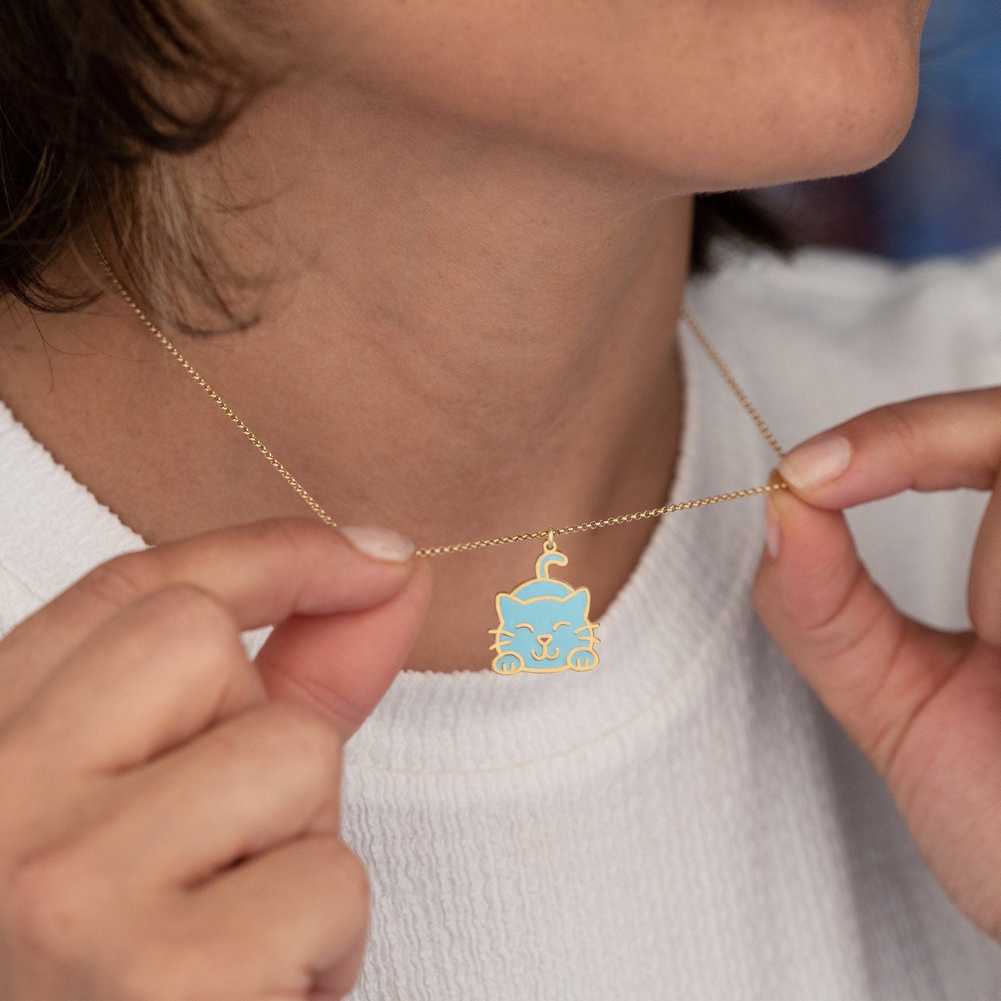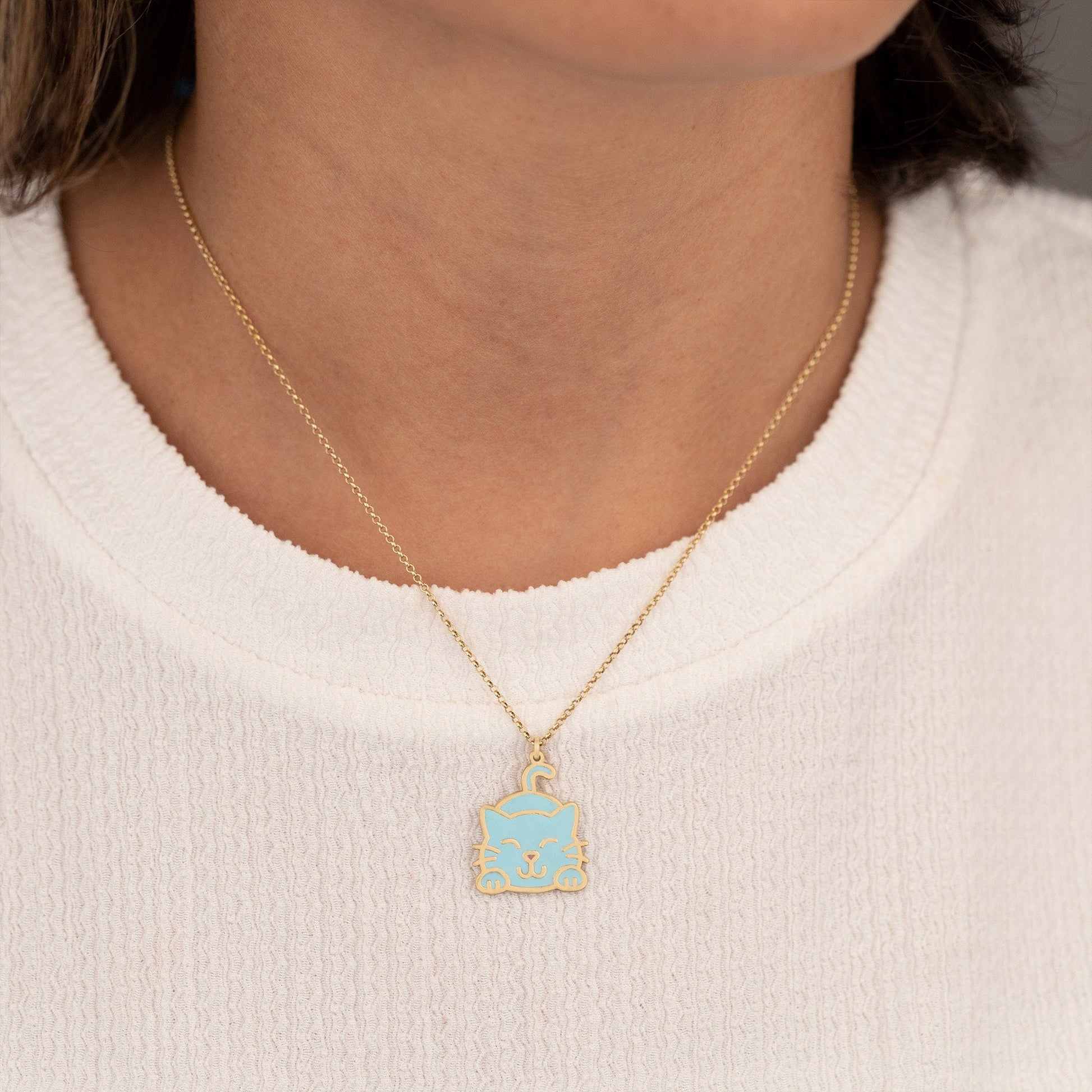 This necklace features a charming cat design crafted from 925 sterling silver and coated with colorful enamel. Perfect for cat lovers of all ages, this piece is sure to add a touch of whimsy to any outfit. Made from high-quality materials, it is both durable and elegant.