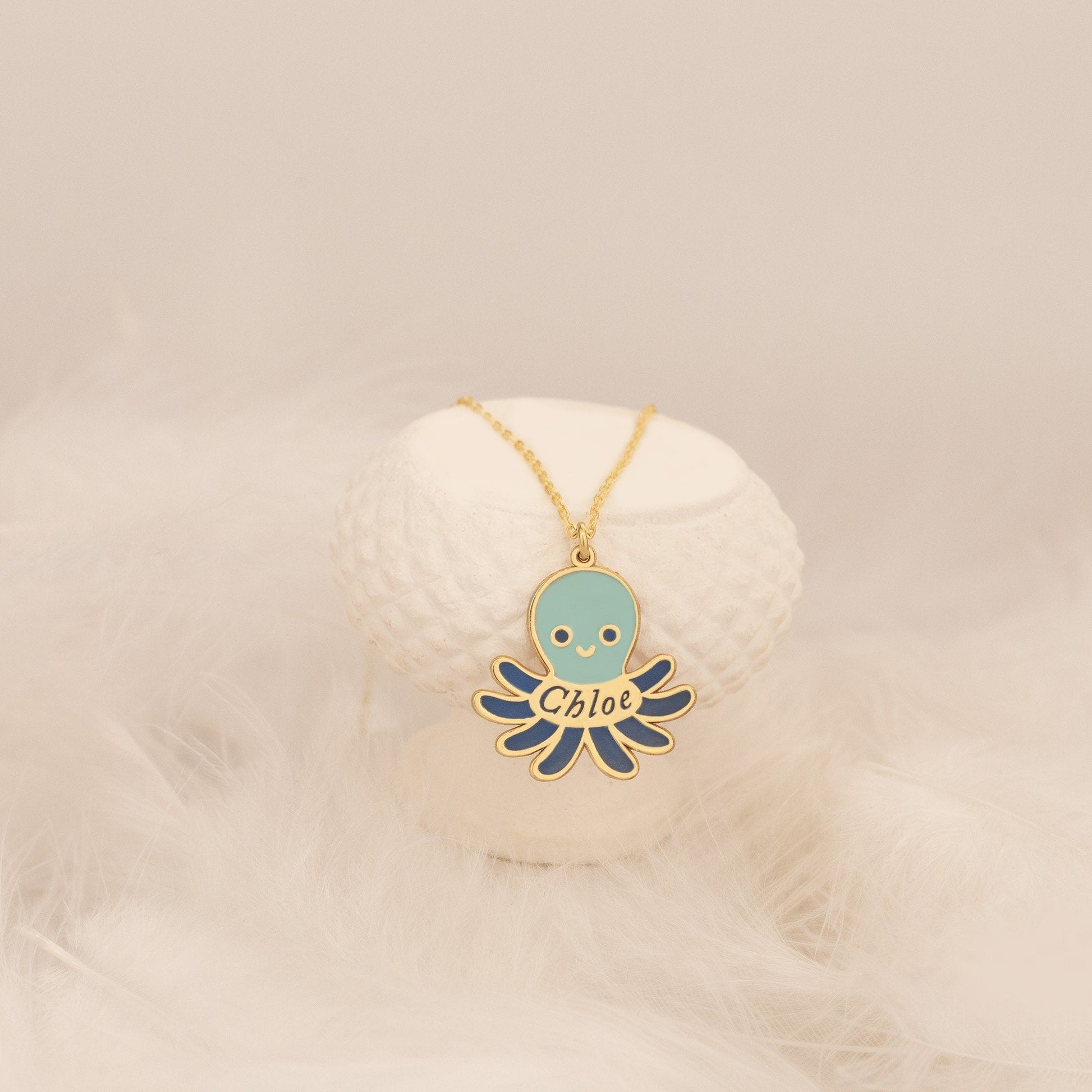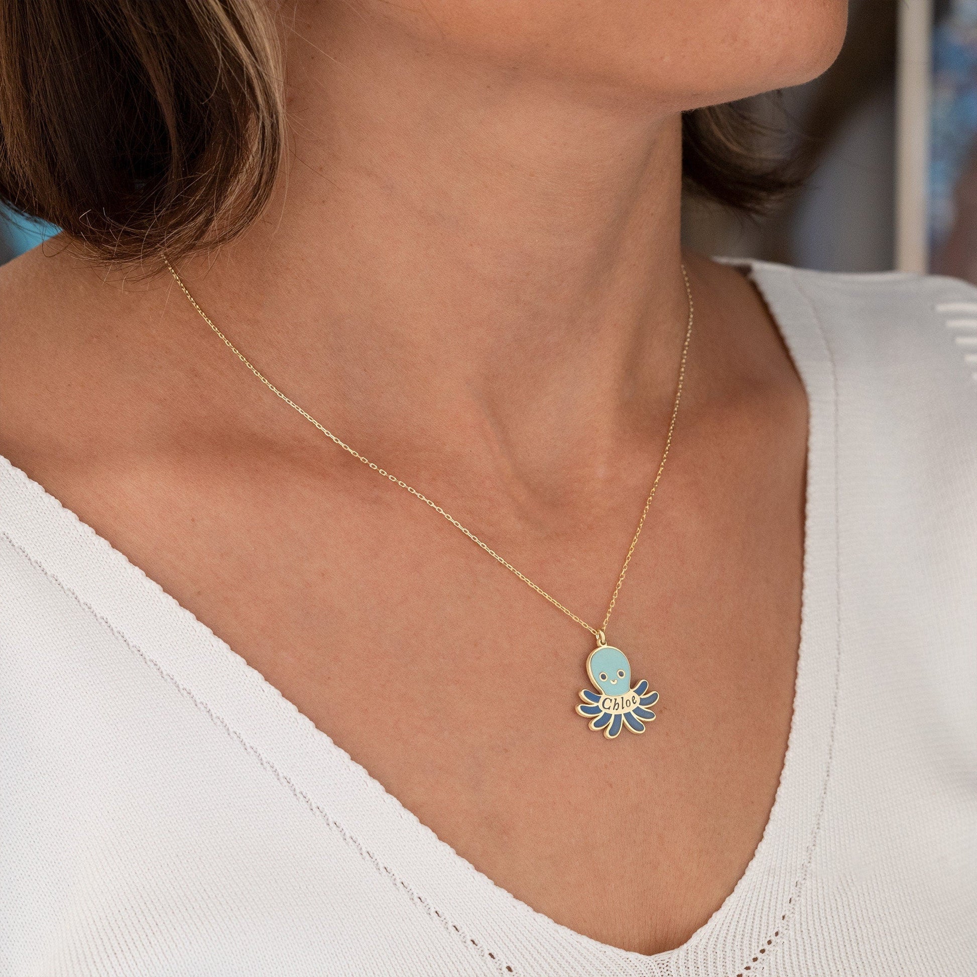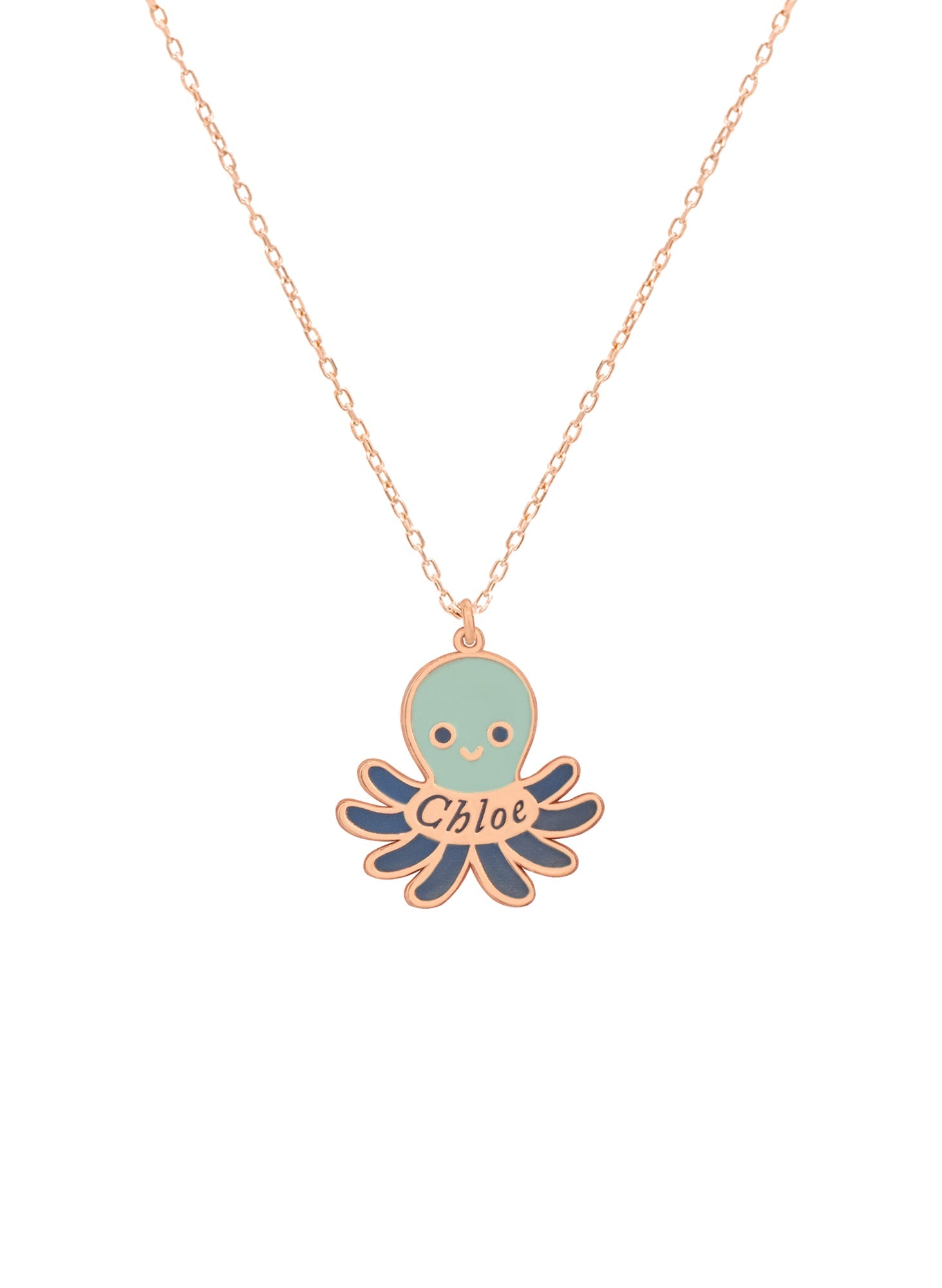 Crafted from high-quality 925 sterling silver, this necklace features a charming octopus pendant with vibrant enamel details. Add a personalized touch by adding your name to the pendant. Enhance any outfit with this unique and elegant piece, perfect for both casual and formal occasions.