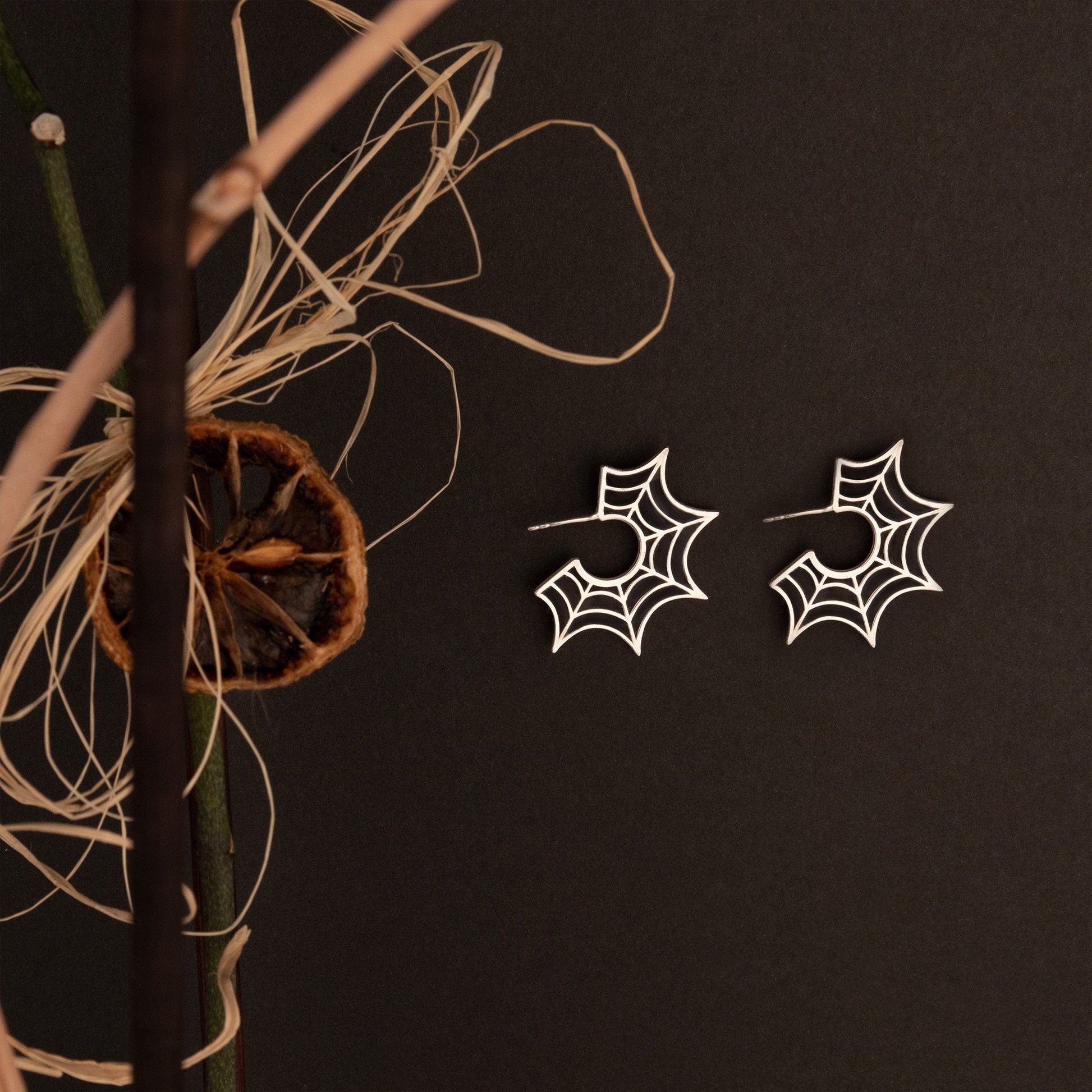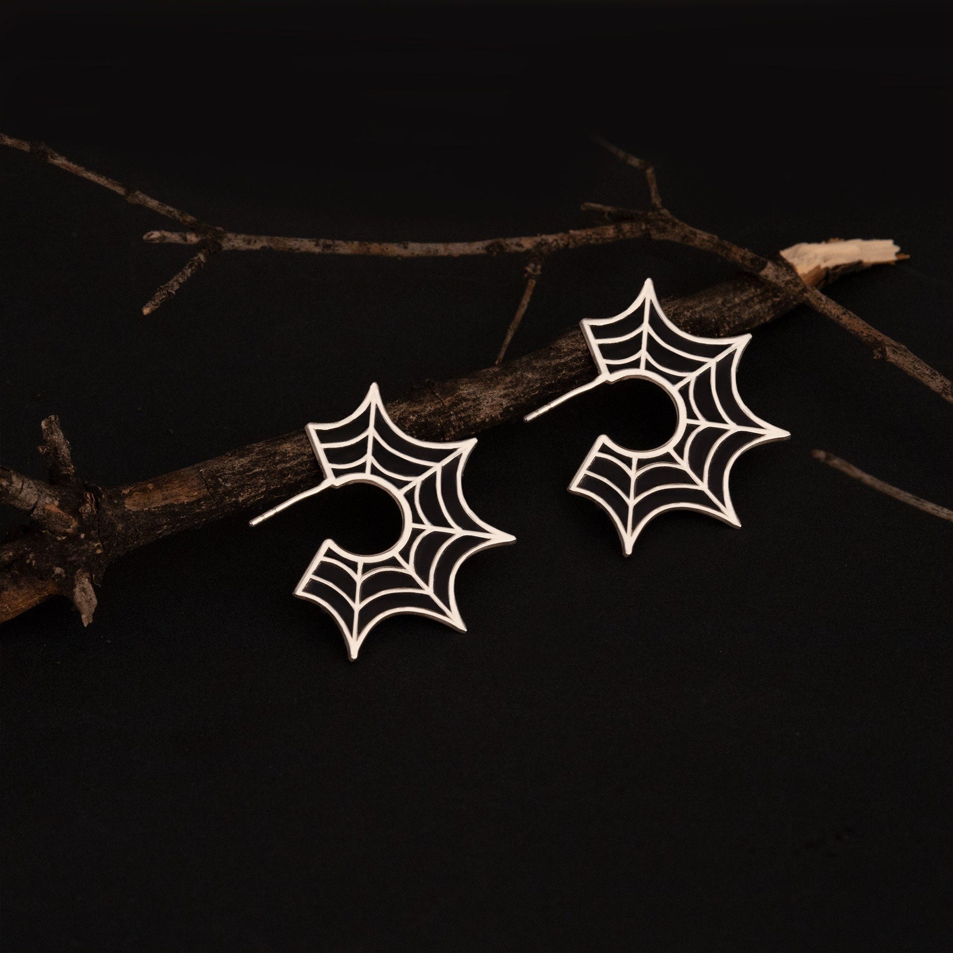 Indulge your love for spiders with our Enamel Spider Web Earrings! Made with 925 sterling silver and black enamel, these earrings are perfect for Halloween, or as a unique Valentine's Day gift for that special someone who loves all things creepy. Add them to your collection today!