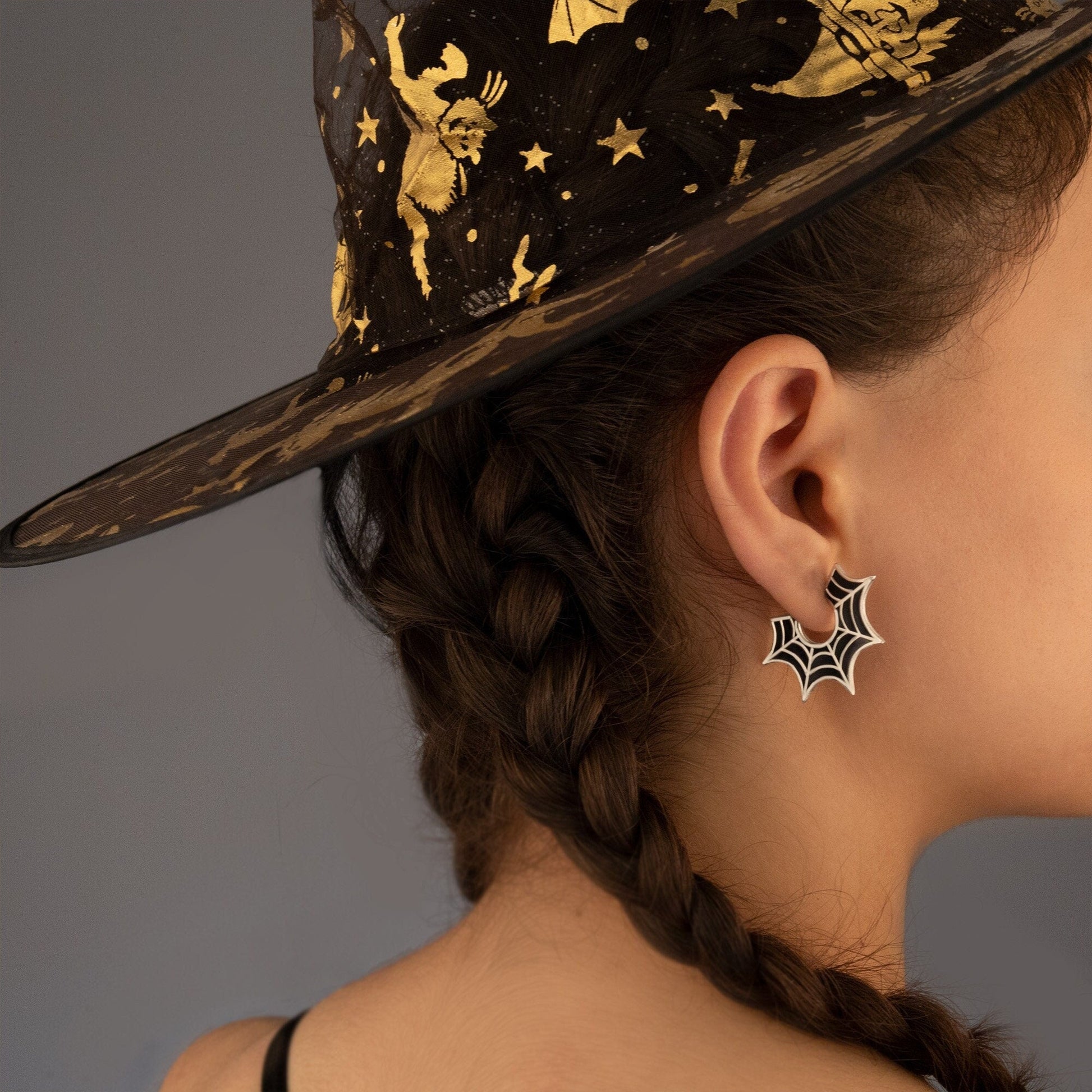 925 Sterling Silver Enamel Spider Web Earrings - Halloween Jewelry
