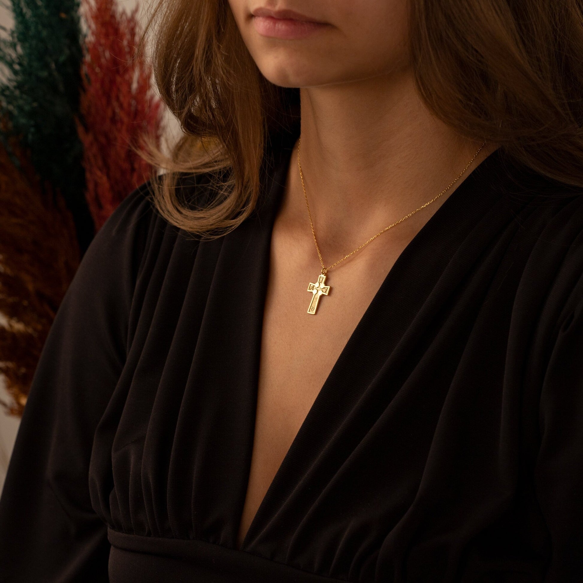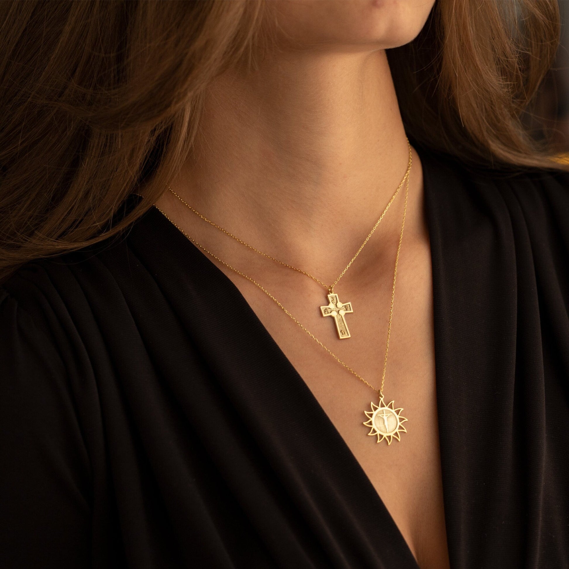 Personalized Family Letters Cross Necklace - Christian Gift for Mother and Father - Dainty Cross Pendant - Religious Pendant - Baptism Gift - Christian Jewelry - Baptism Cross Gift - Christian Gifts