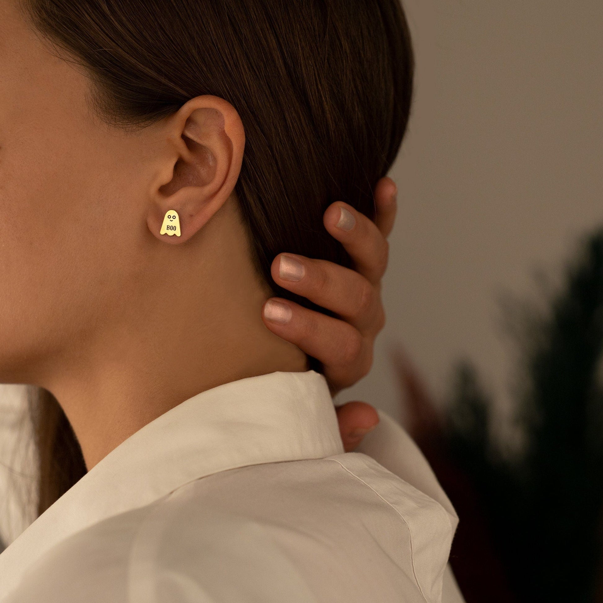 Ghost Tiny Earring, Valentine's Day Gift, Boo Studs Earring, Minimal Ghost Earring, Wizard hat earring, Bat Studs Earring