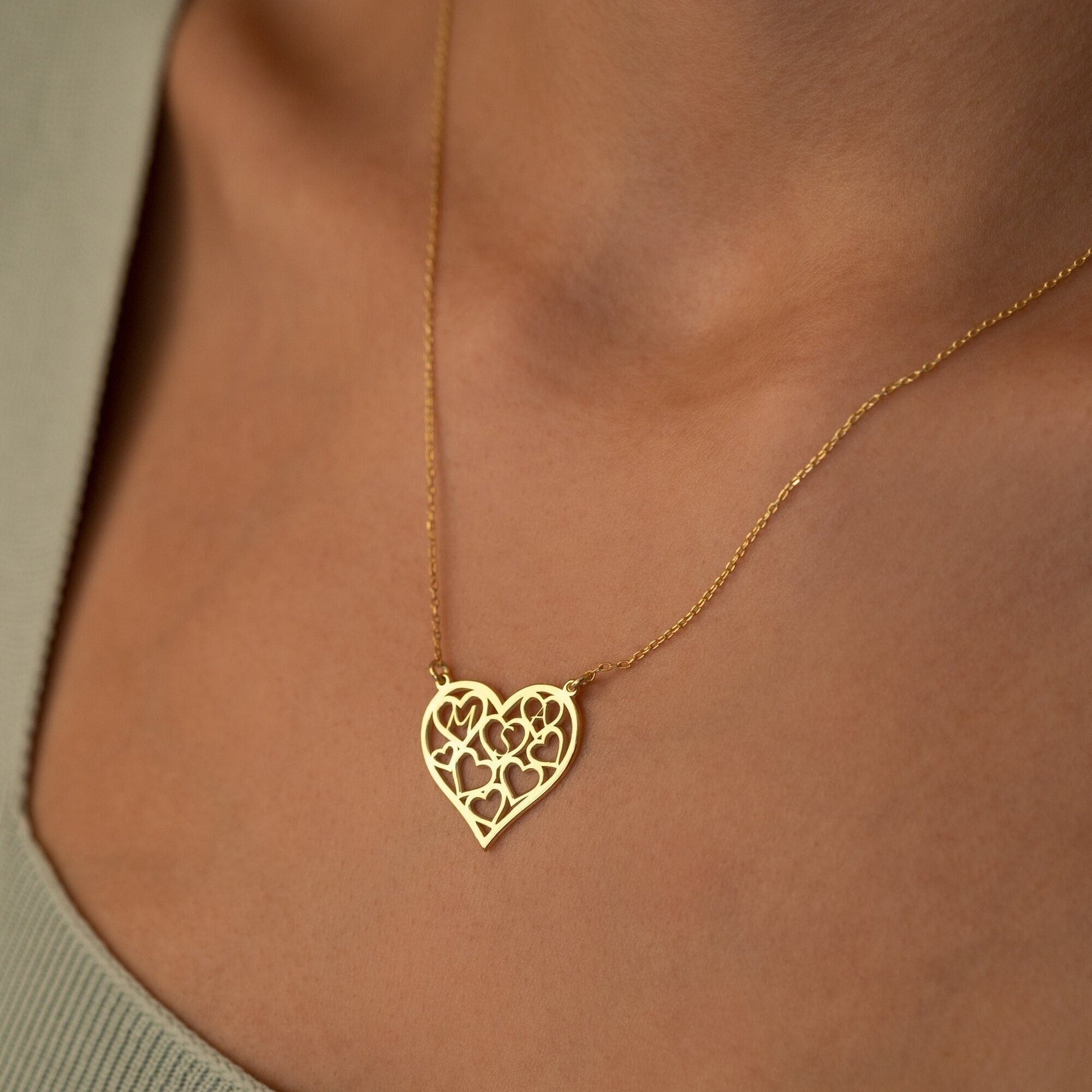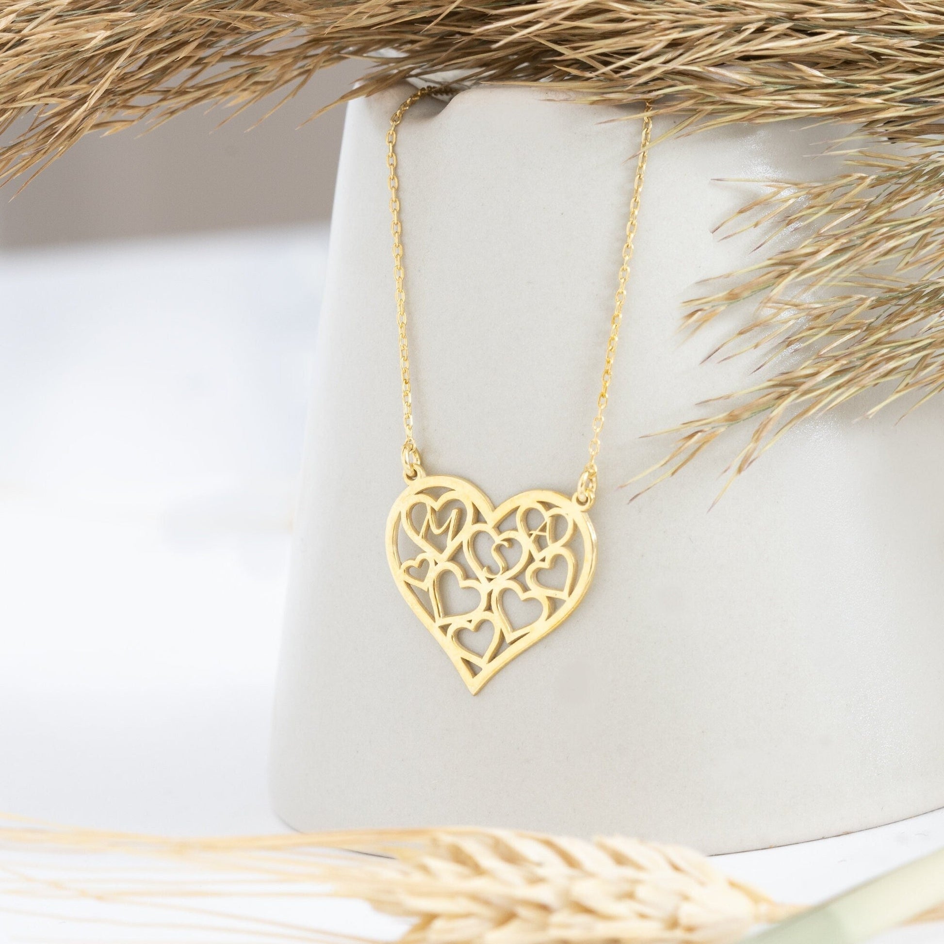Layered Initial Heart - Heart Necklace with Initials - Personalized Letters and Heart Necklace - Family Necklace - Christmas Gift - Gift For Mother - Gift For Wife- To Many Hearts for Your Love