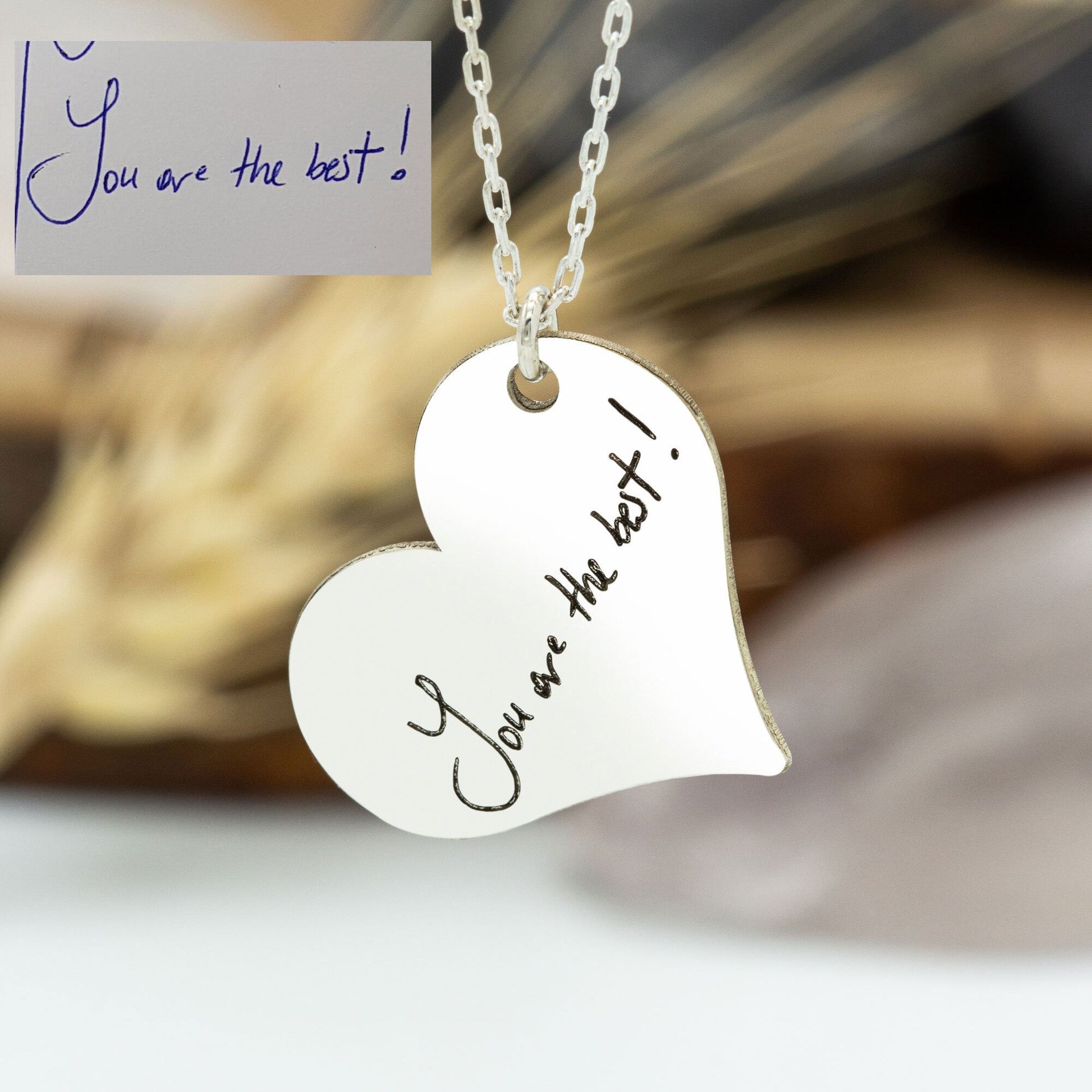 925 Sterling Silver Heart Necklace with Your Own Handwriting