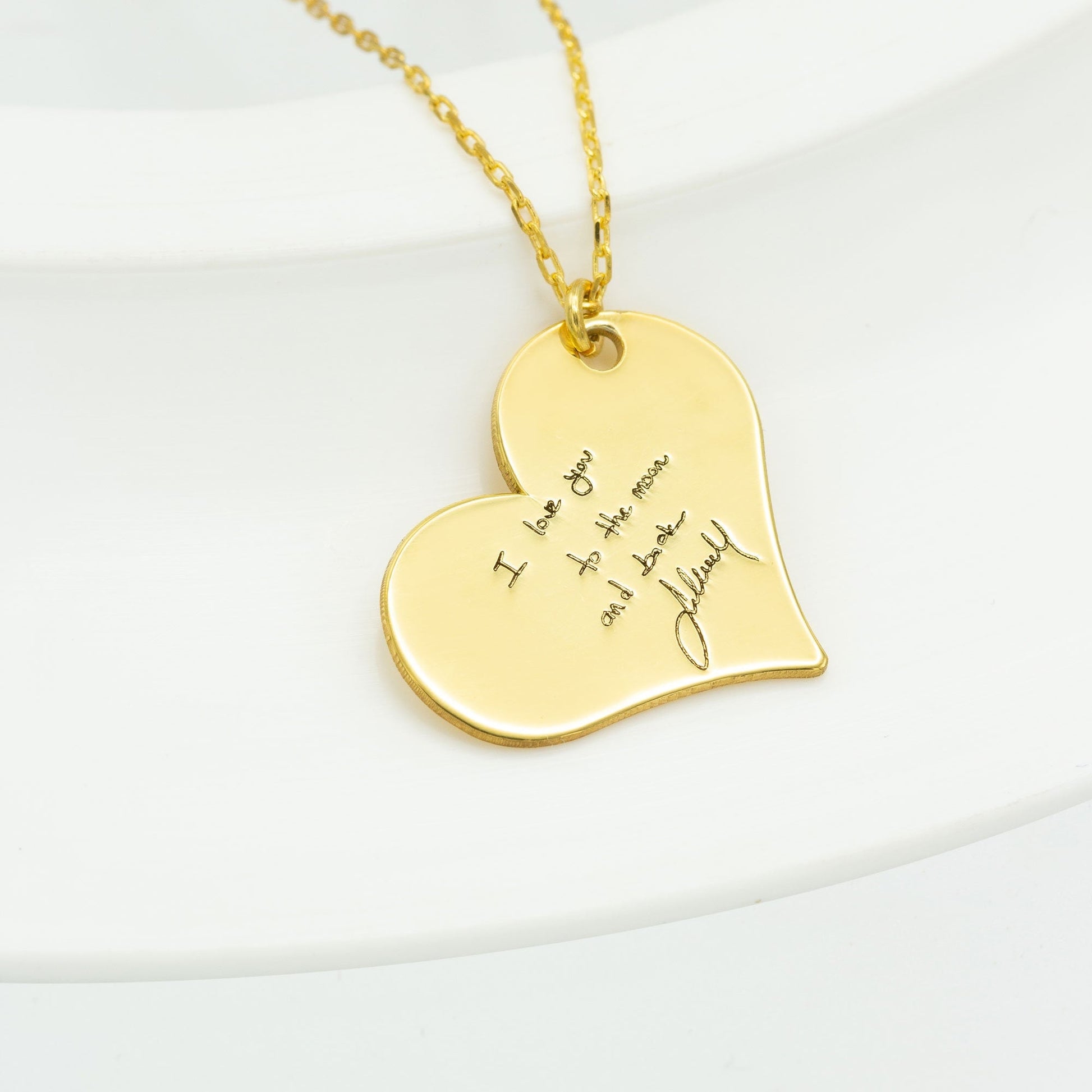 925 Sterling Silver Heart Necklace with Your Own Handwriting - Handwritten Heart Necklace - Signature Necklace