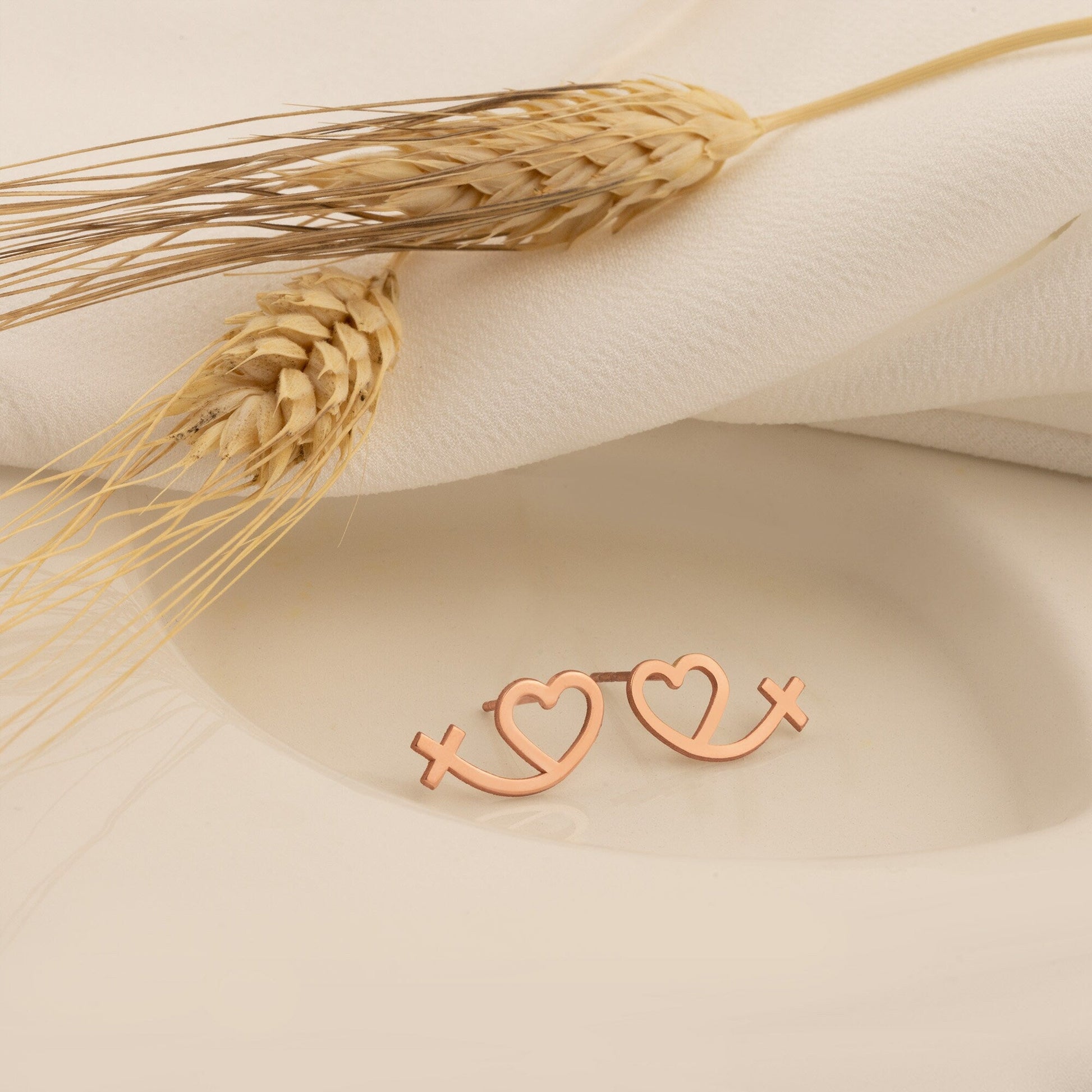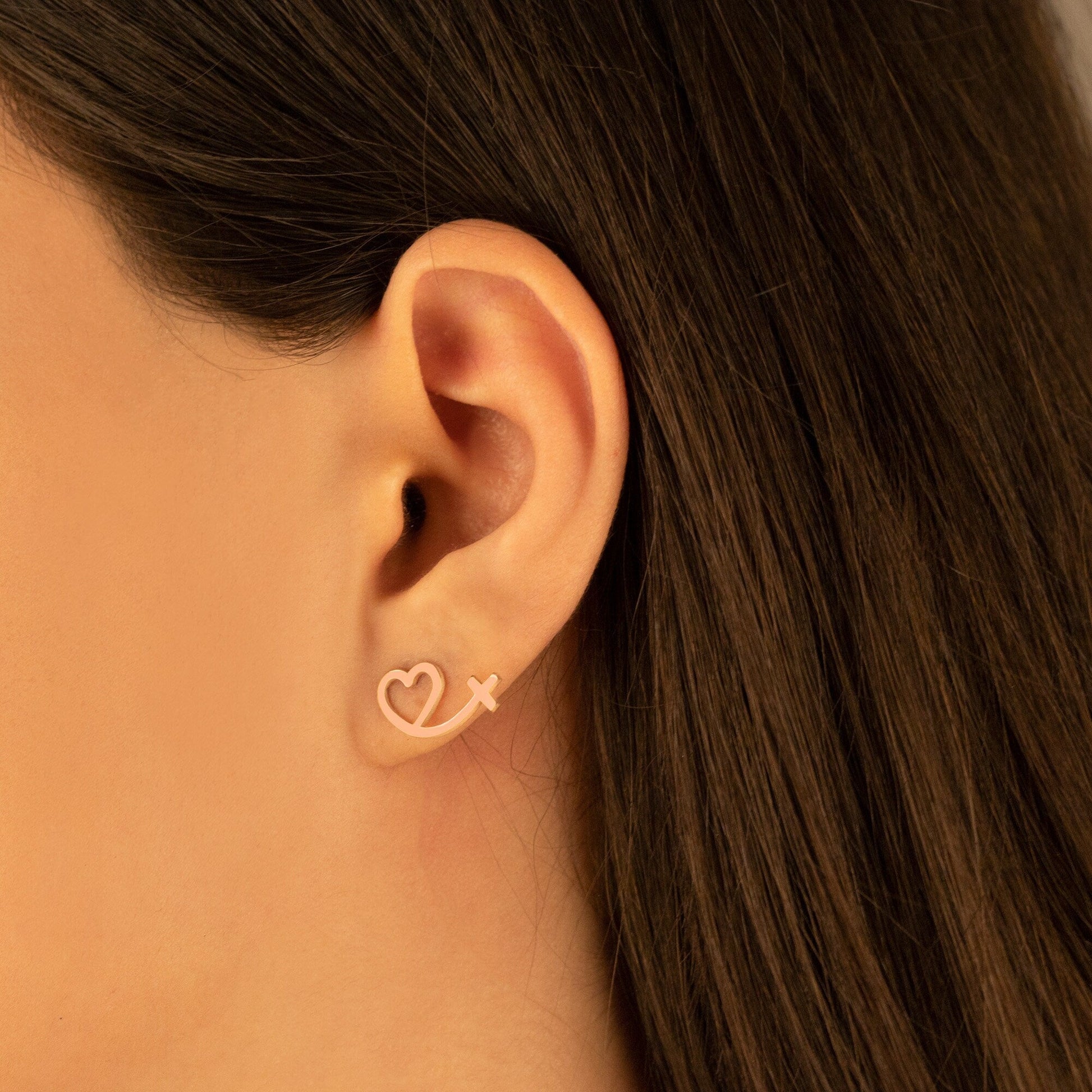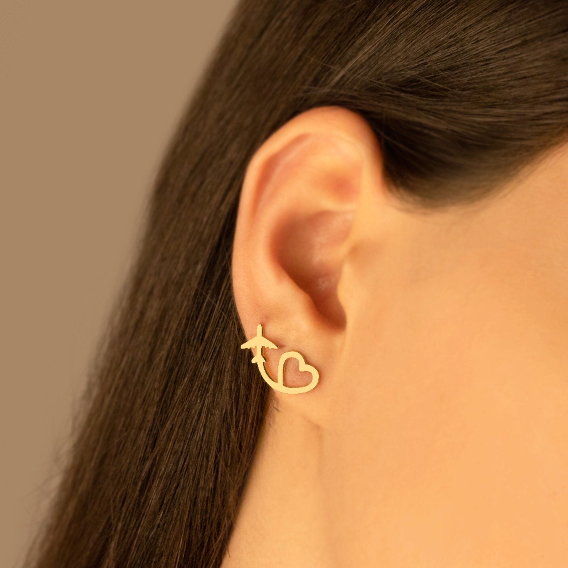 Heart with Plane Earrings - Gift for Her - Minimalist Heart and Letter Earring - Dainty Heart and Cross Stud Earring - Personalized Earring - Bridesmaid Gift - Gift for Her - Birthday Gift - Personalized Gifts - Christmas Gift