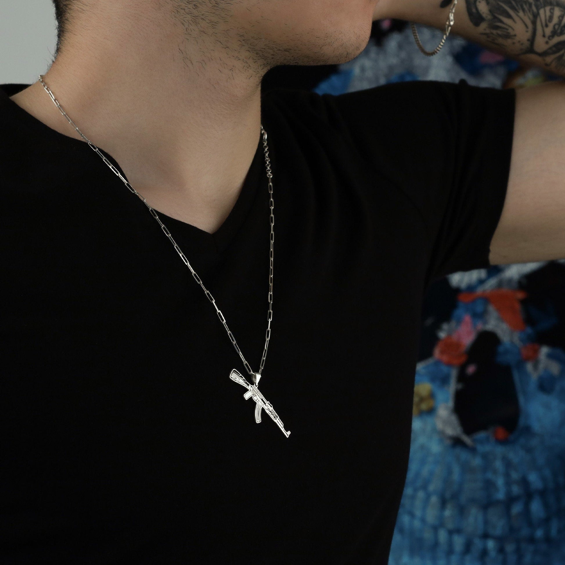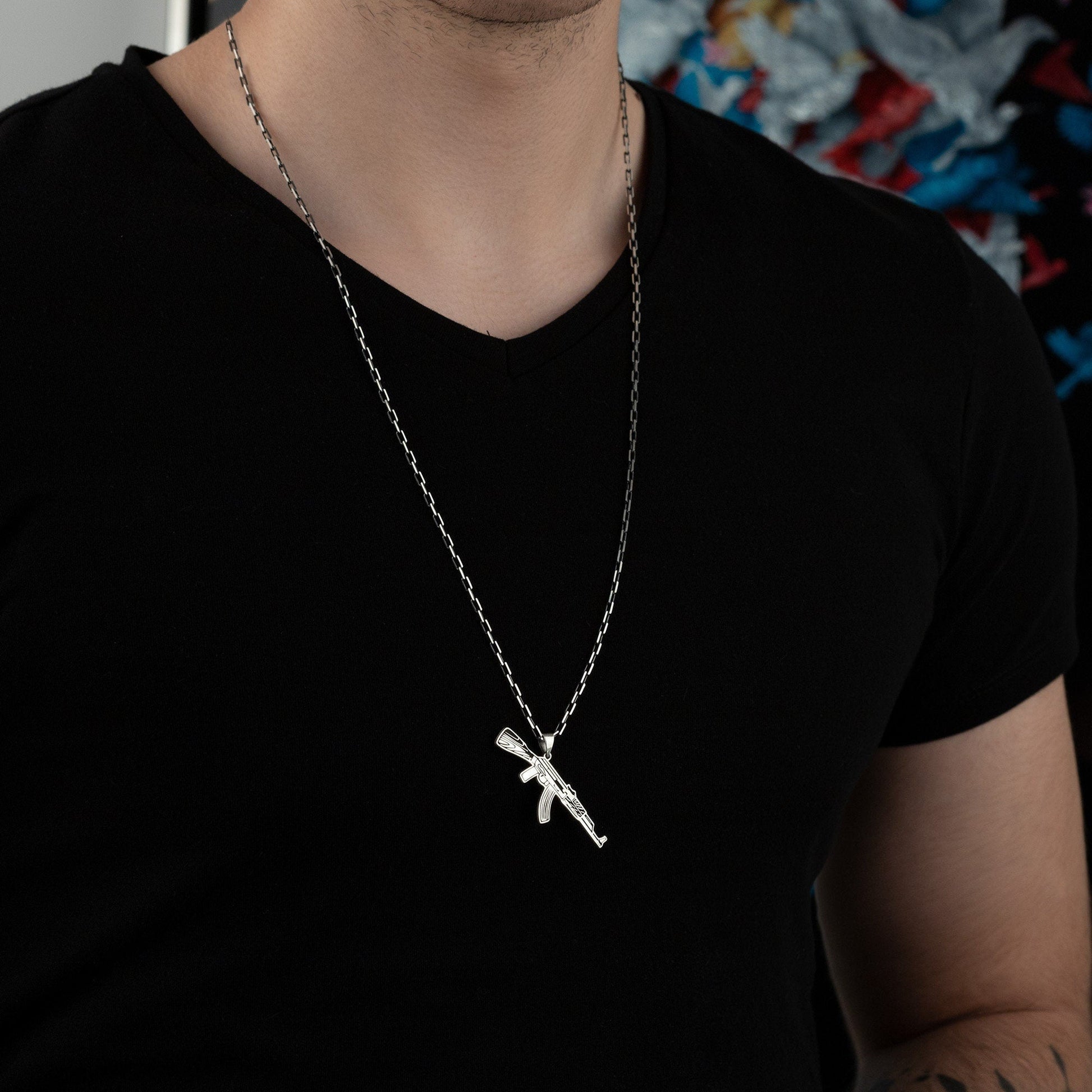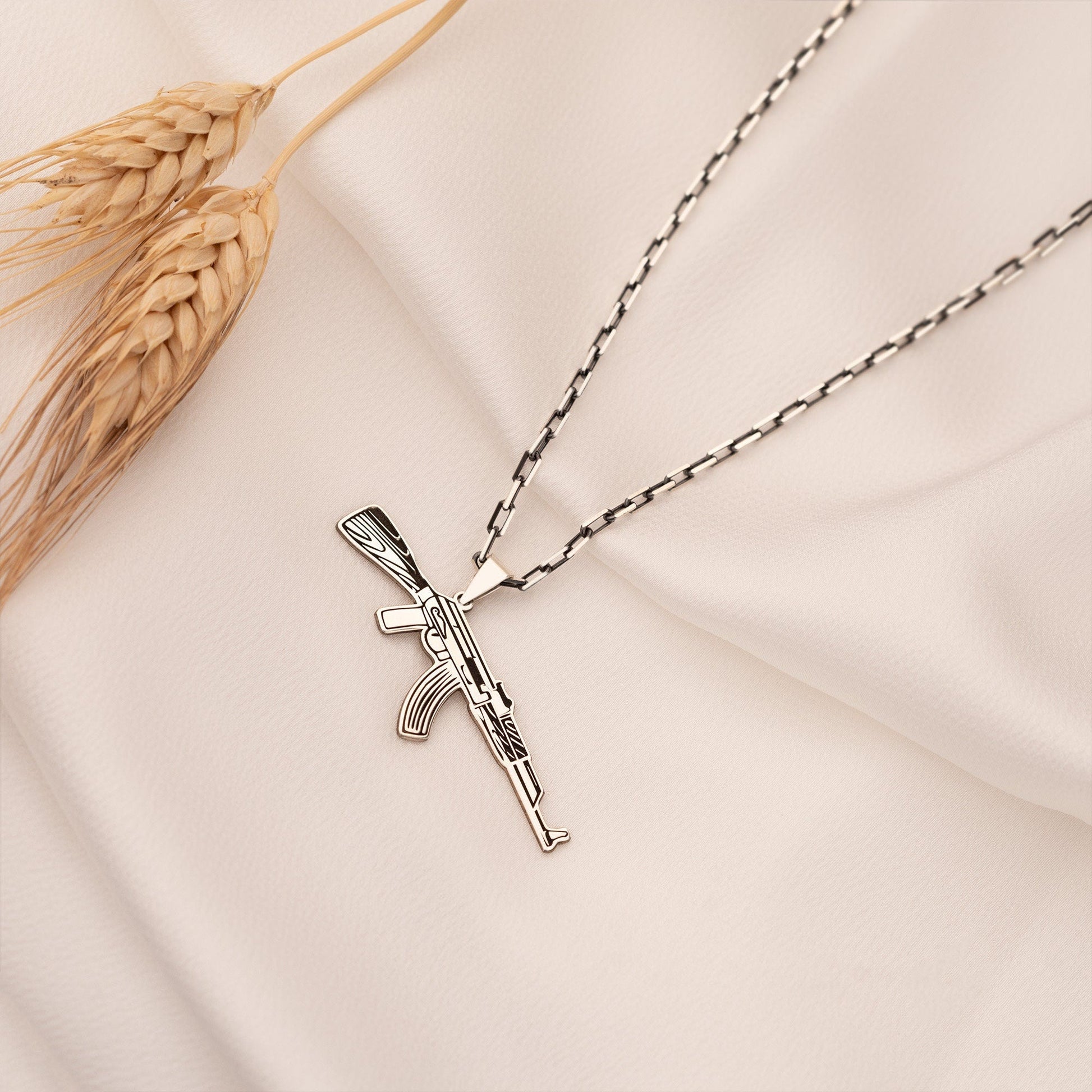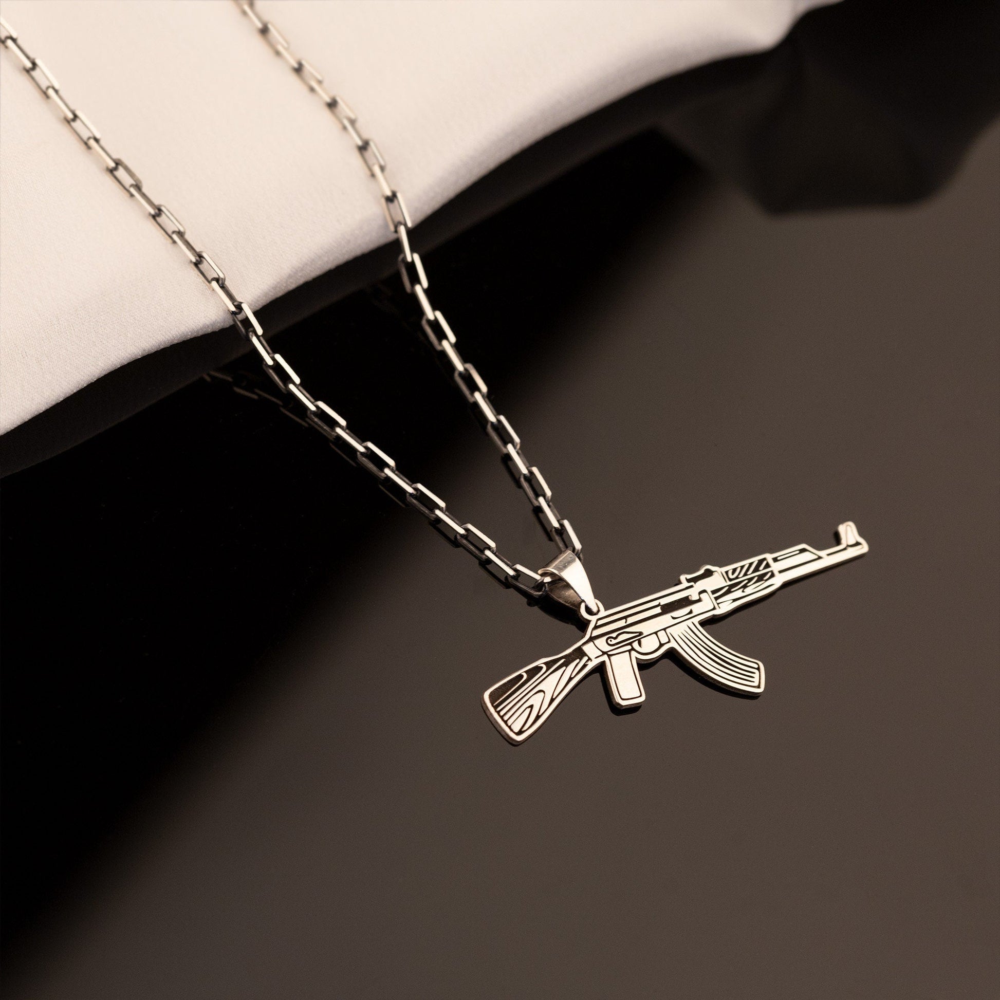 Kalashnikov Necklace - Submachine Gun Pendant - Half Oxidized Chain - Gun Lover Gift - AK47 Pendant - Gun Pendant - Gift for Him - Gamer Gift
