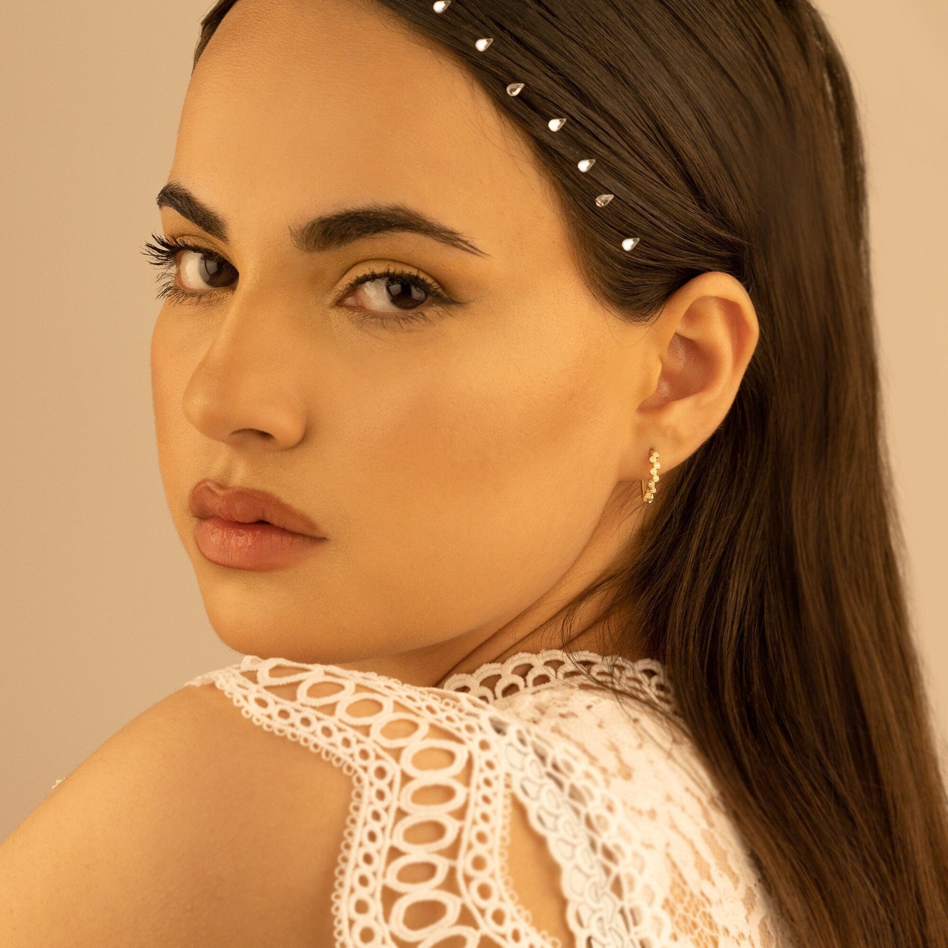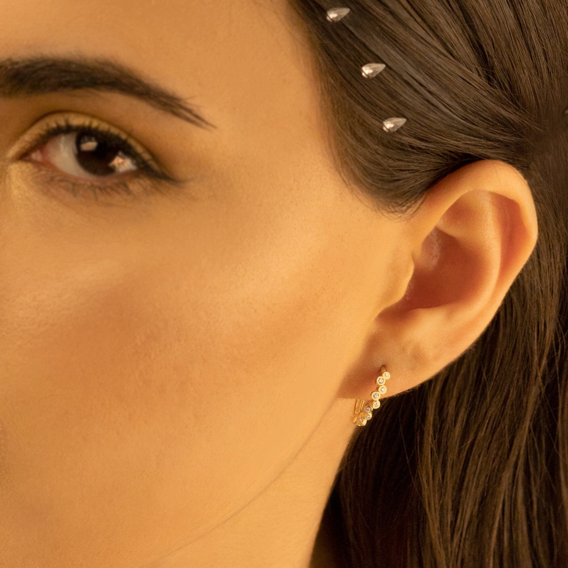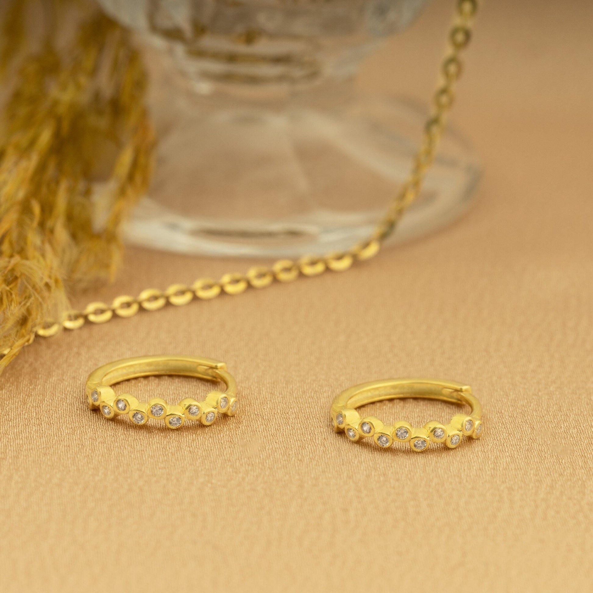 Little Diamonds Earrings - Mother's Day Gift - Small Huggies with Diamonds - Dainty Earrings - Mini Size Hoop Earrings - Gift for Her - Modern Jewelry