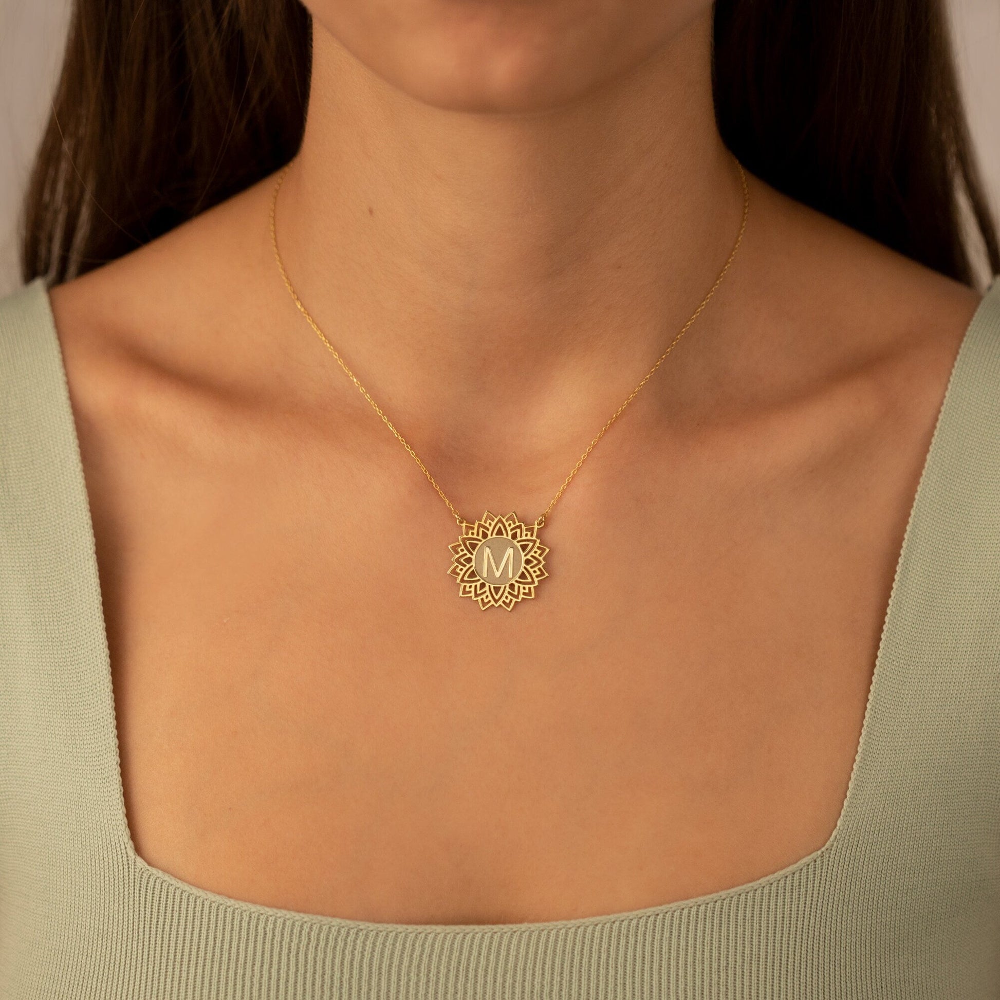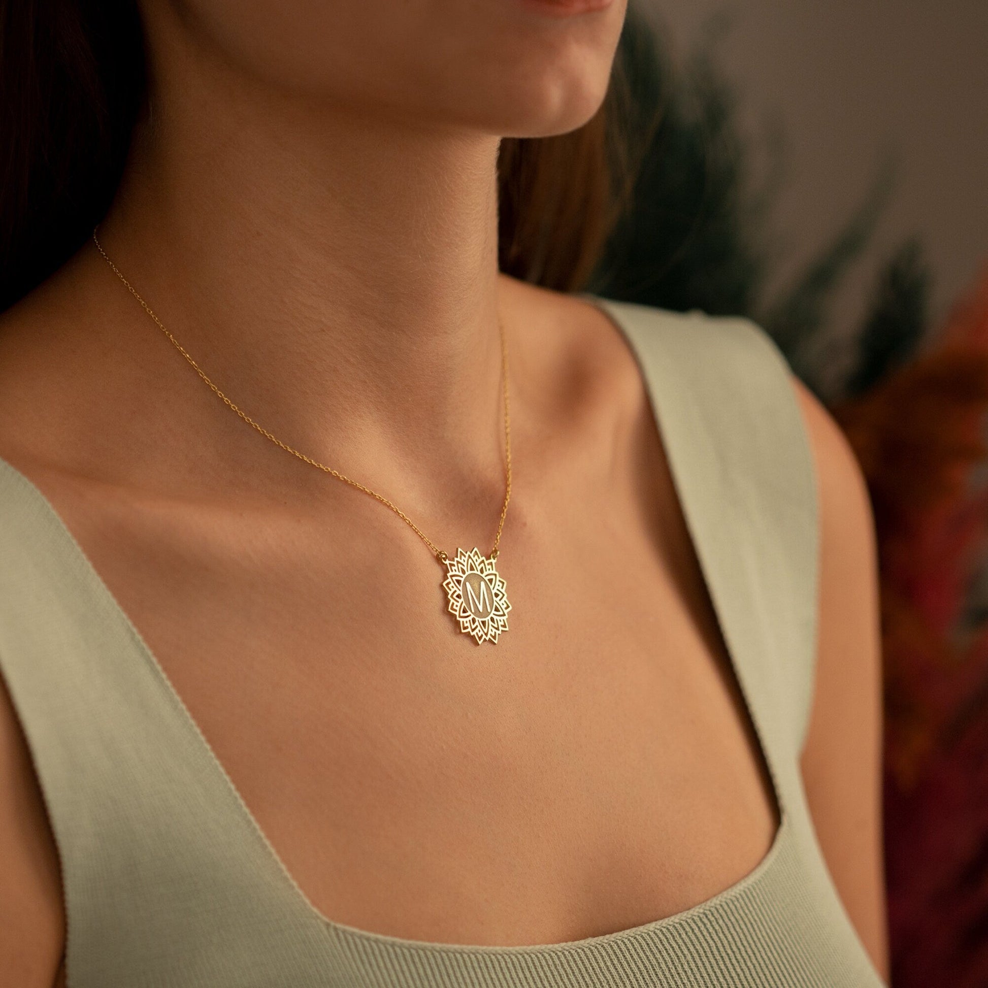 925 Sterling Silver Lotus Necklace With Letter - Personalized Letter Necklace - Silver Yoga Necklace - Custom Necklace - Necklaces For Women - Gold Jewelry - Best Gift - Yoga Jewerly - Lotus Flower Custom Letter Necklace