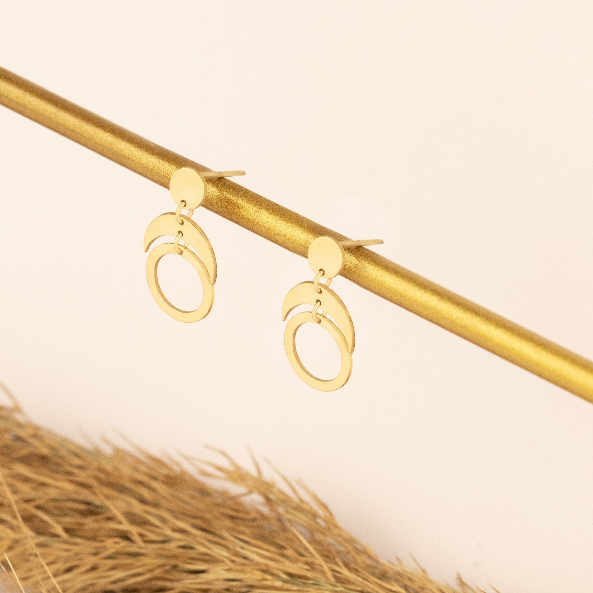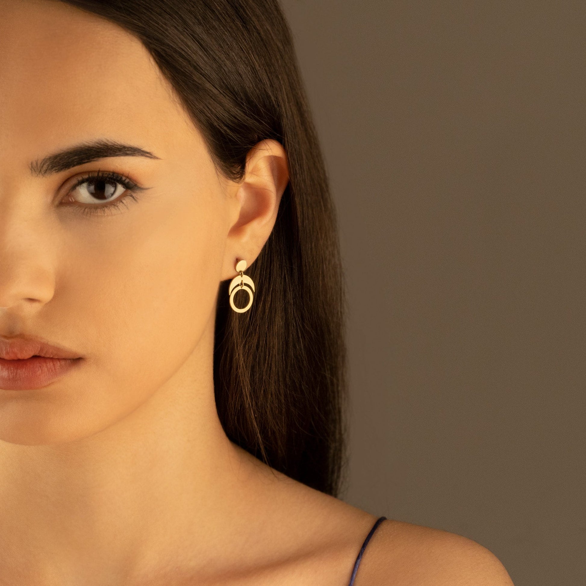 Moon Phase Dangle Earrings - Mother's Day Gift - Rounds Earring - Geometric Earring - Celestial Earring - Full Moon Jewelry - Modern Jewelry - Gift for Her - Gift for Mother