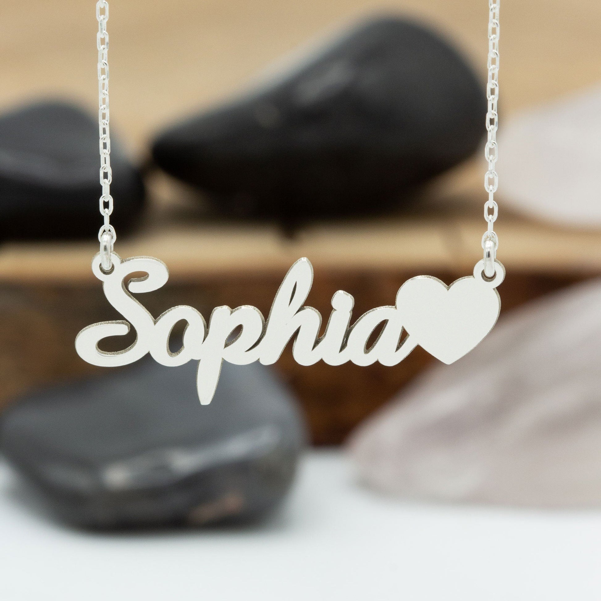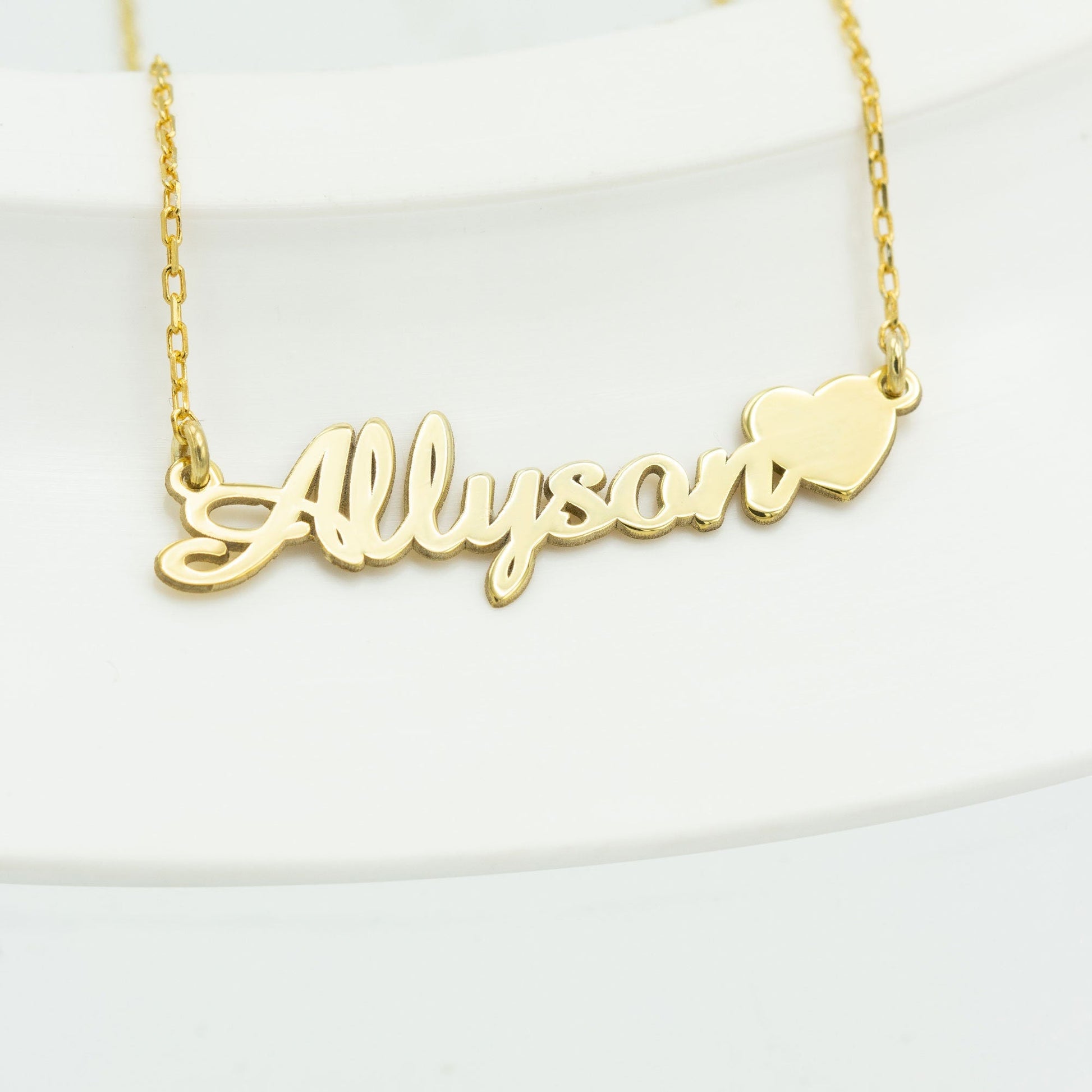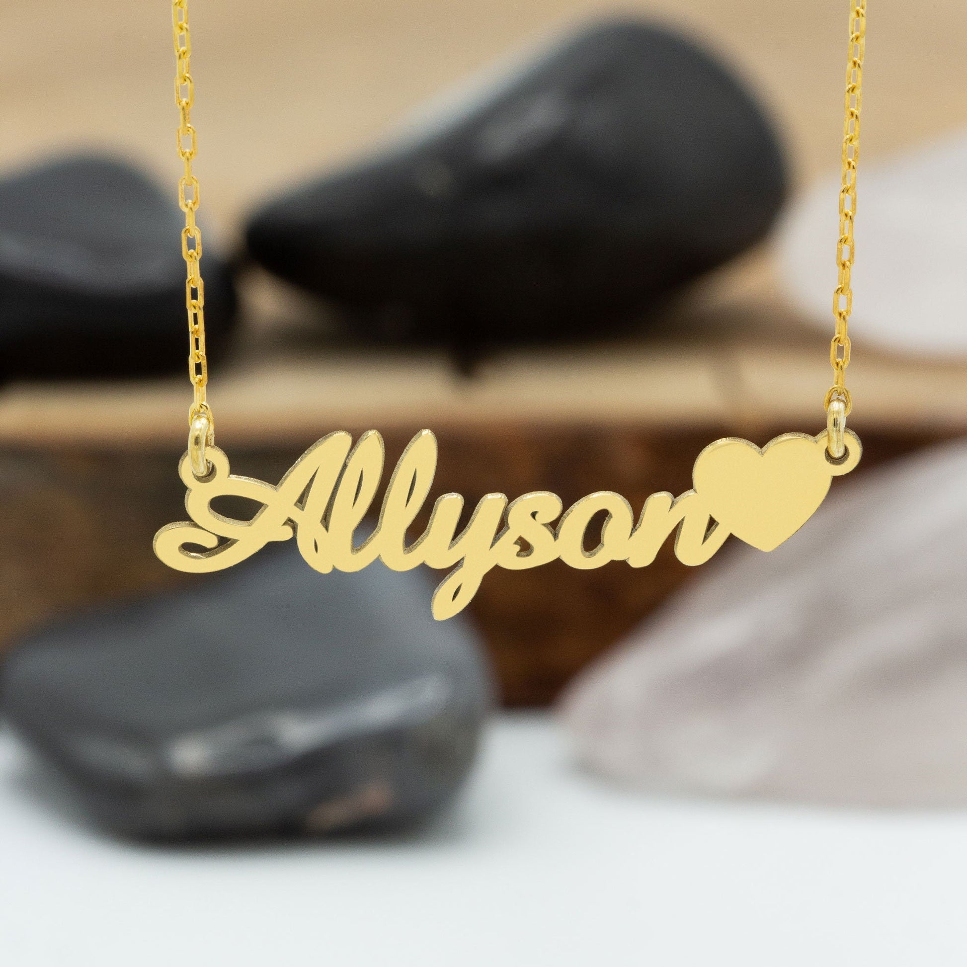 Name Necklace with Heart Sterling Silver 925 - Gift for Loves Wife - Personalized Name Necklace 18K Gold - Summer Jewelry - Gift For Her