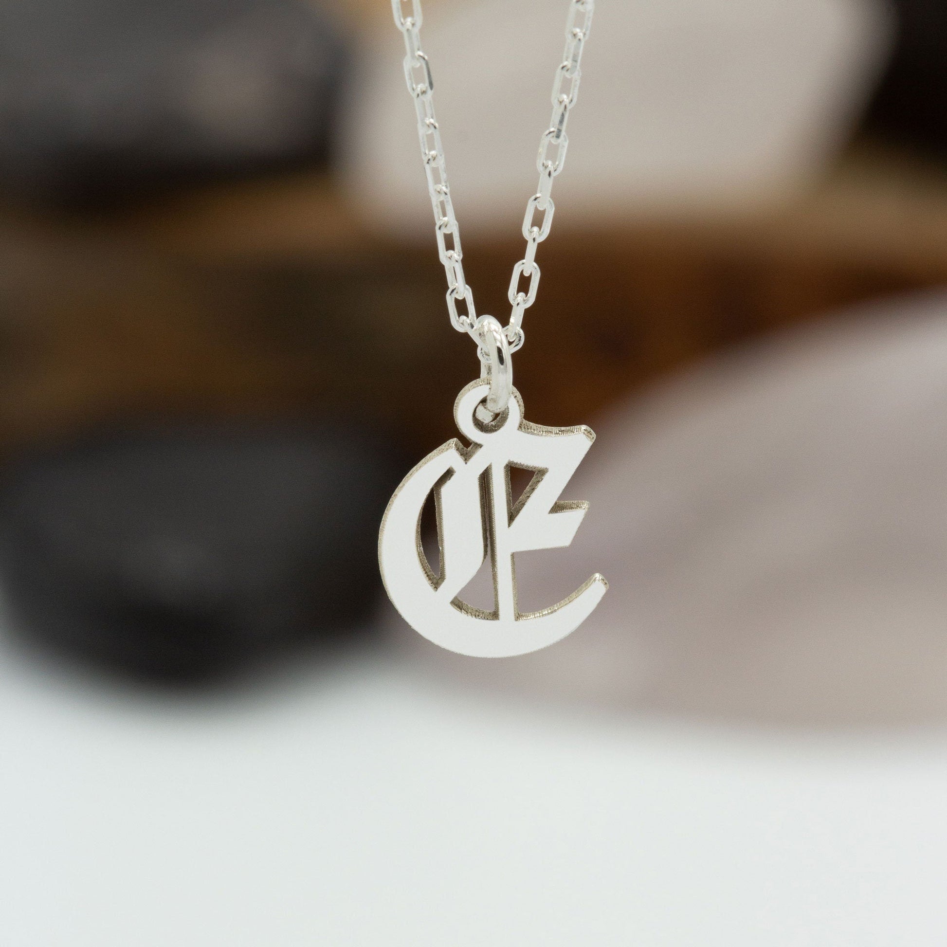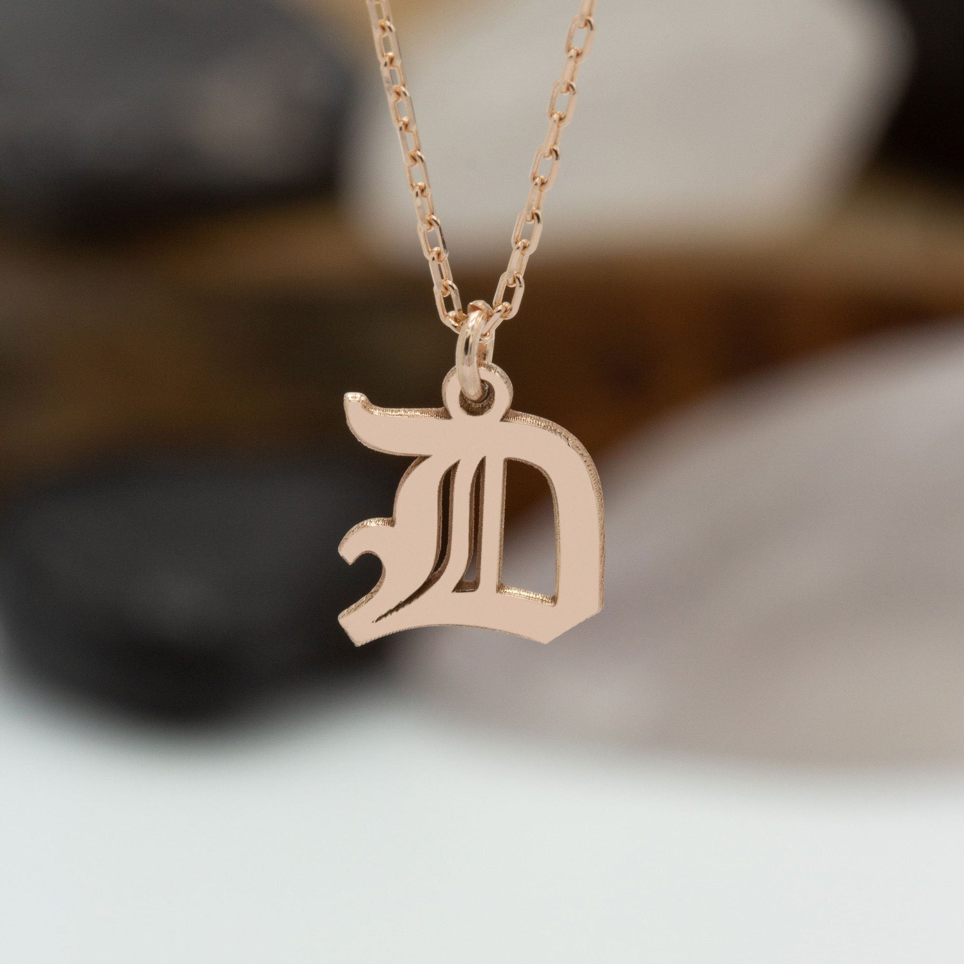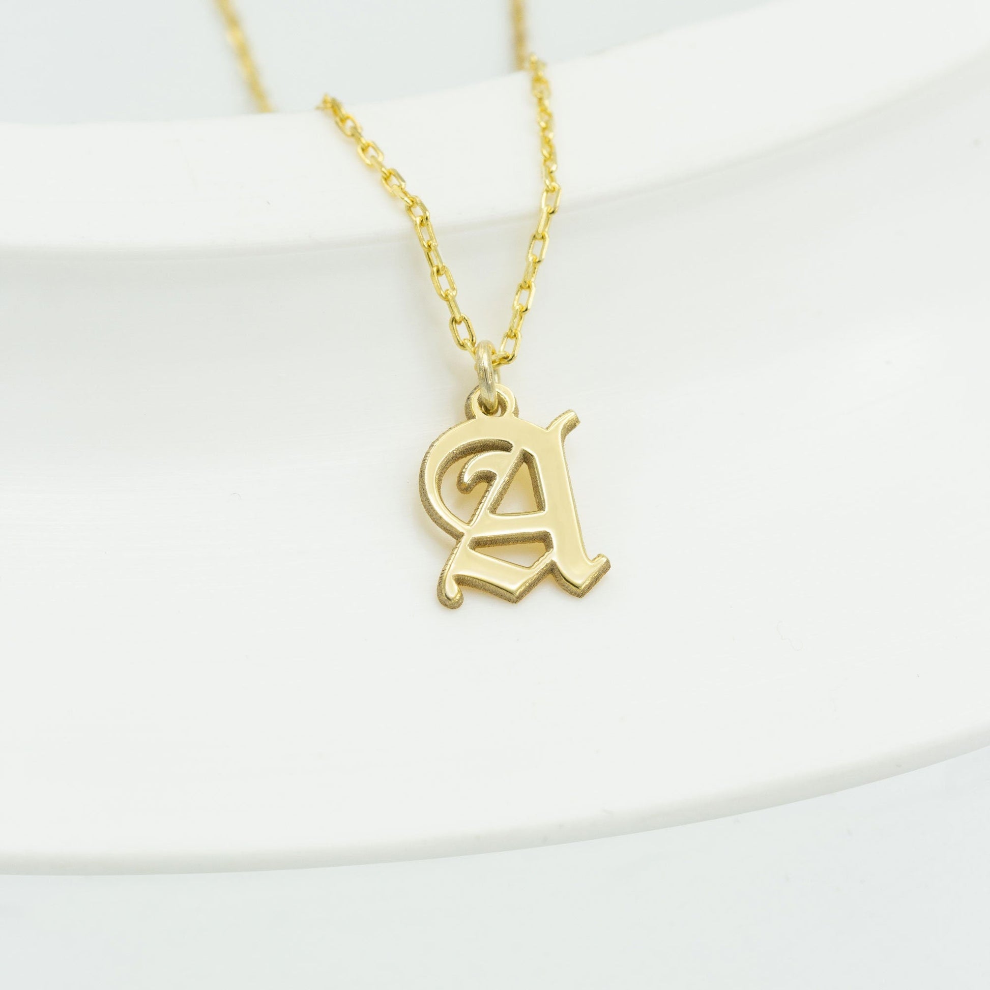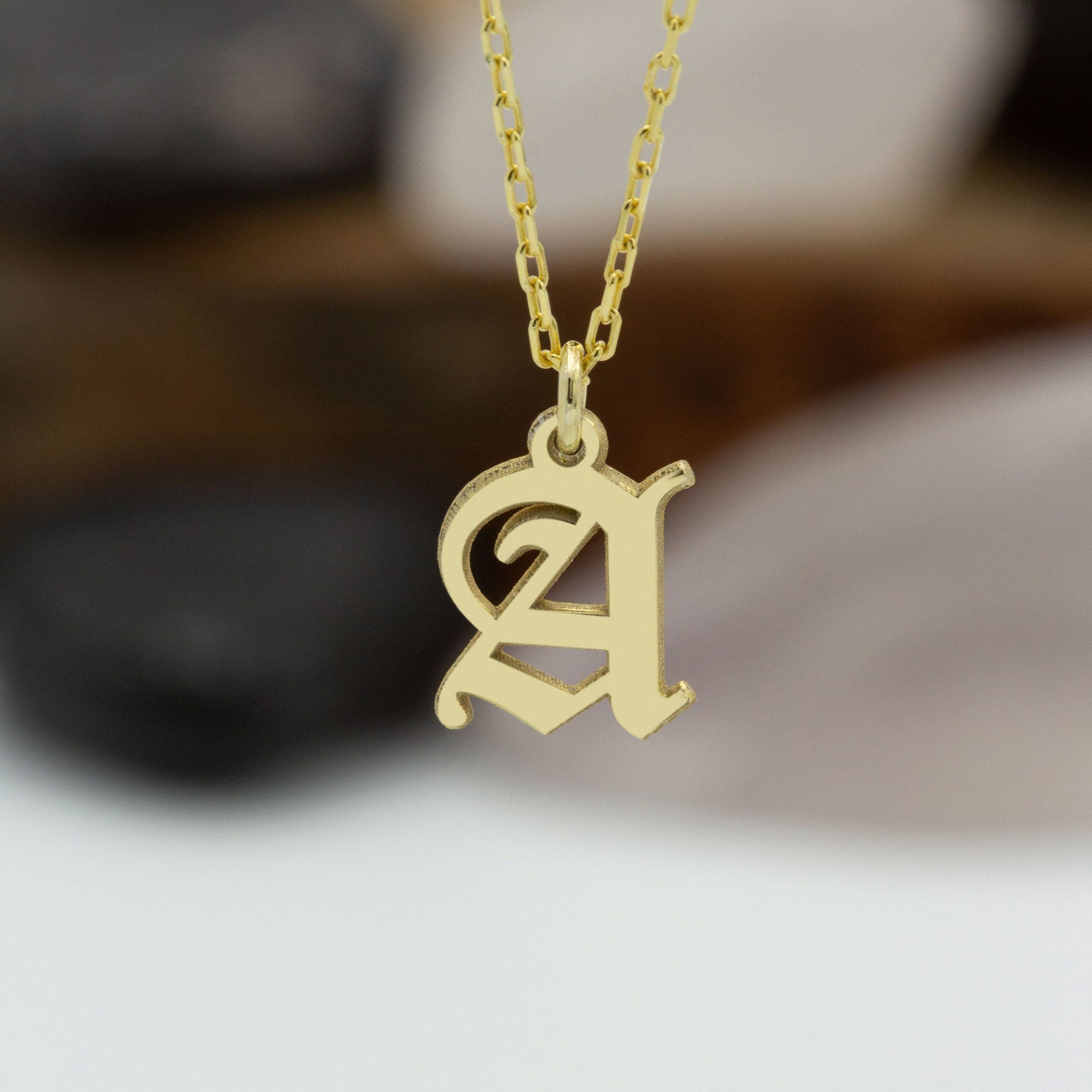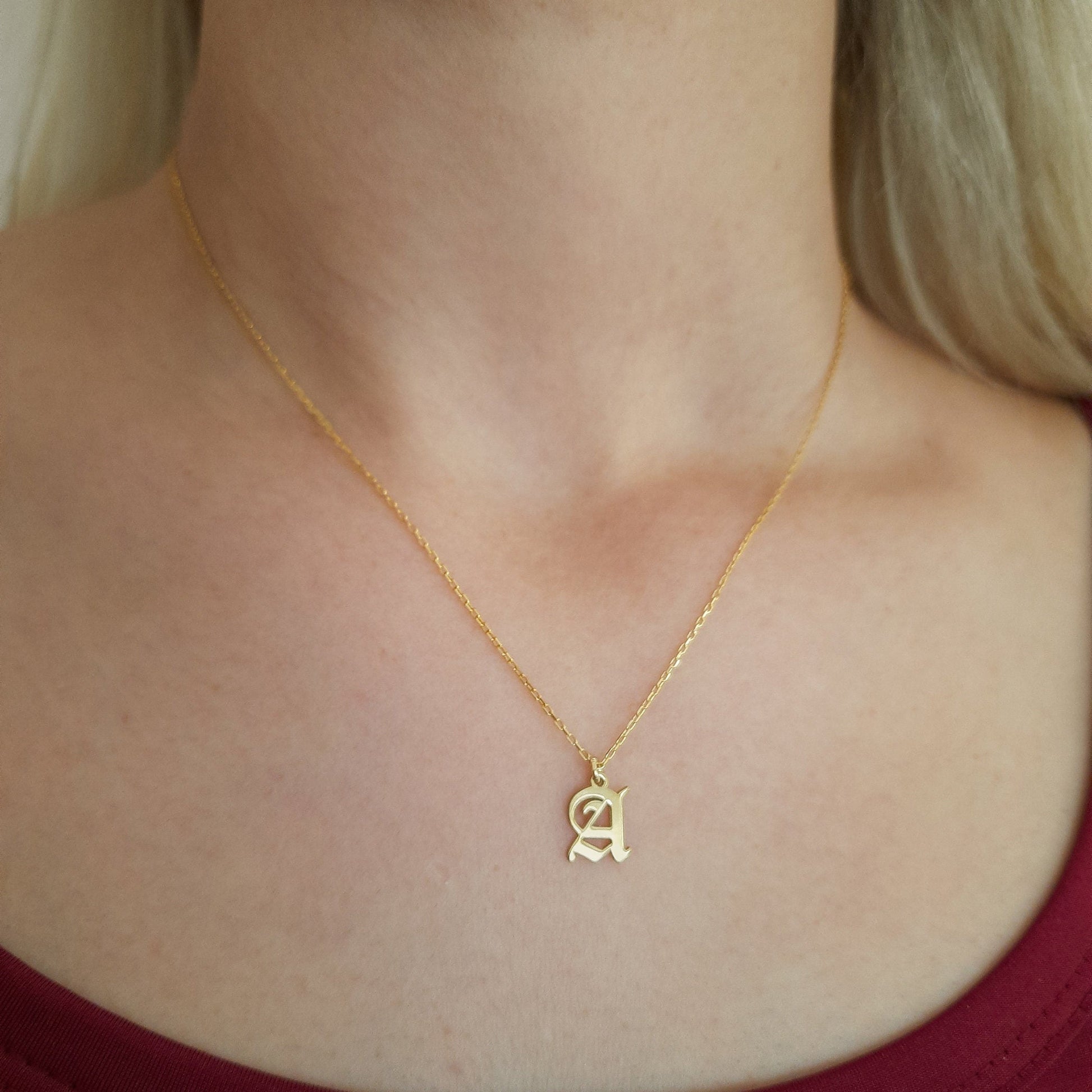 925 Sterling Silver Personalized Initial Necklace, Old English Font Letter Necklace
