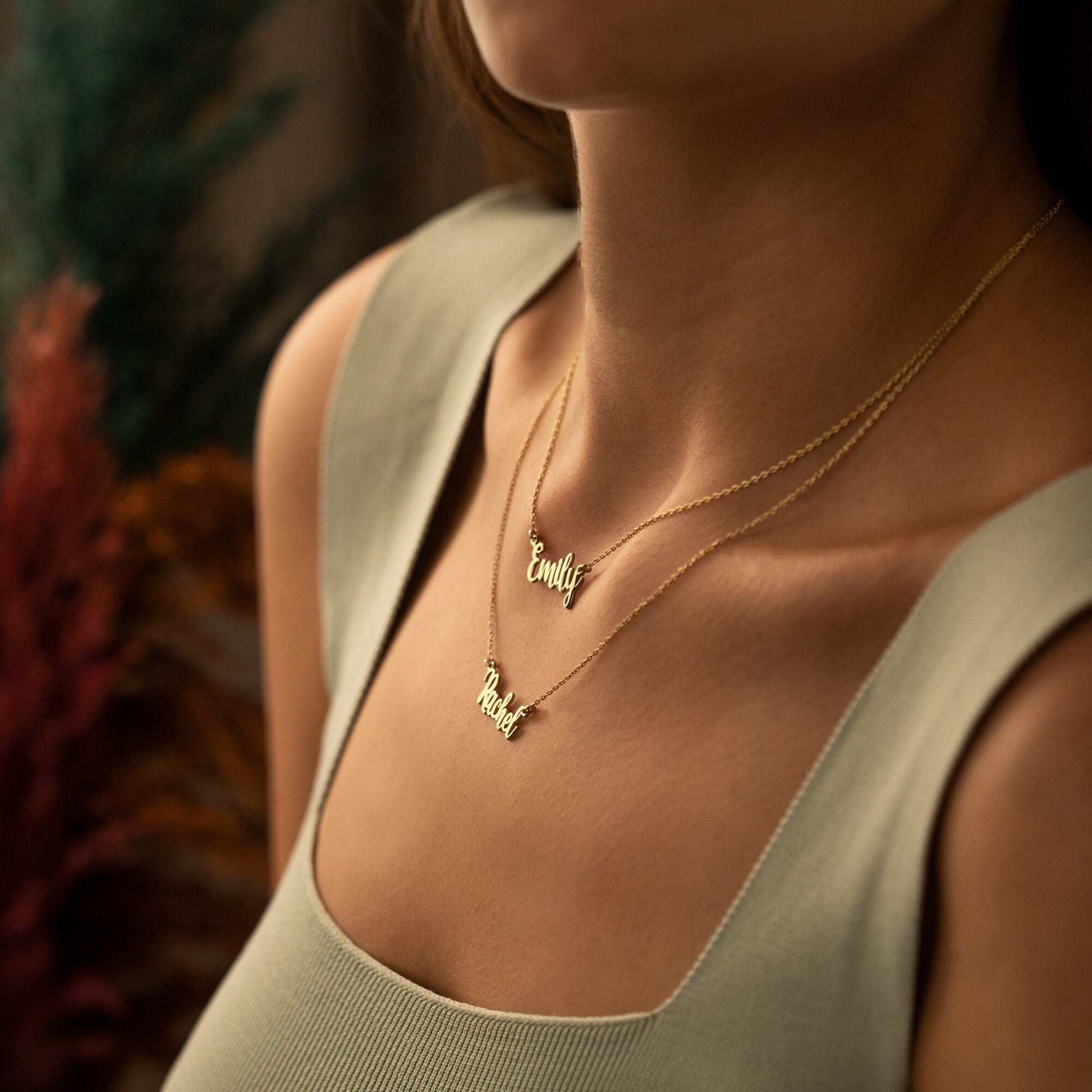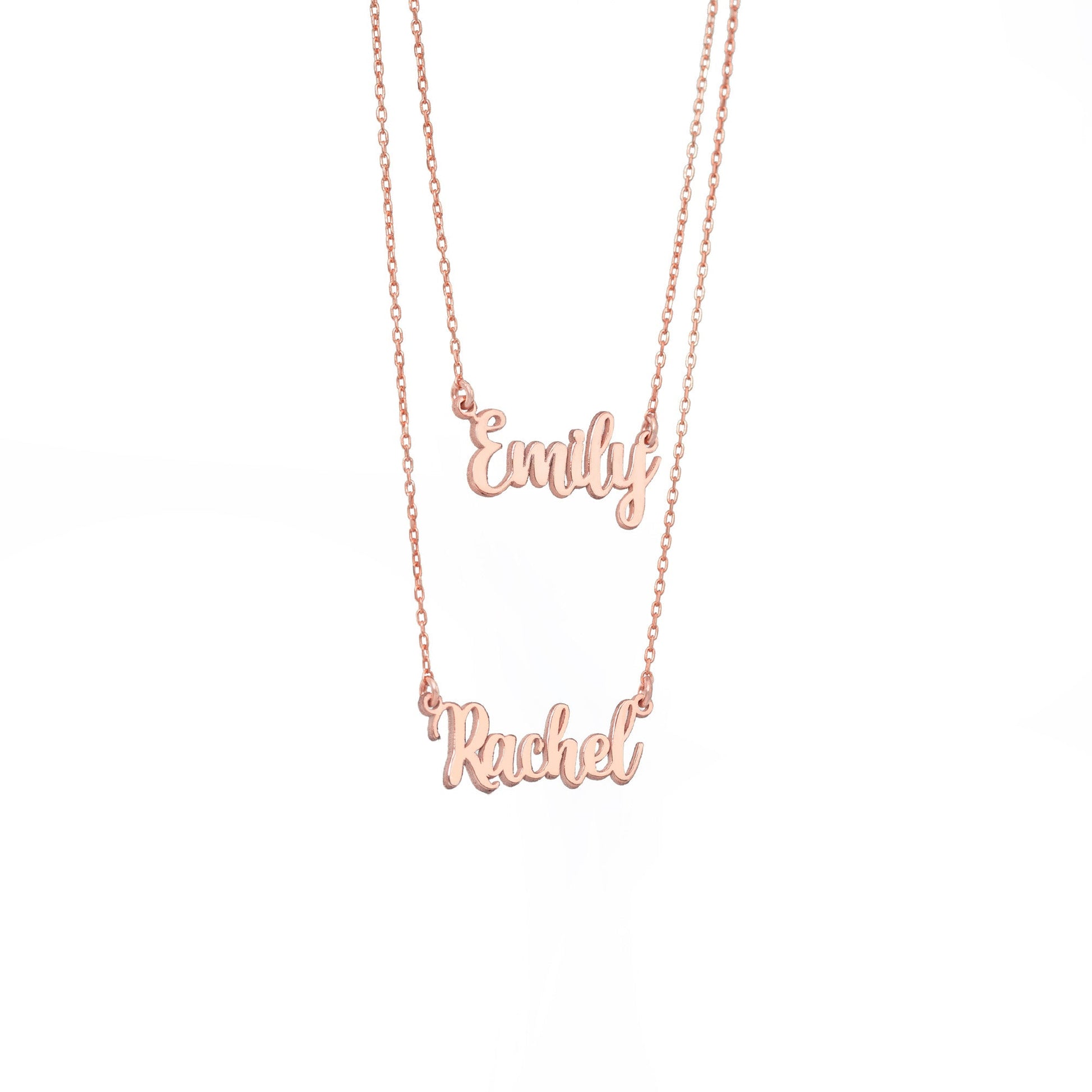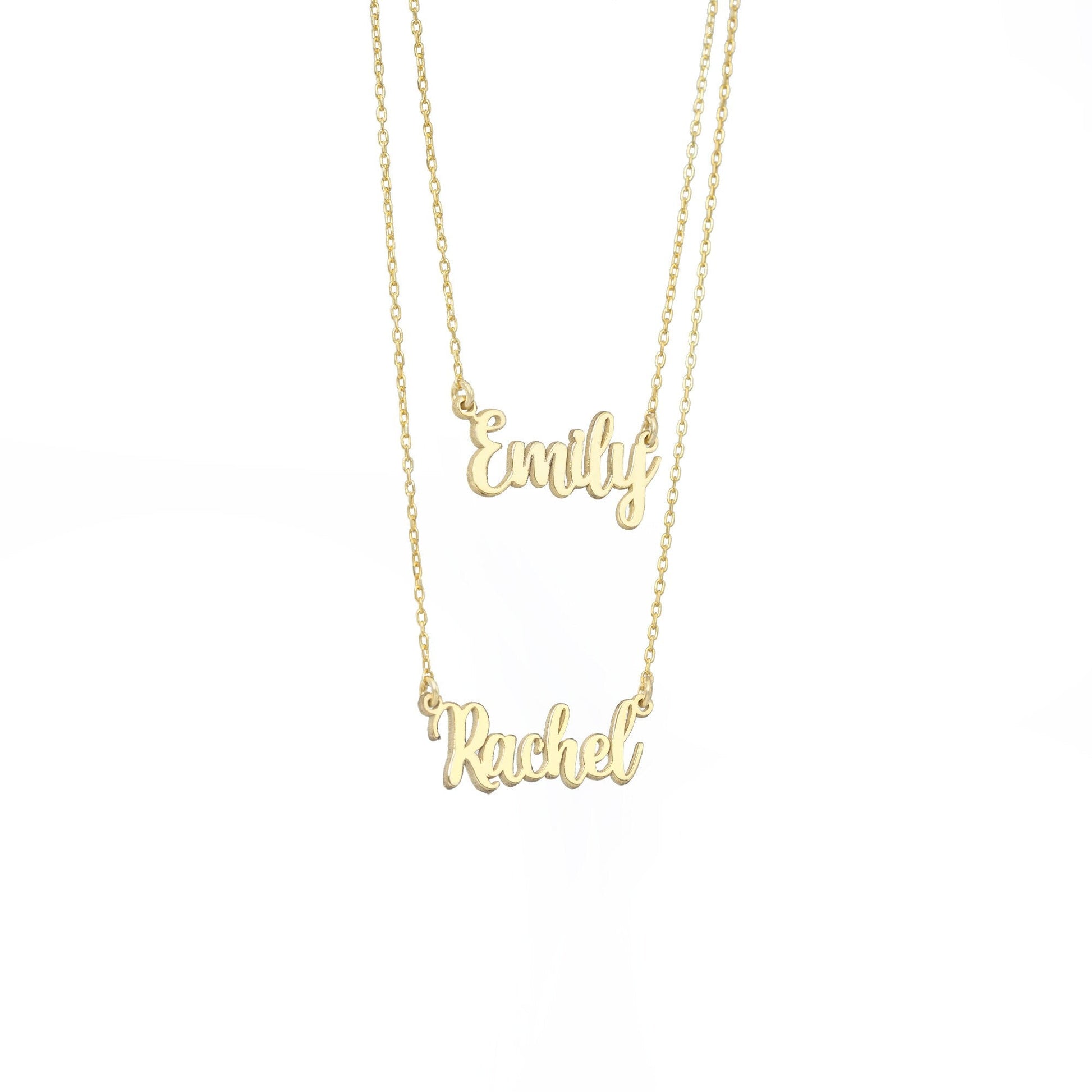 **The necklace with the second name written will be 2 inches longer than the chain length you choose first.**