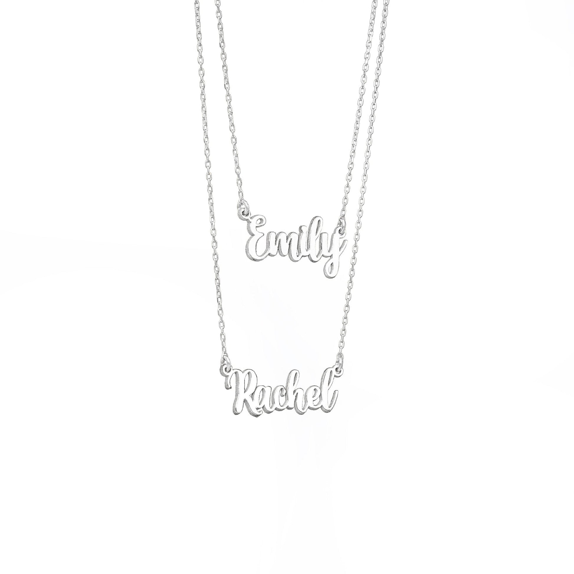 925 Sterling Silver Personalized Double Name Double Chain Necklace